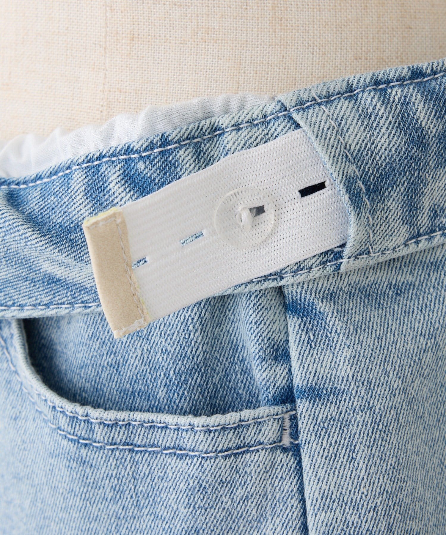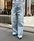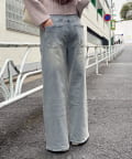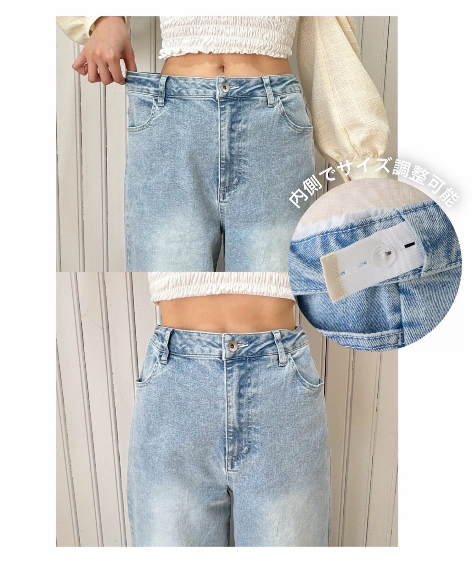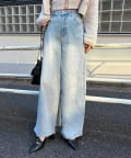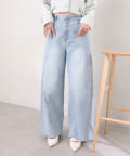 ウエストの内側でサイズ調整が可能な美脚シルエットのワイドデニム。
