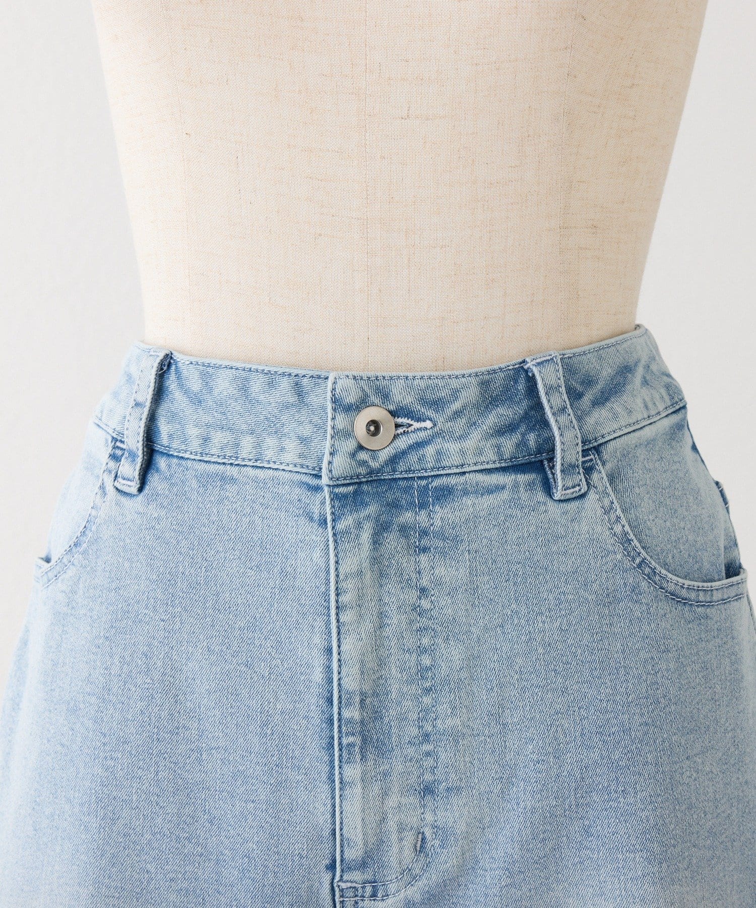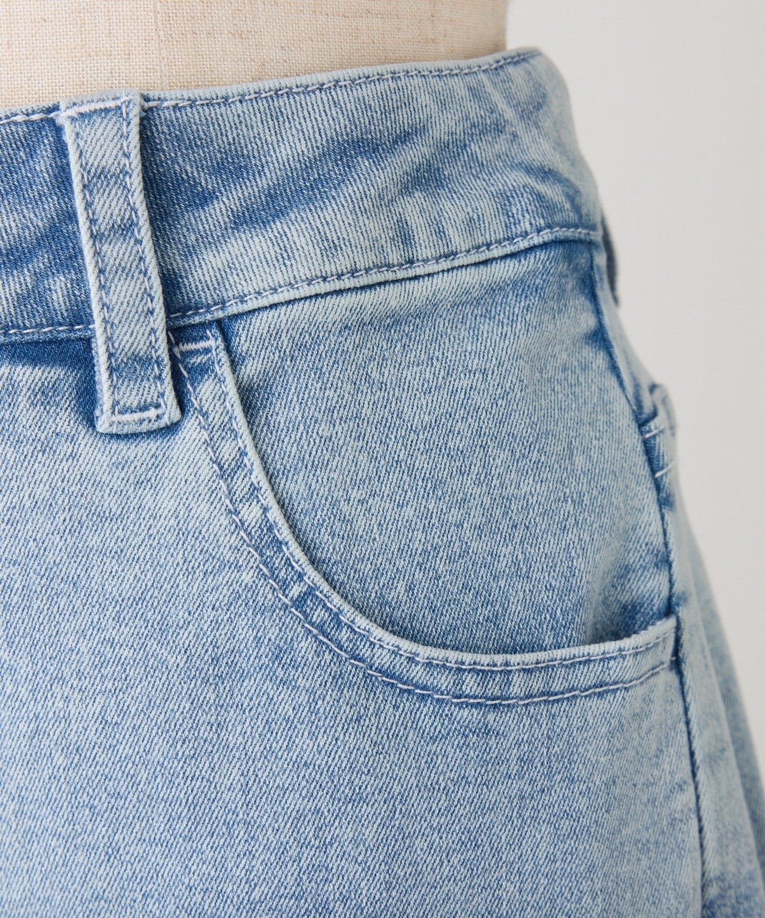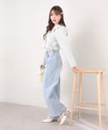 やや腰上のハイウエストでウエストまわりをスッキリとみせ、トレンドシルエットを作ってくれます。