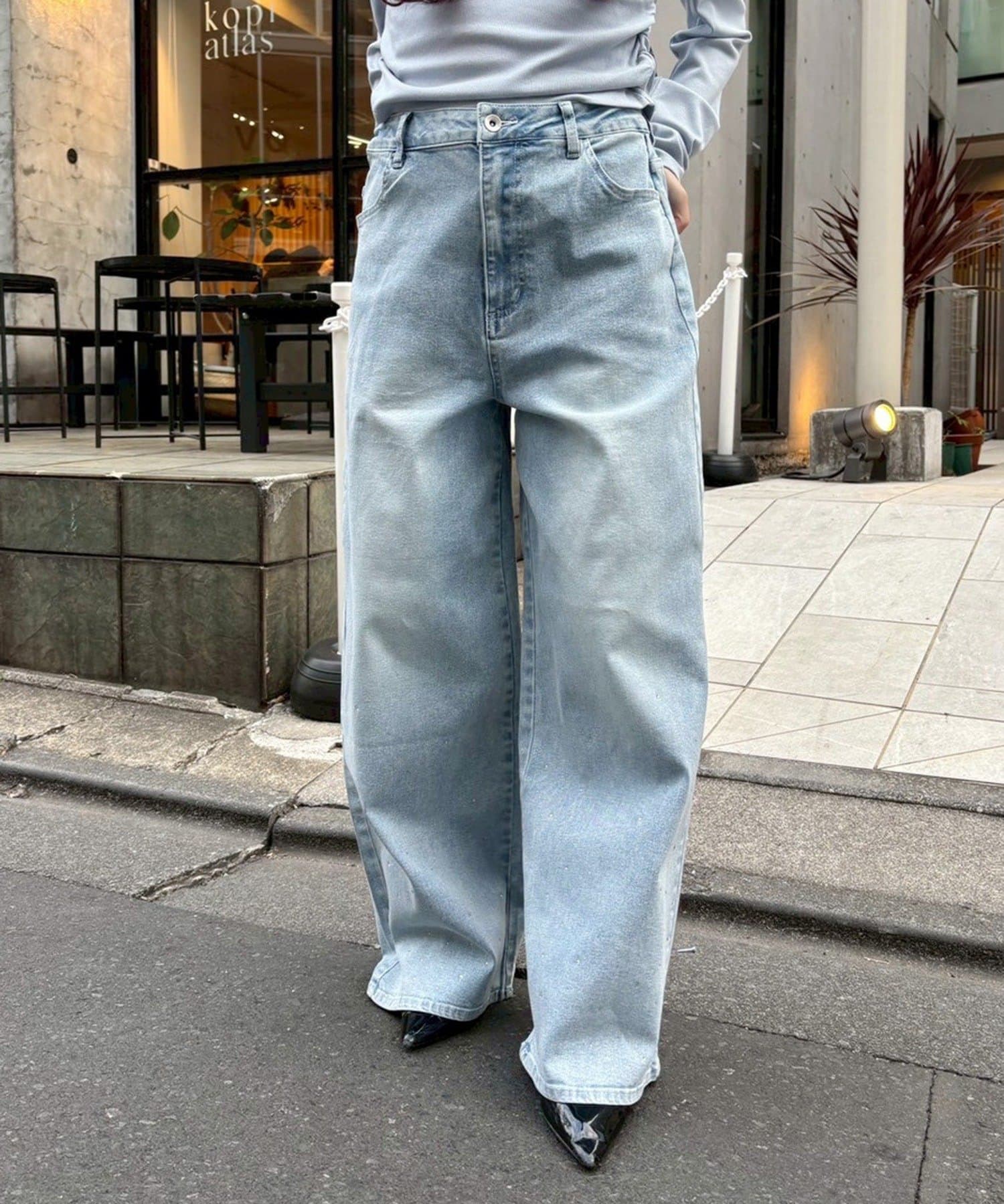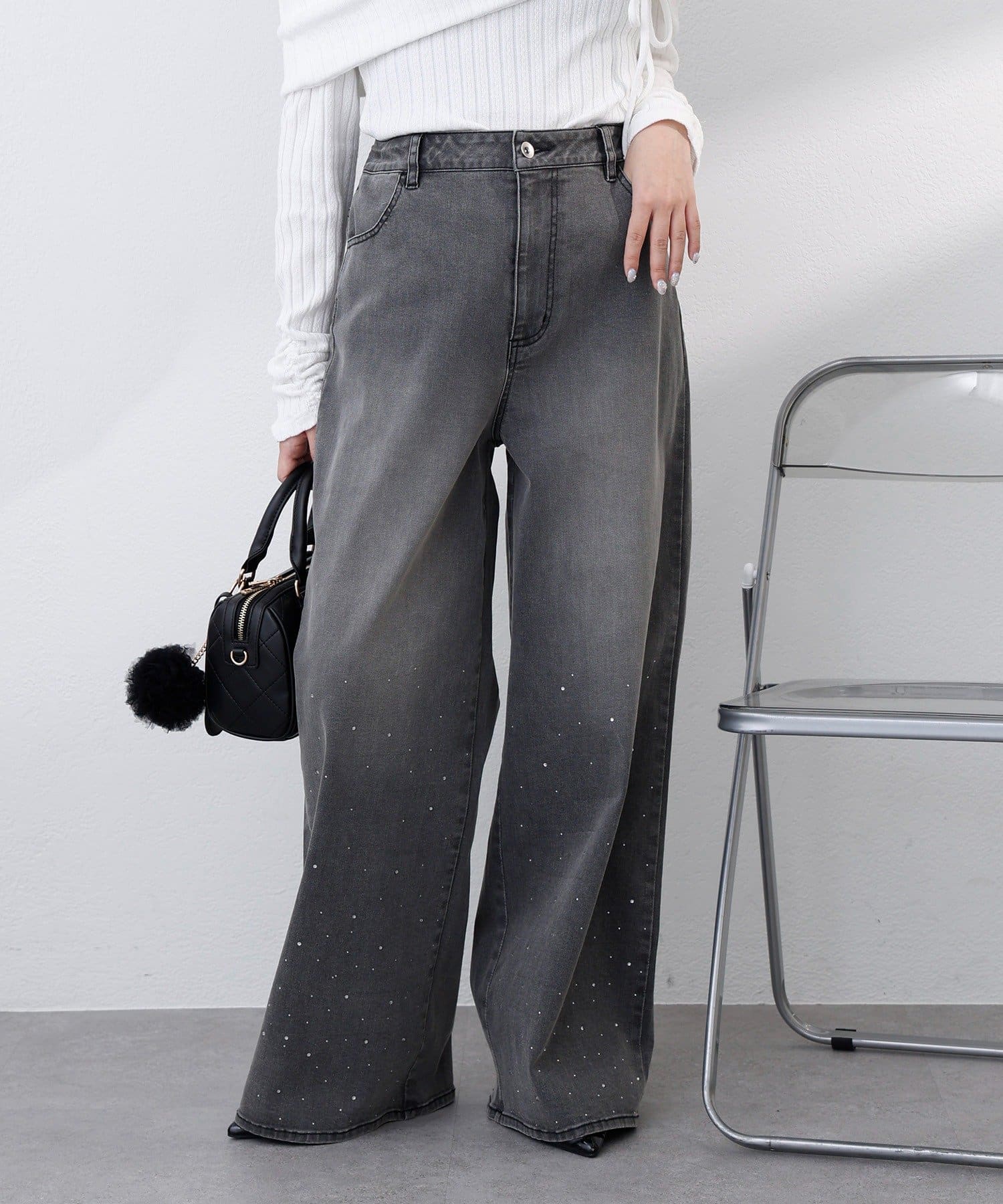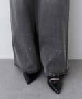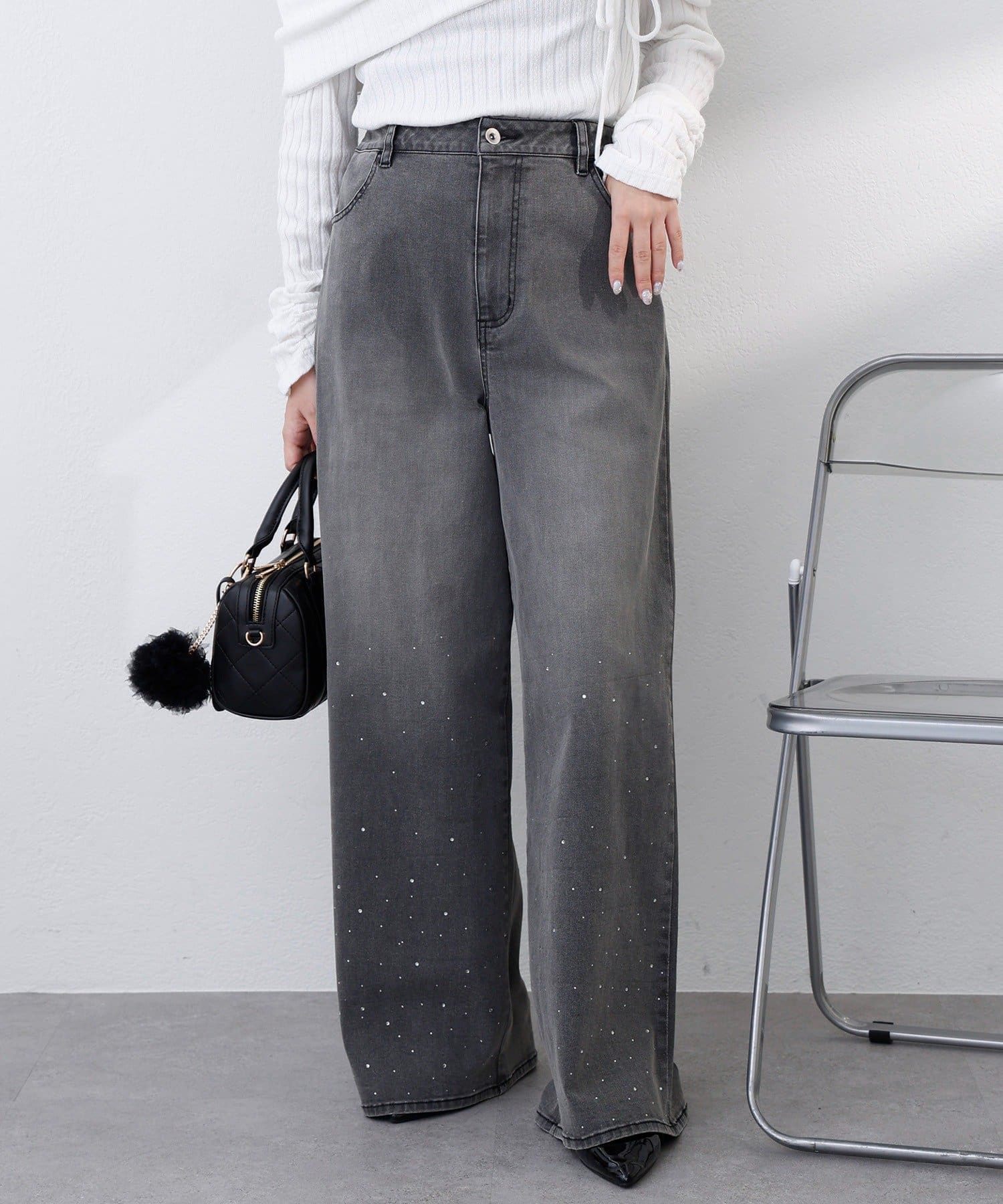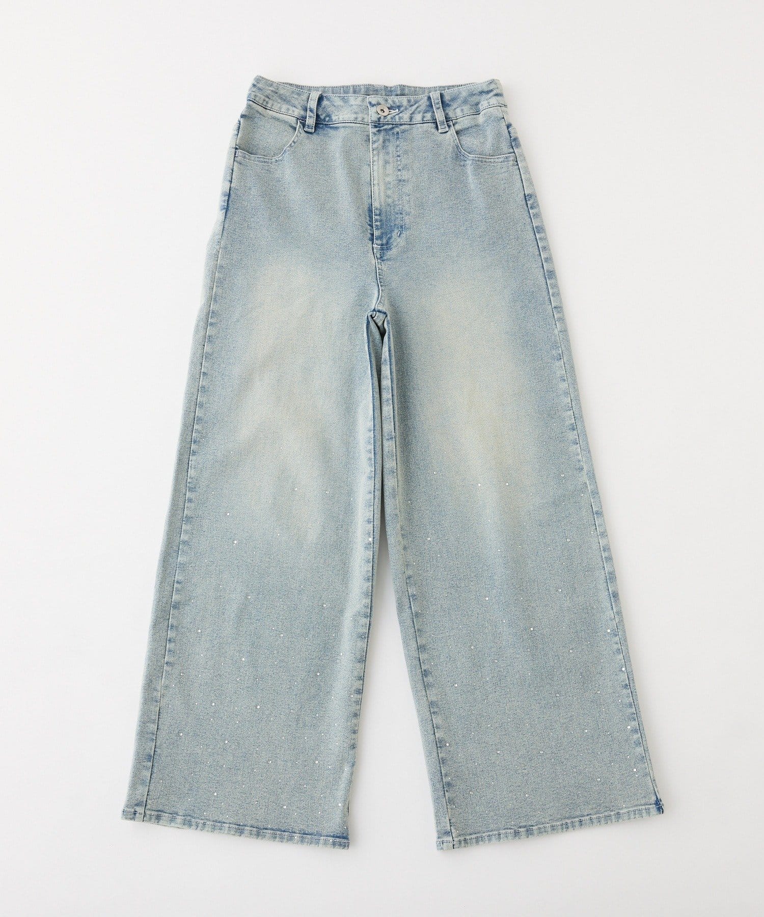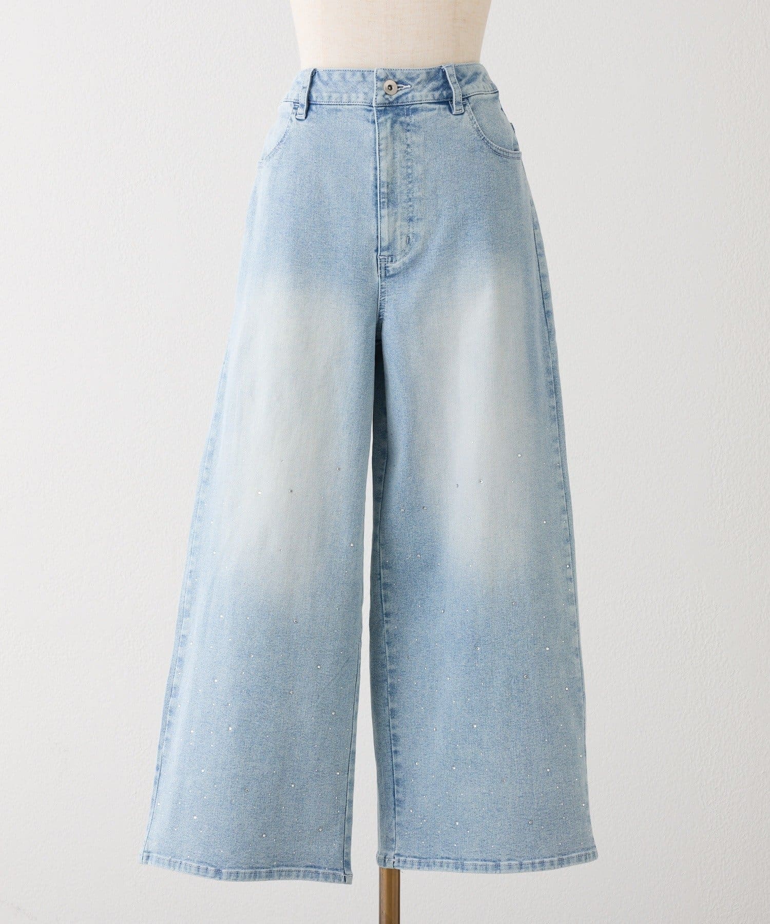 【SSサイズあり/ウエスト調整可能】ビジュー付きワイドデニム
