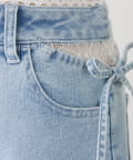 one after another NICE CLAUP(ワンアフターアナザー ナイスクラップ) 【選べる3サイズ】サイドカットレース美脚ビジューワイドデニム