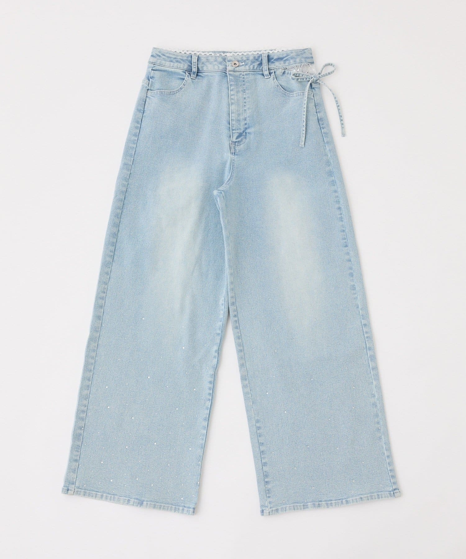 • one after another NICE CLAUP(ワンアフターアナザー ナイスクラップ) 【選べる3サイズ】サイドカットレース美脚ビジューワイドデニム