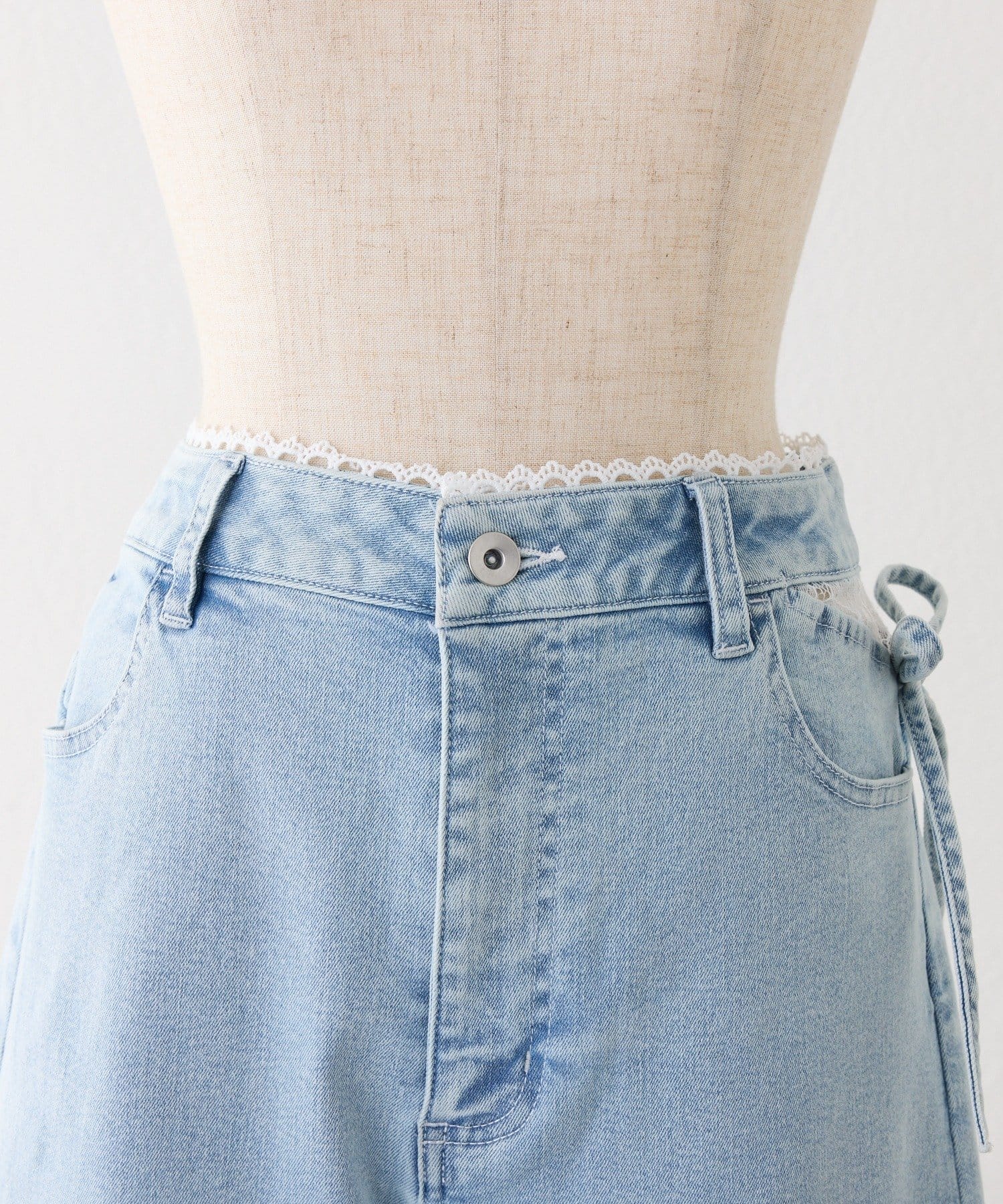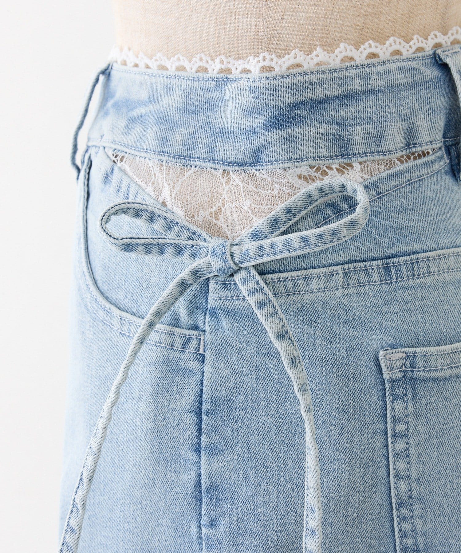 ウエストサイドオープンデザイン&レース付きで抜け感をプラスしつつ、リボンディテールでガーリーなアクセントをON。