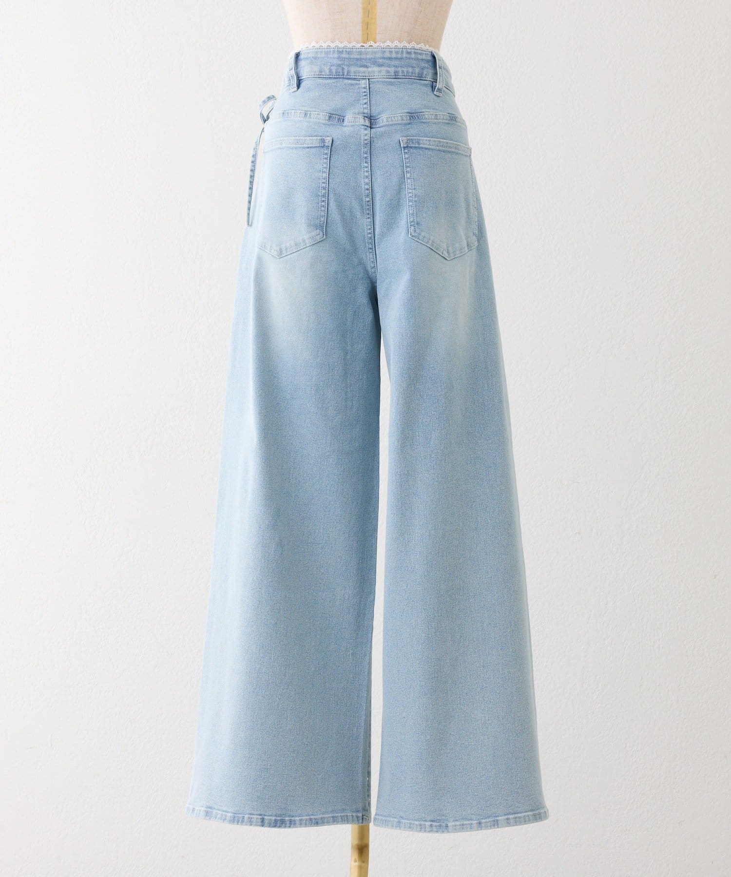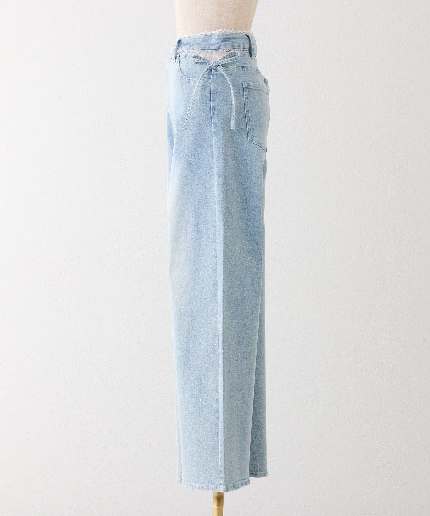 TOP > one after another NICE CLAUP > レディース > パンツ > デニムパンツ > 【選べる3サイズ】サイドカットレース美脚ビジューワイドデニム