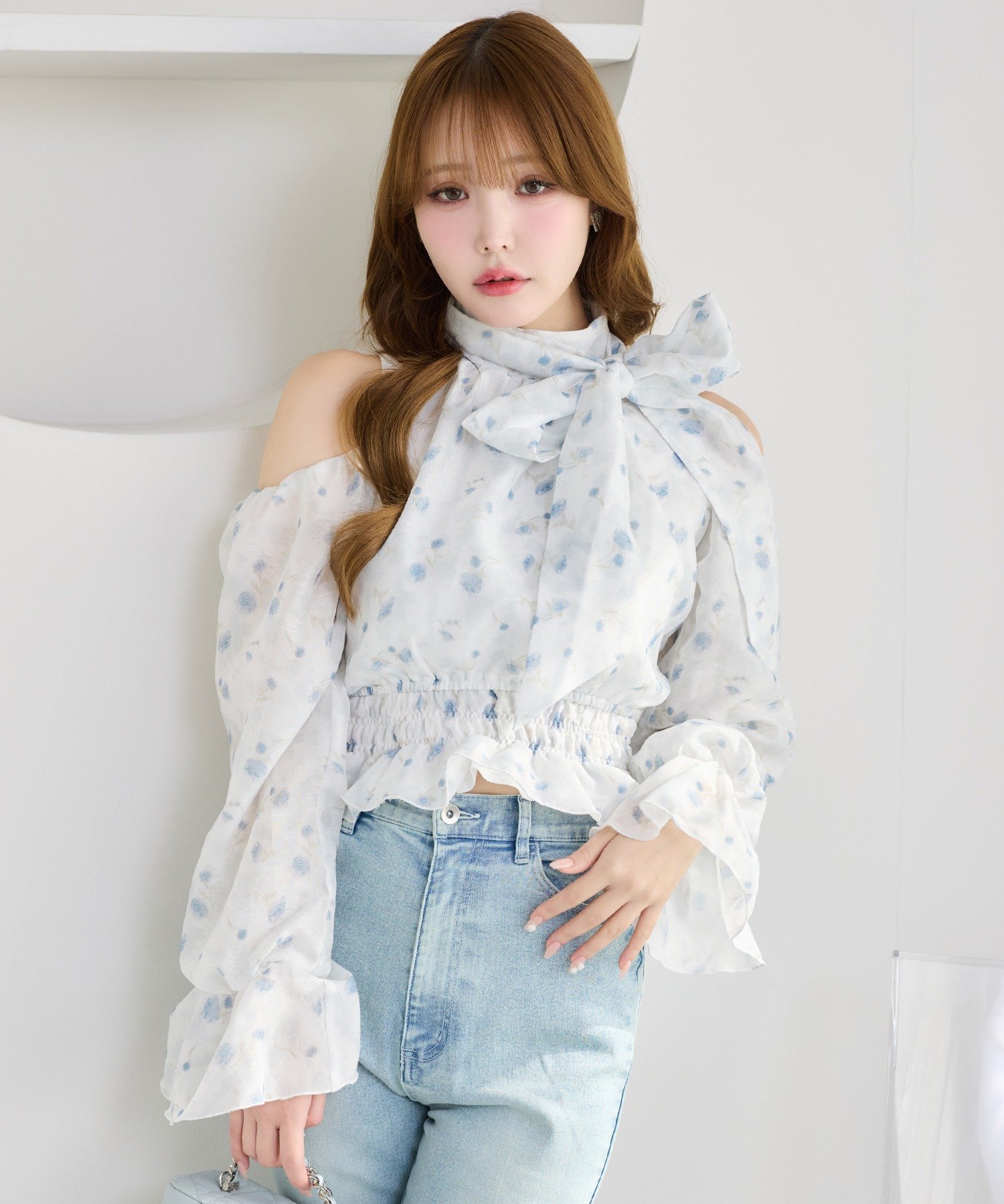 可愛らしさとフェミニンな印象を与えるアメスリブブラウス。