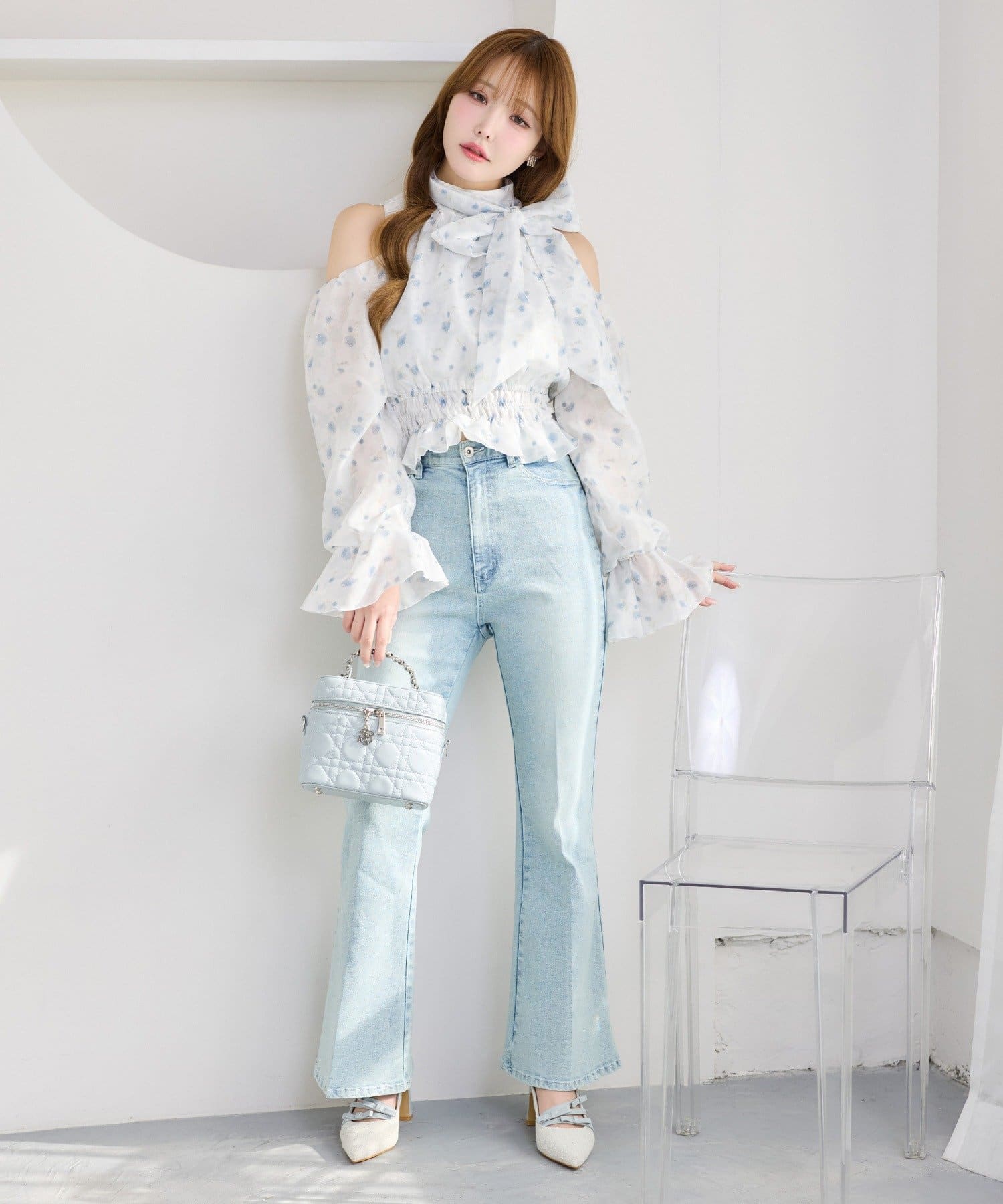 デニムパンツを合わせれば韓国風トレンドスタイルが完成します。