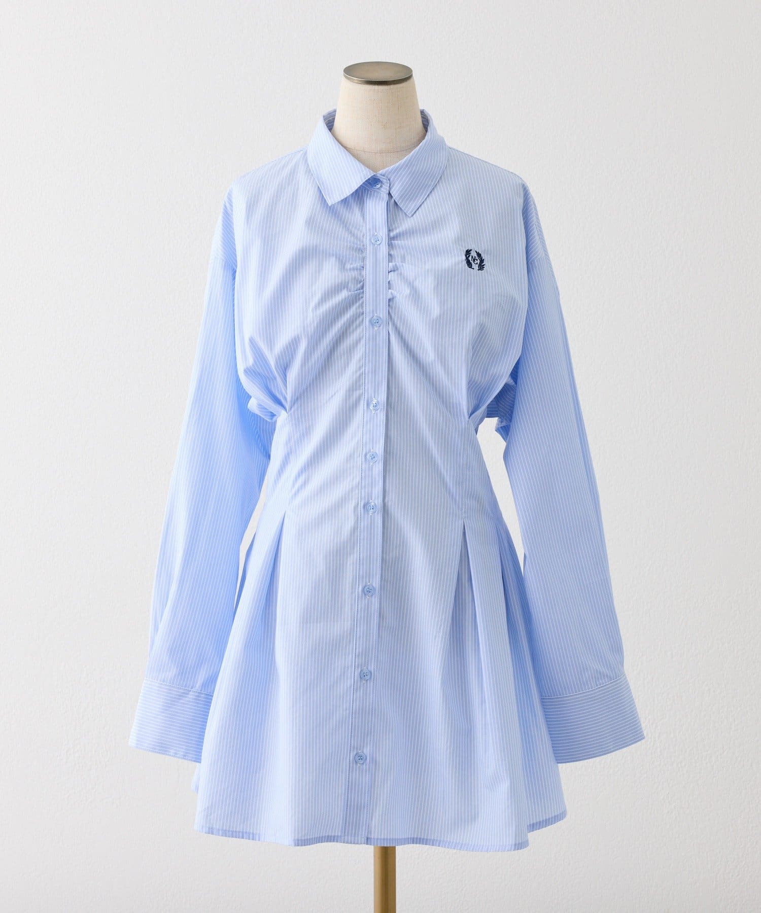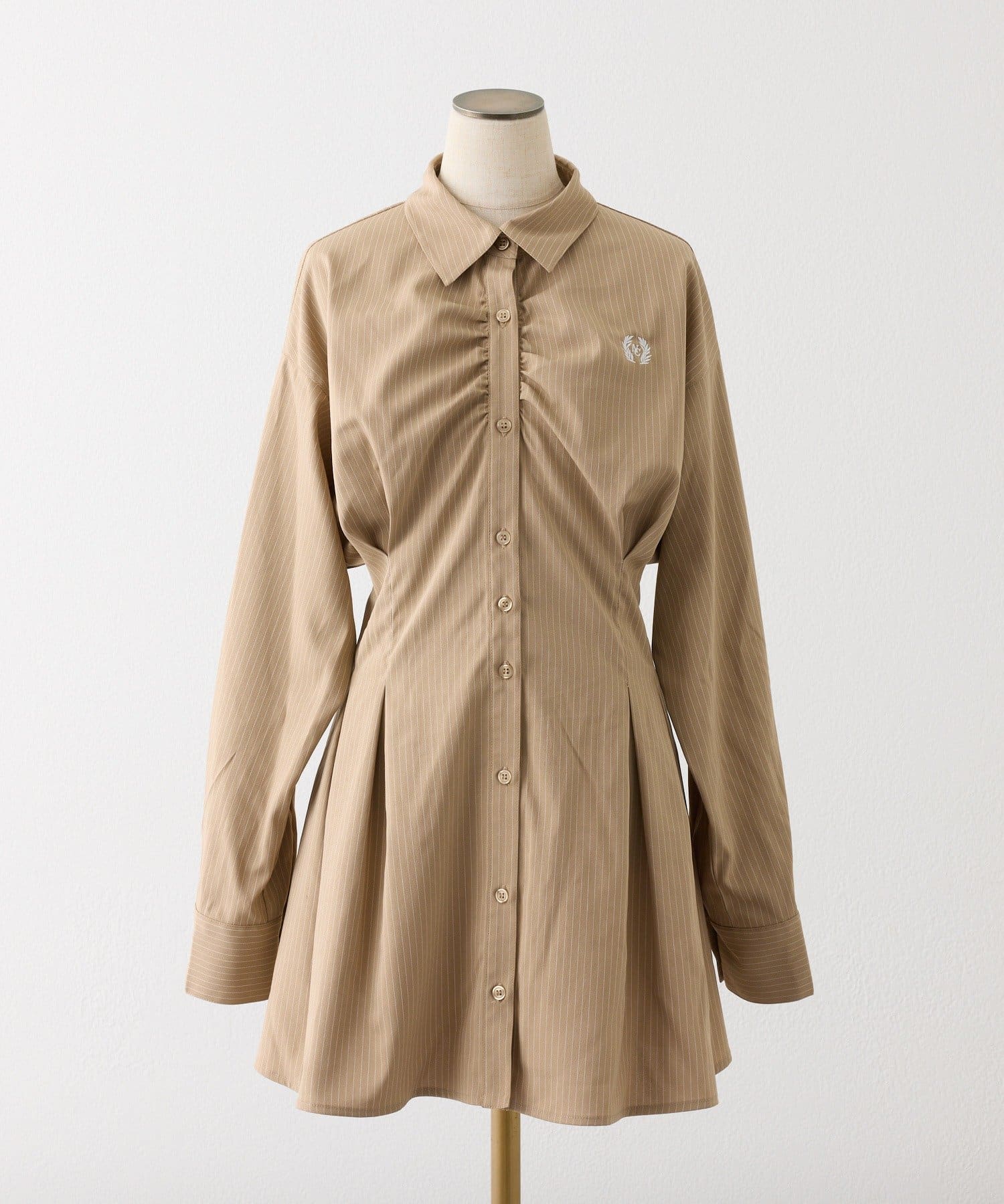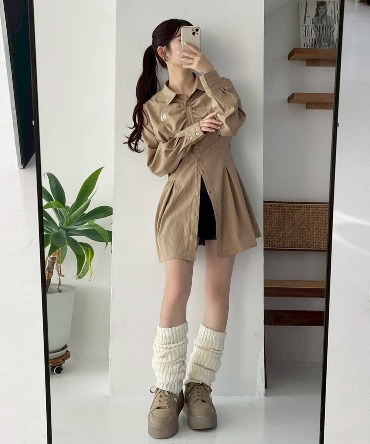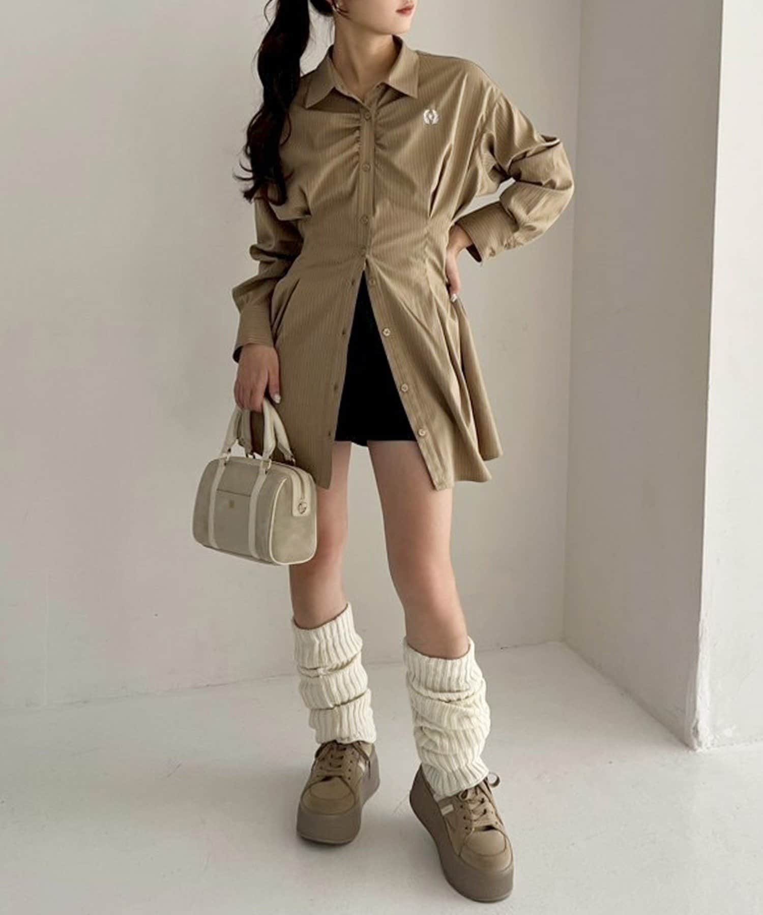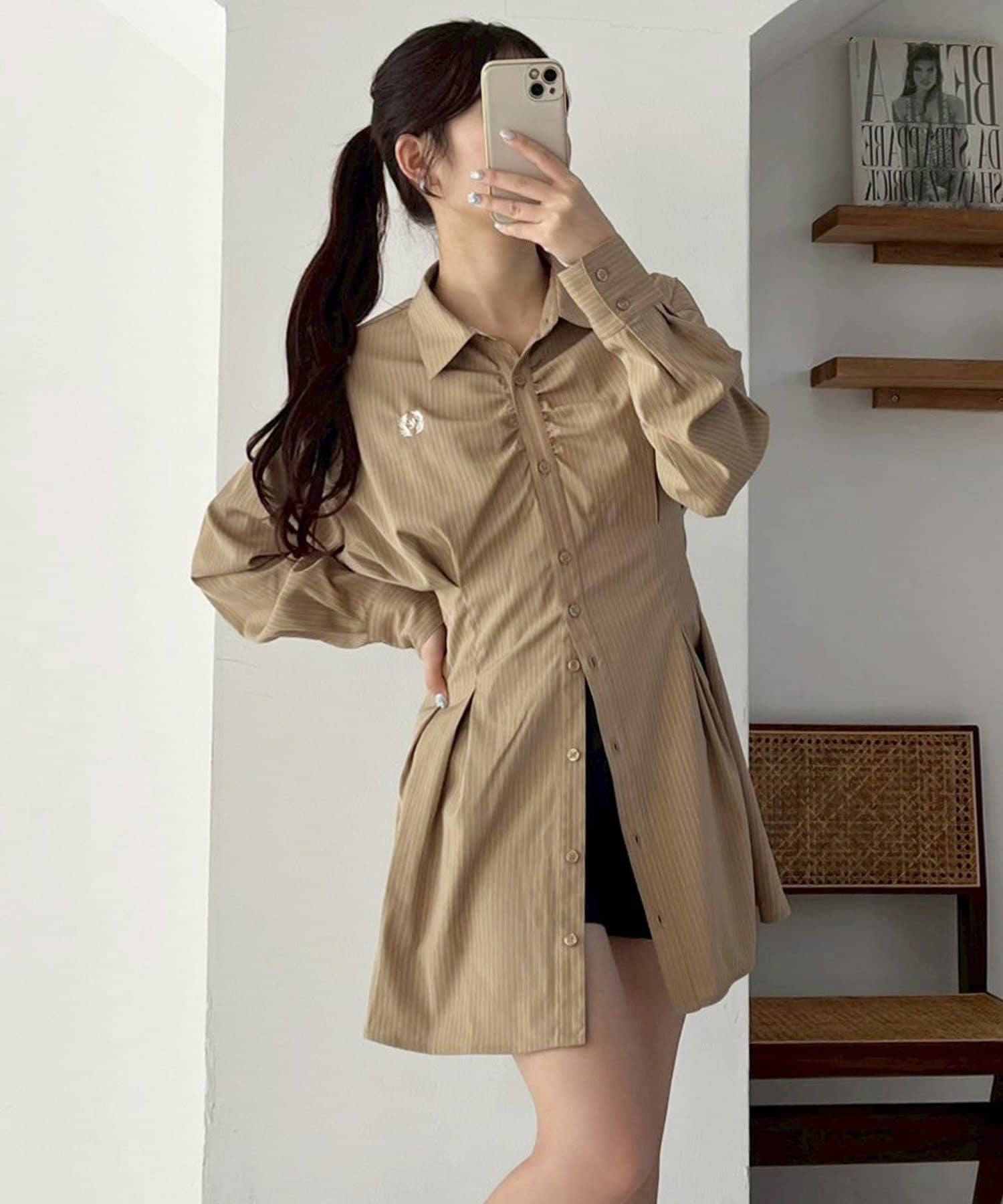 着るだけでスタイルアップができ、ウエスト細見え間違いなしのミドル丈のシャツ。