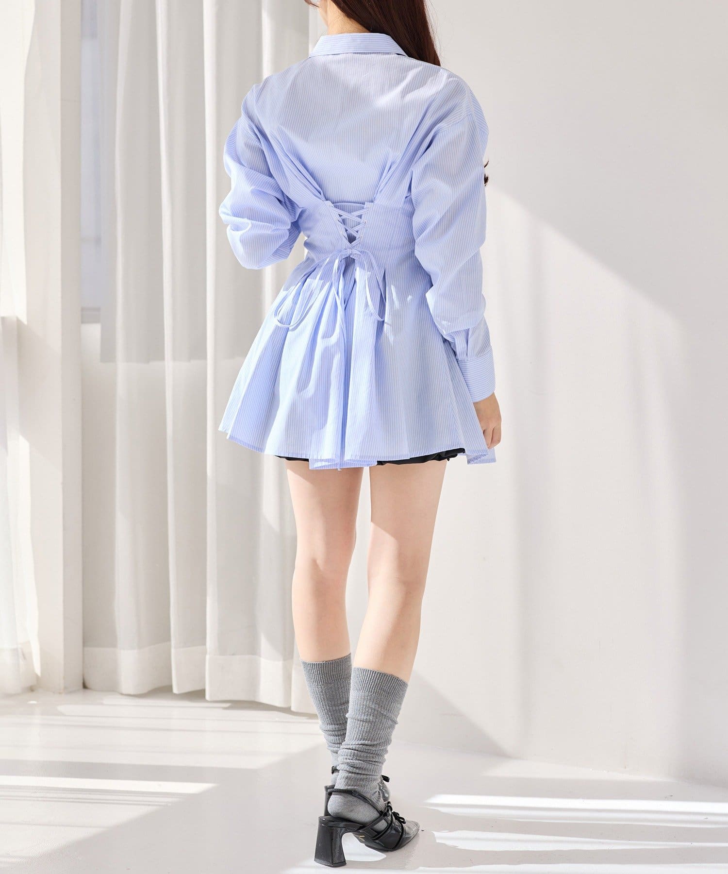 one after another NICE CLAUP(ワンアフターアナザー ナイスクラップ) マイナス5キロ見えレースアップシャツチュニック