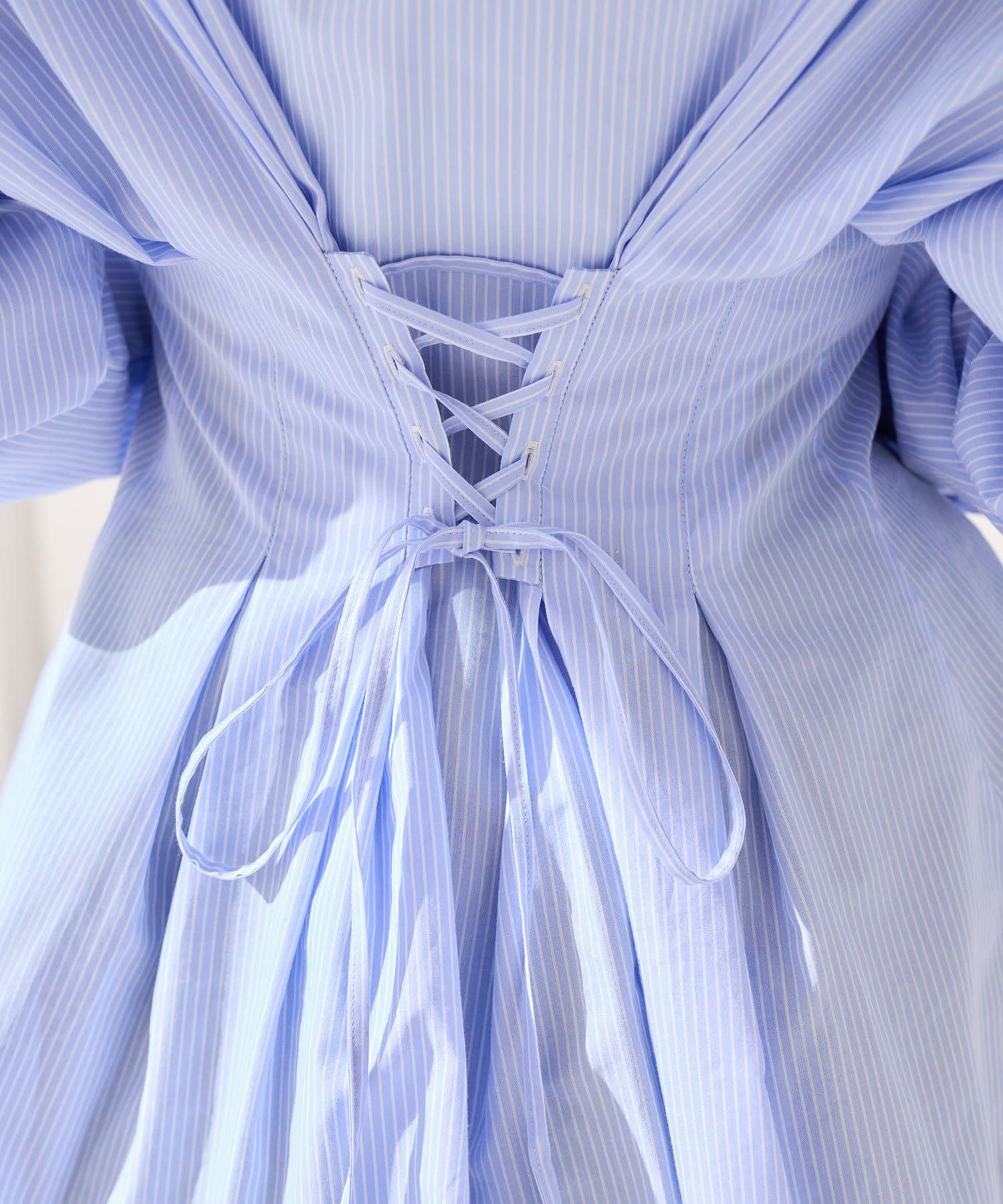 TOP > one after another NICE CLAUP > レディース > トップス > シャツ/ブラウス(ボタン) > マイナス5キロ見えレースアップシャツチュニック