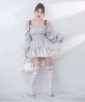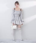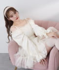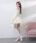 袖はふわっと広がったキャンディースリーブで華奢に見せてくれます。