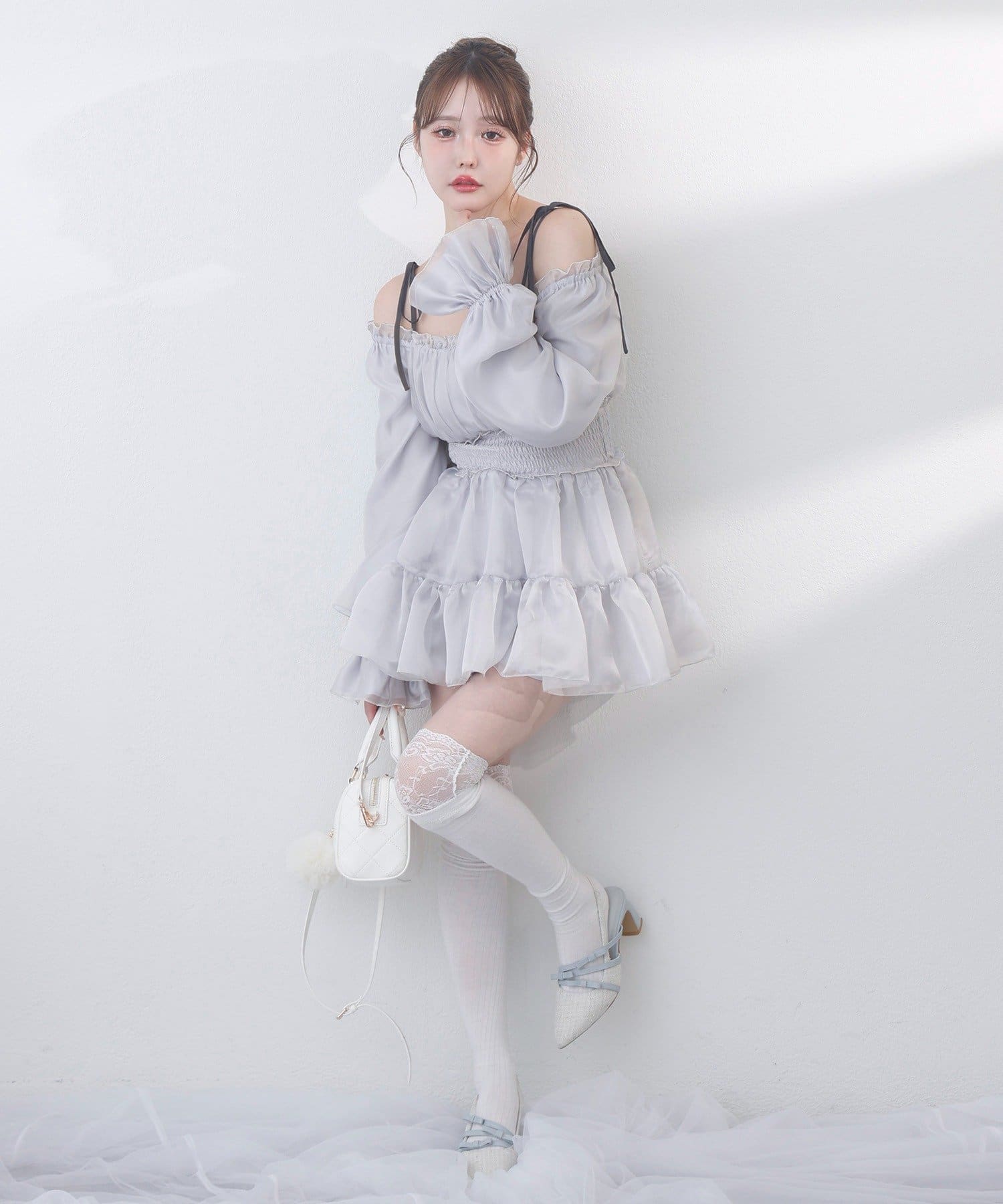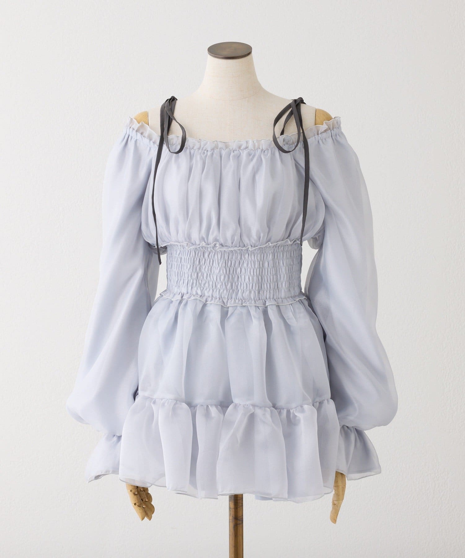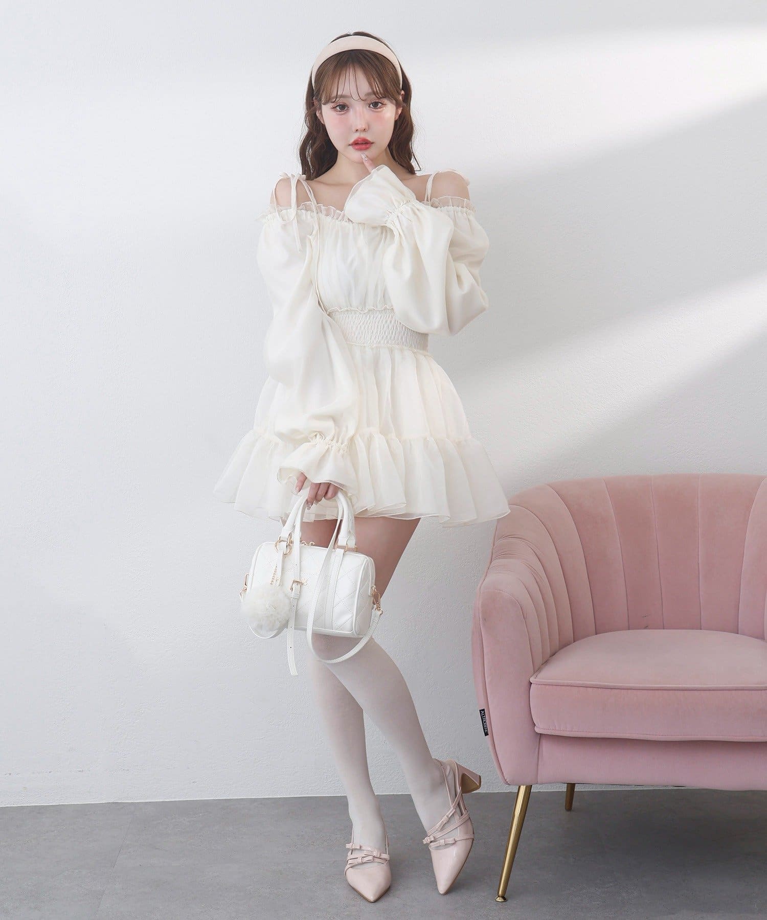 肩のリボンでフェミニンな印象になります◎