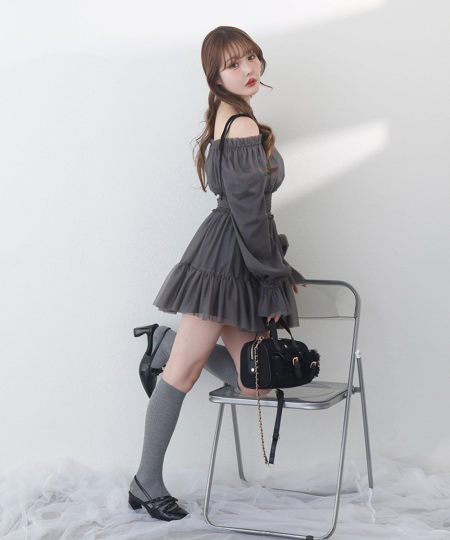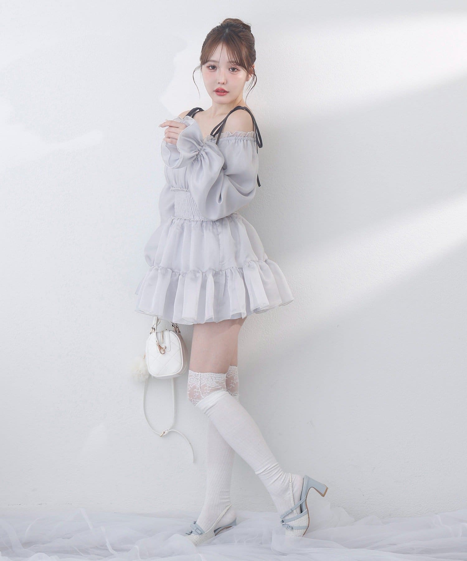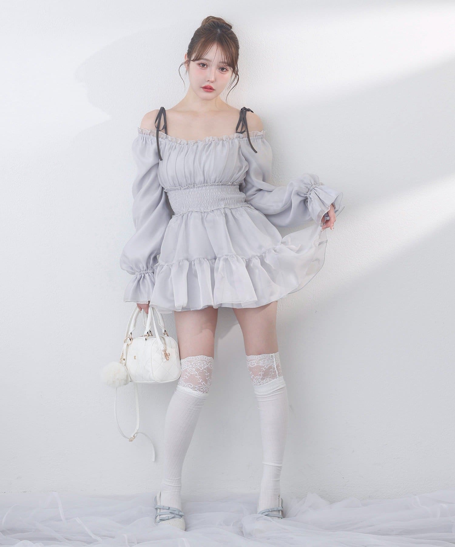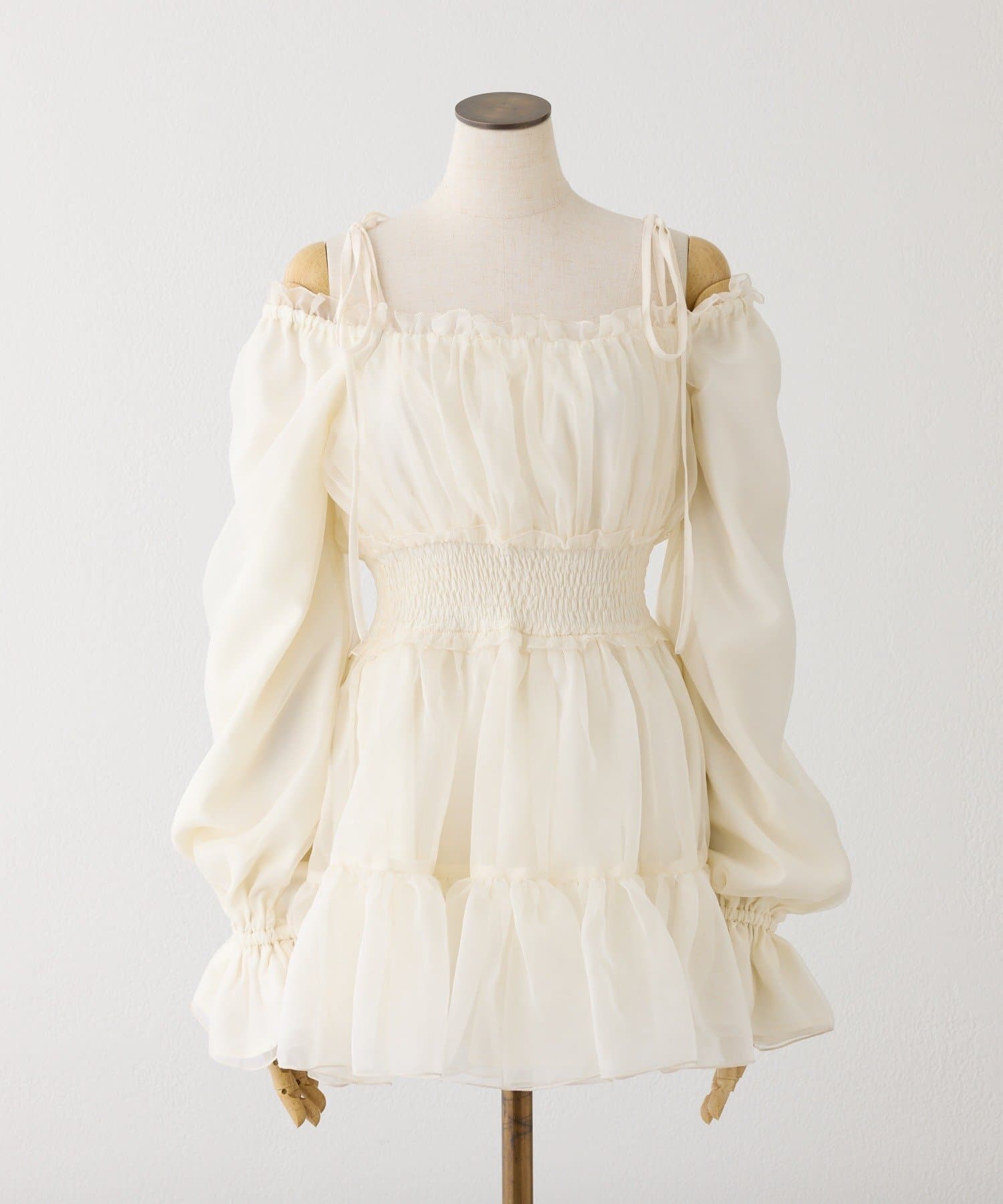 肩のリボンでフェミニンな印象になります◎