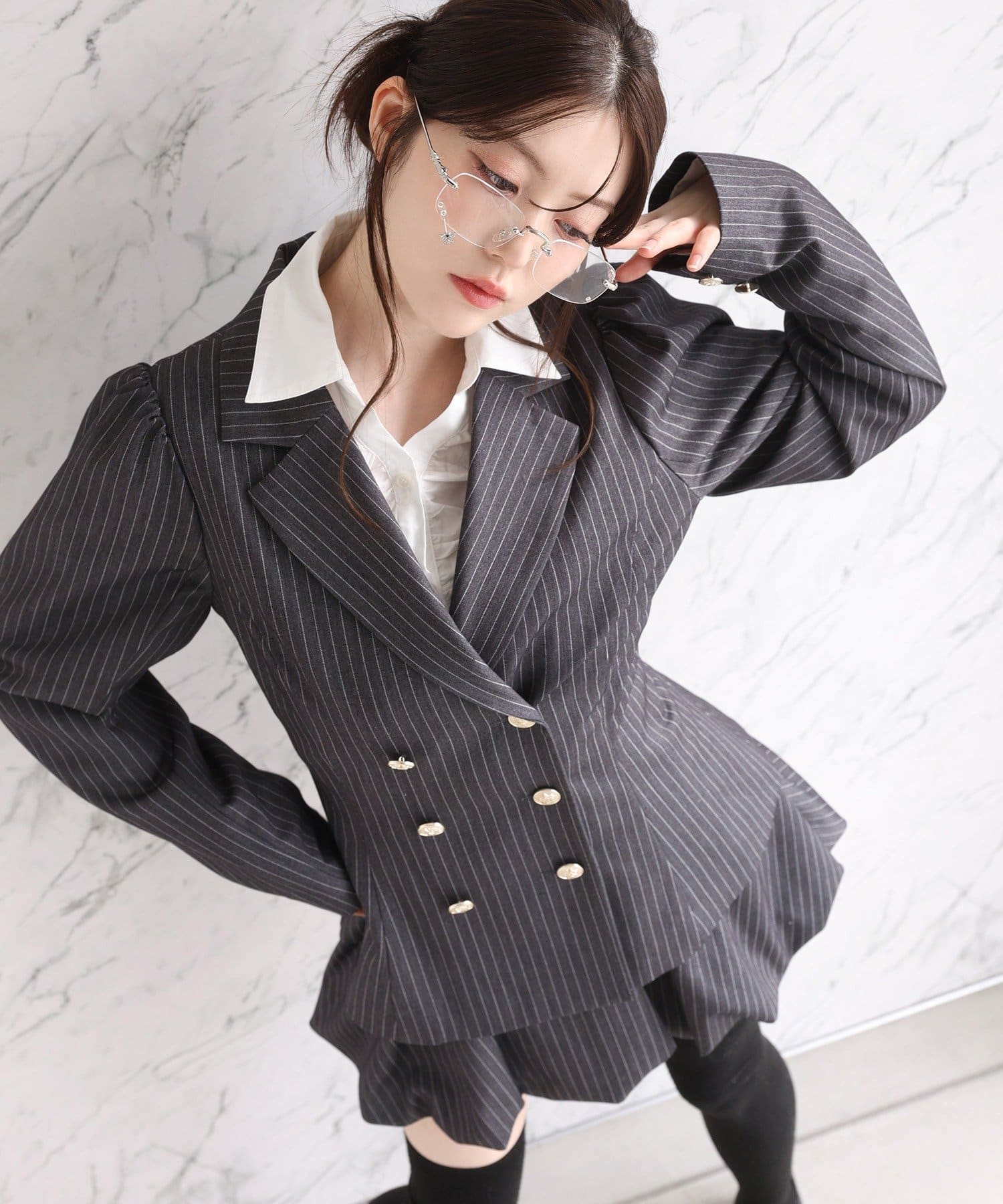 リボンは取り外しが出来るので、着方によって様々な印象も与えられます。