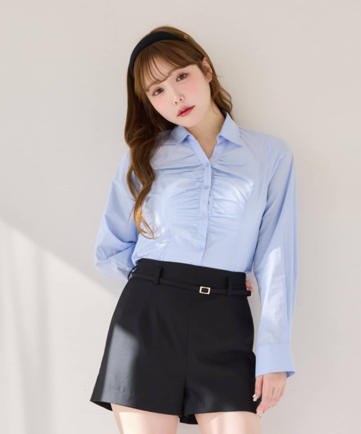【すぐにお届け!】フロントギャザーボウタイシャツ