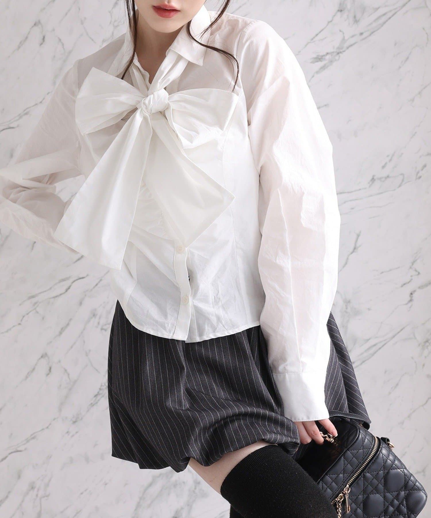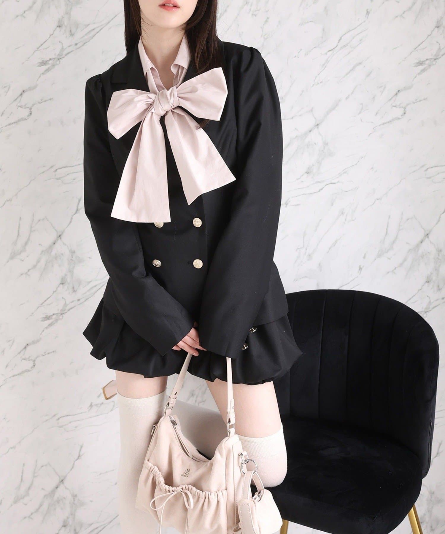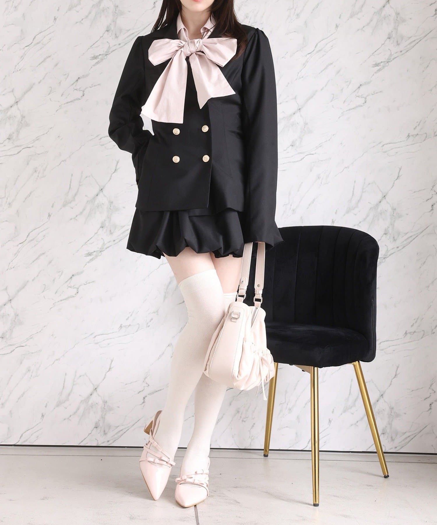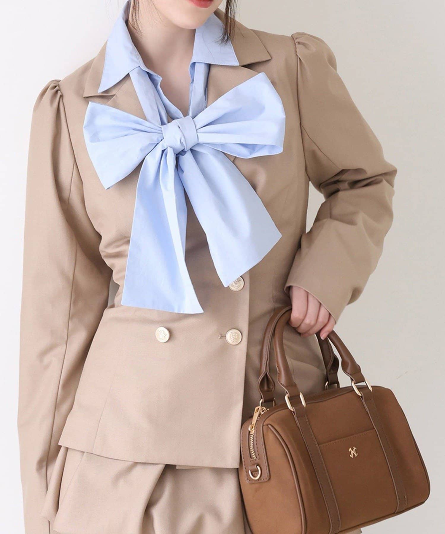 テーラードジャケットに合わせたり、ニットを合わせてリボンのみチラ見せしても可愛く着こなせます。