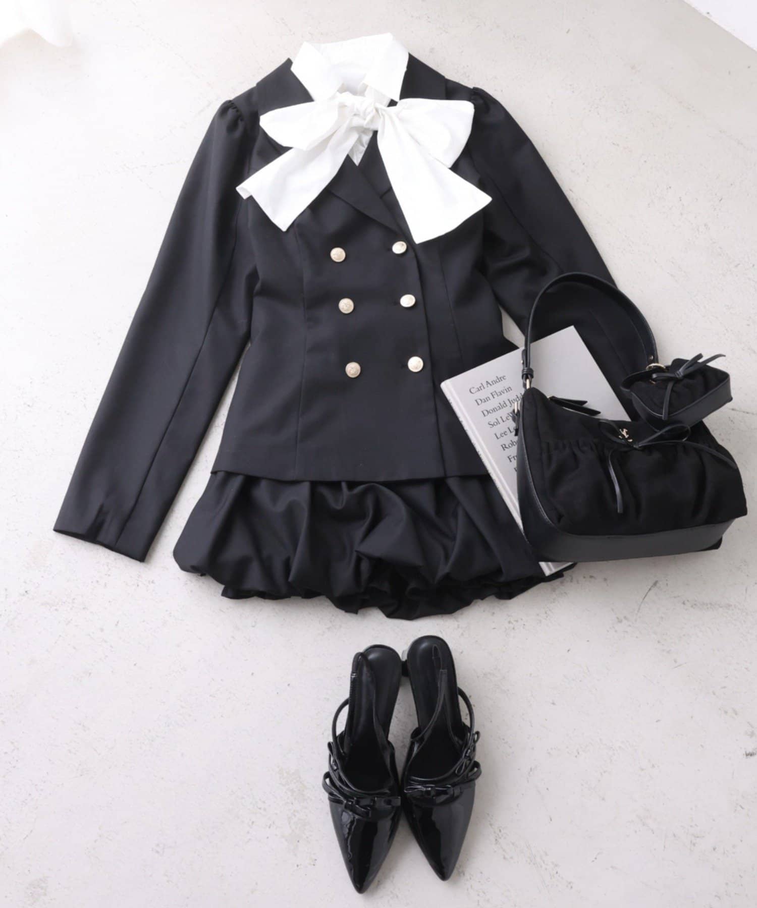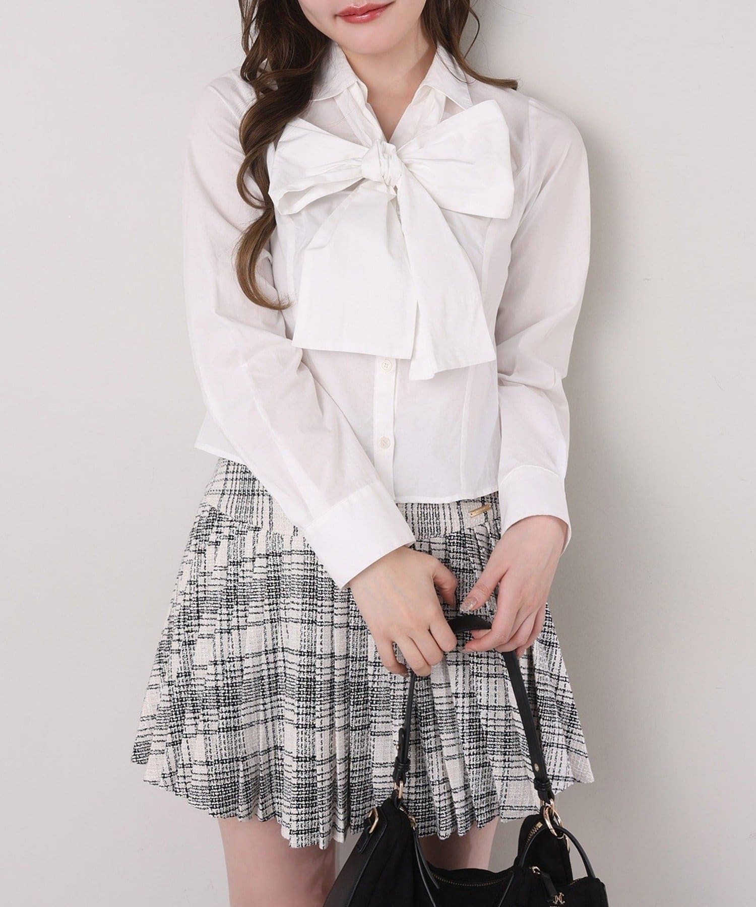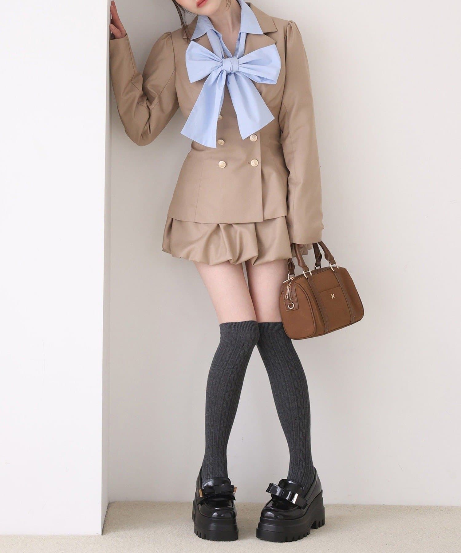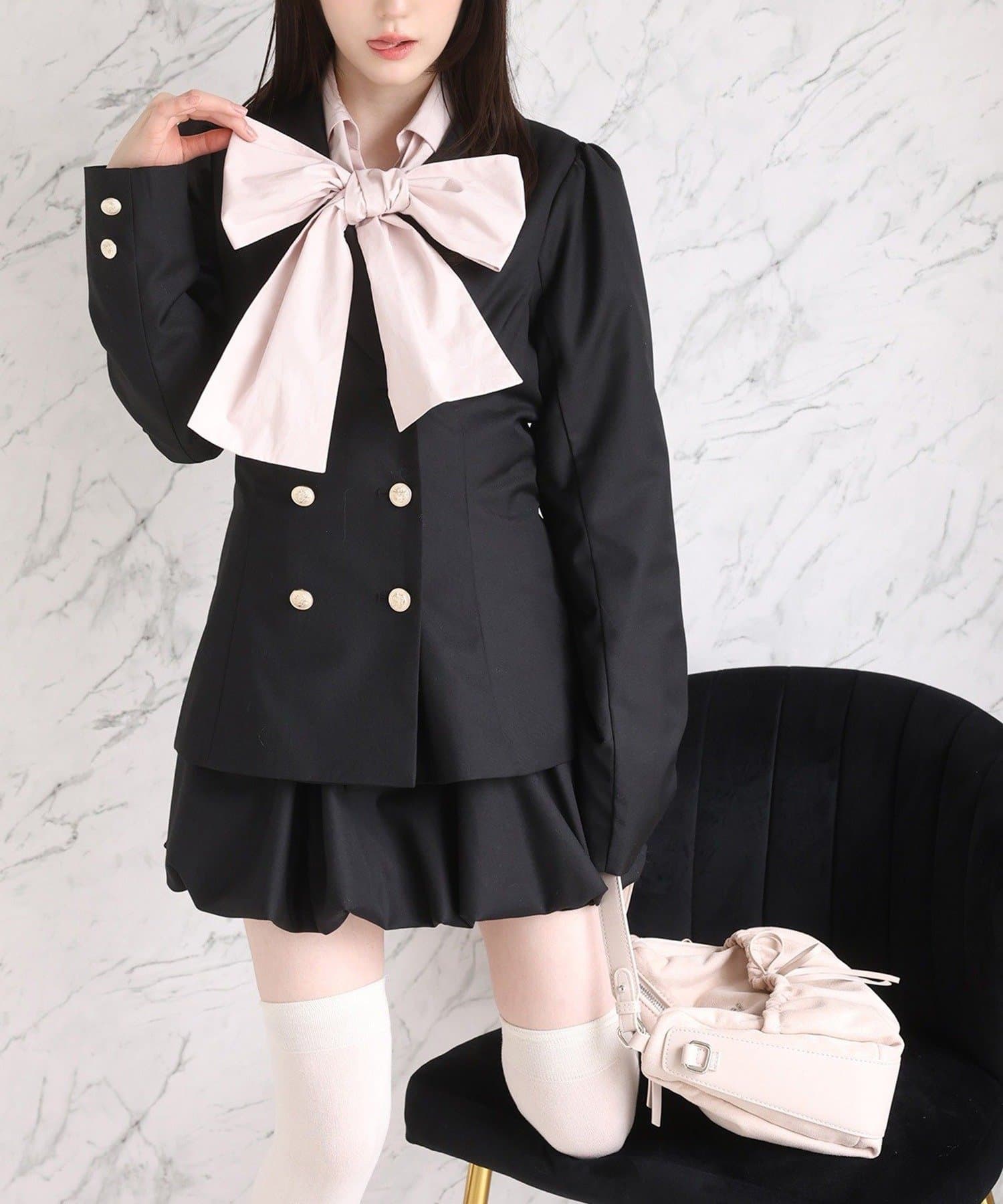 テーラードジャケットに合わせたり、ニットを合わせてリボンのみチラ見せしても可愛く着こなせます。