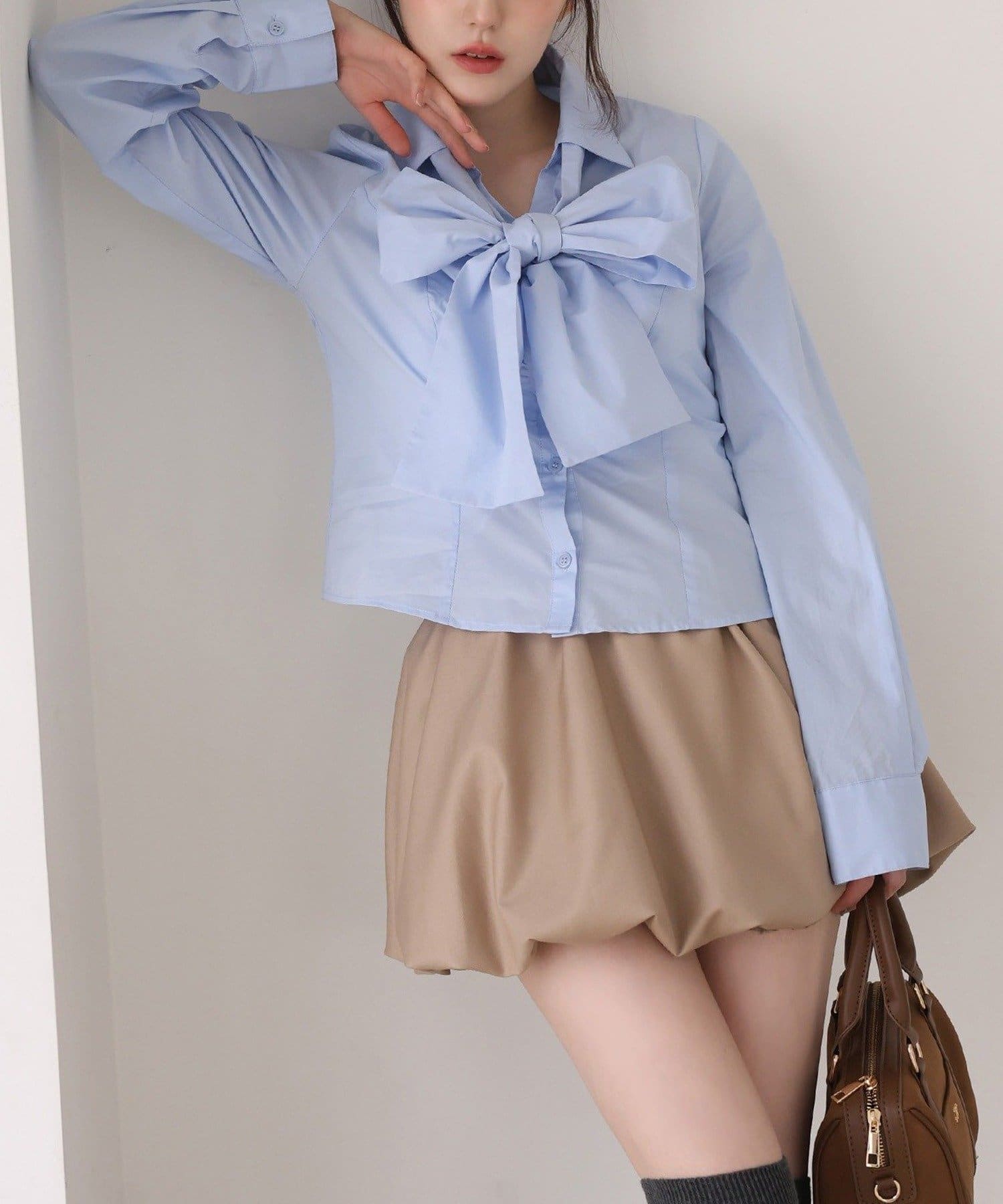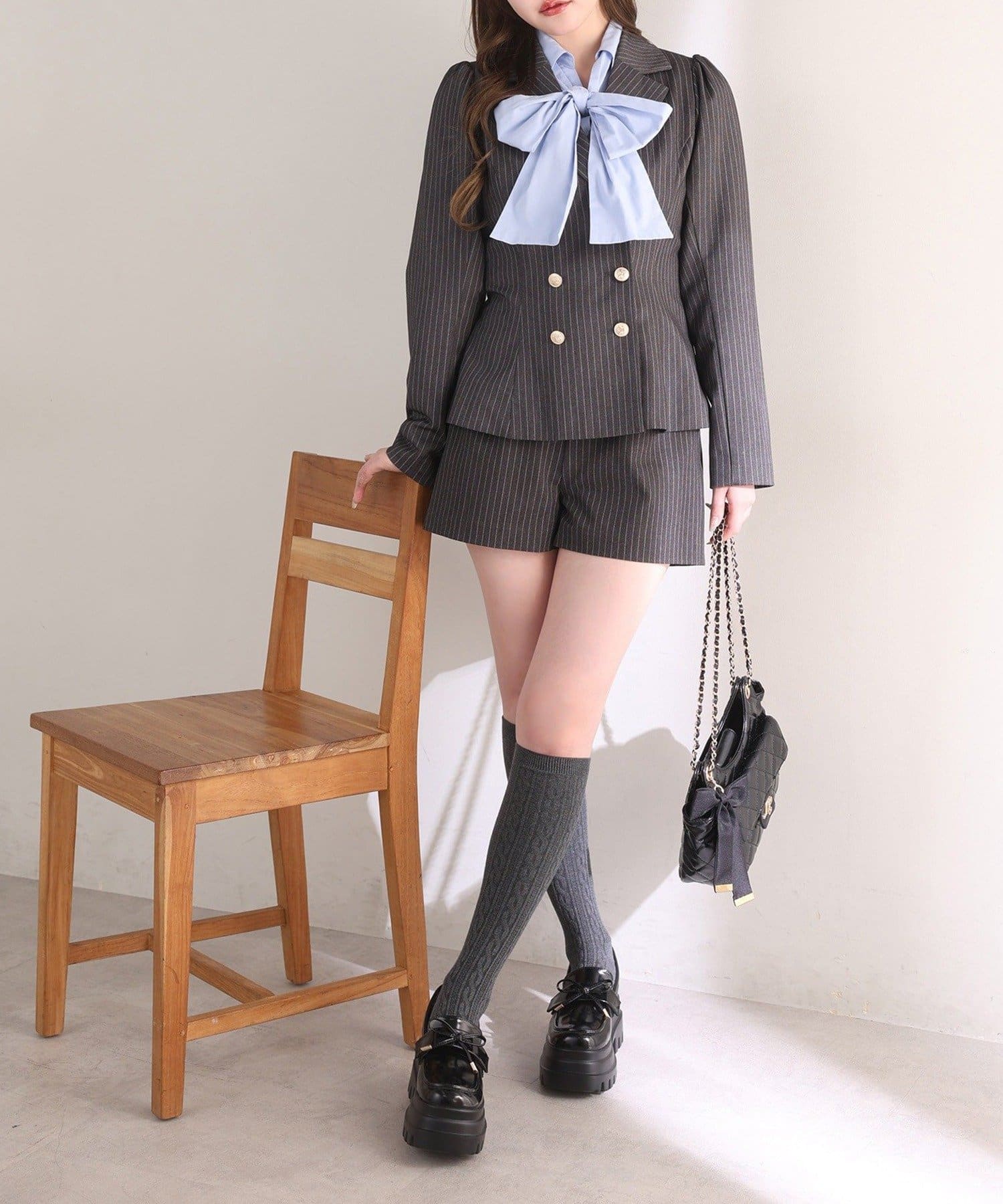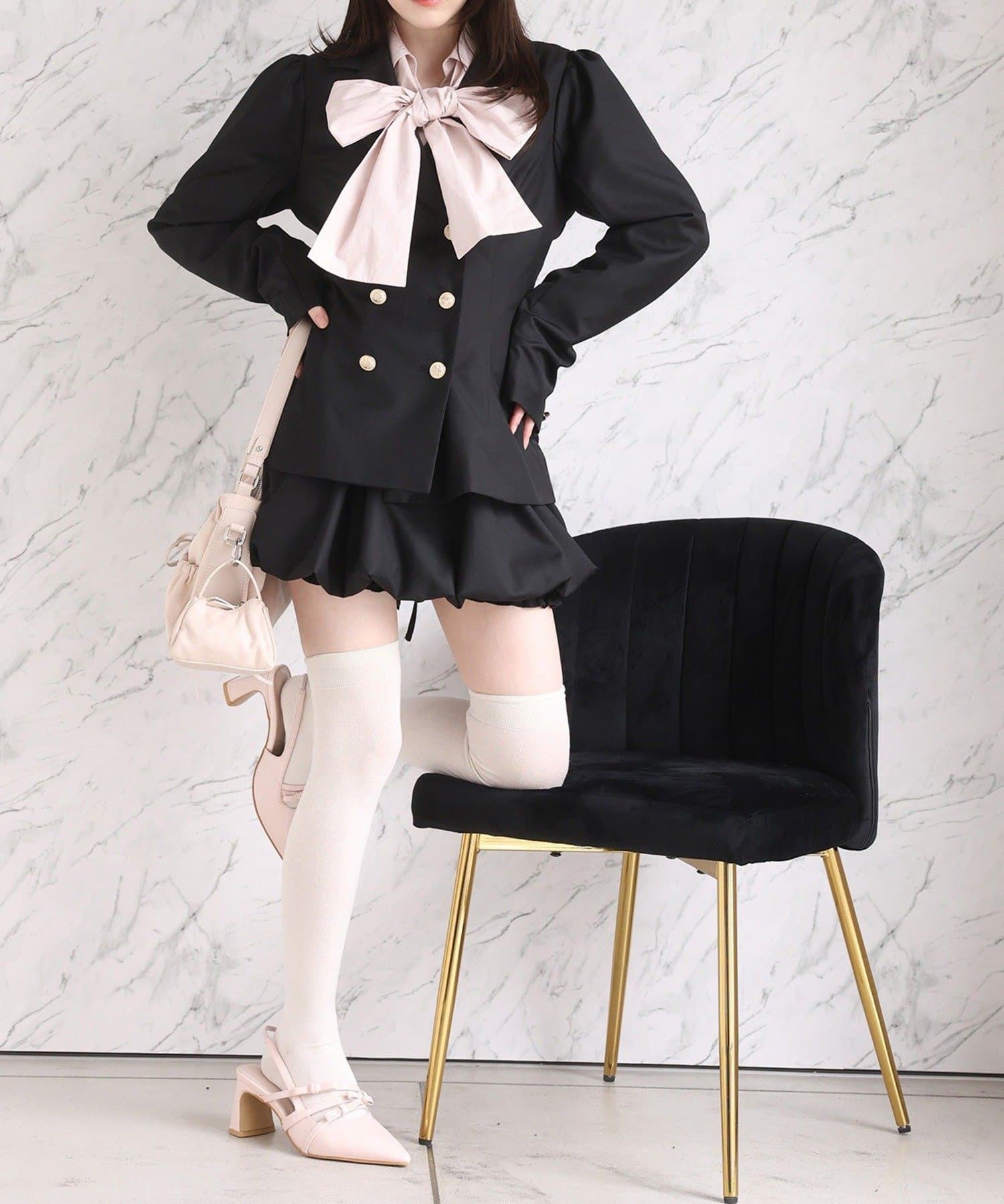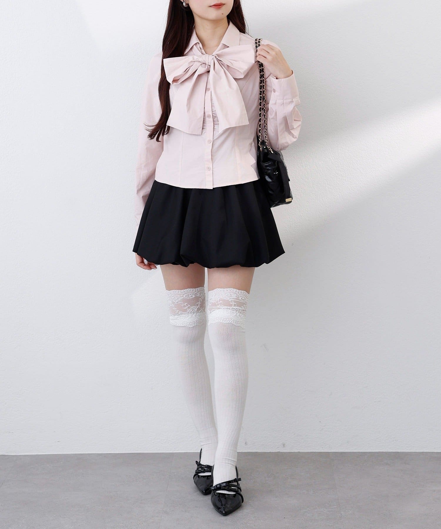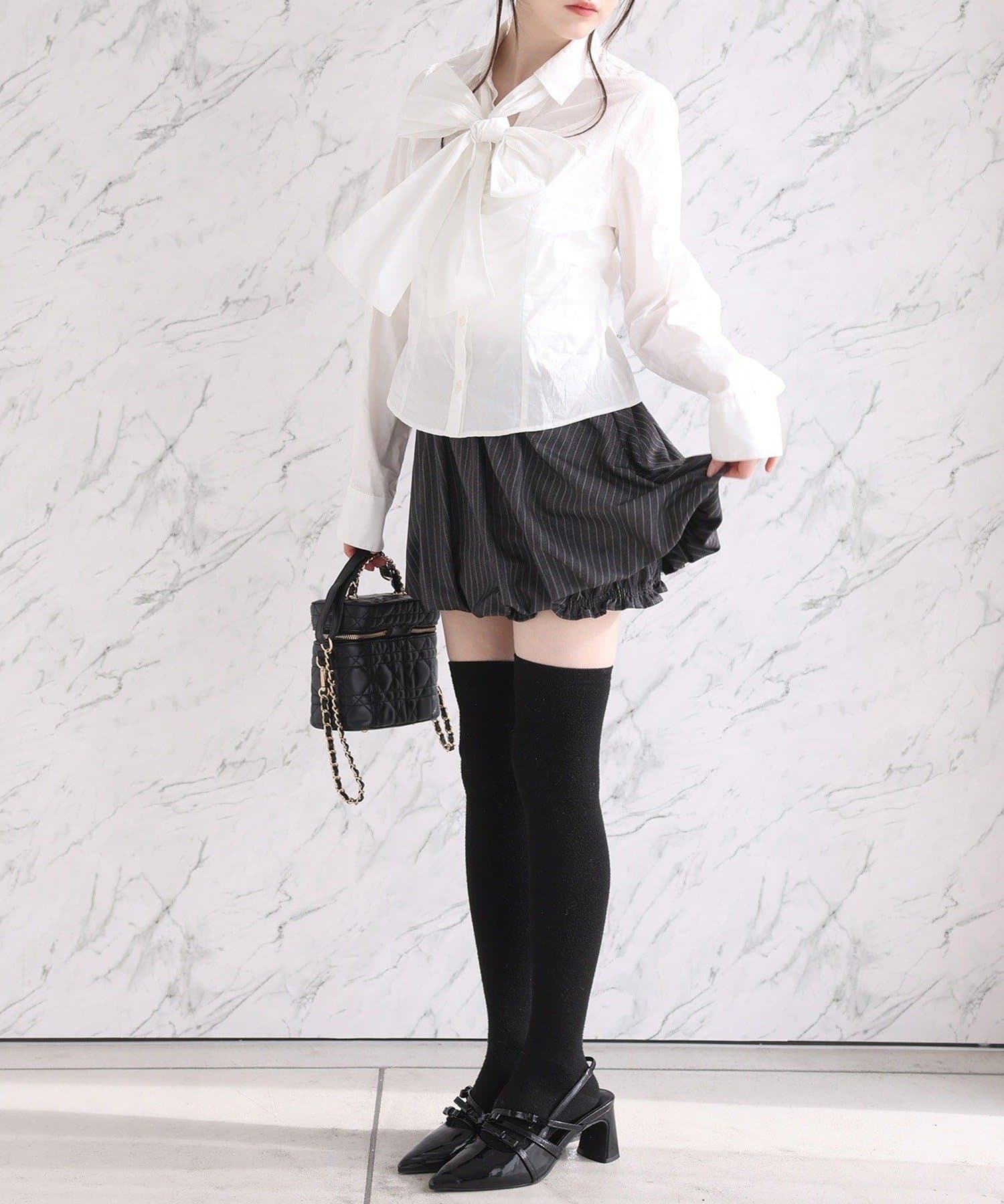 テーラードジャケットに合わせたり、ニットを合わせてリボンのみチラ見せしても可愛く着こなせます。