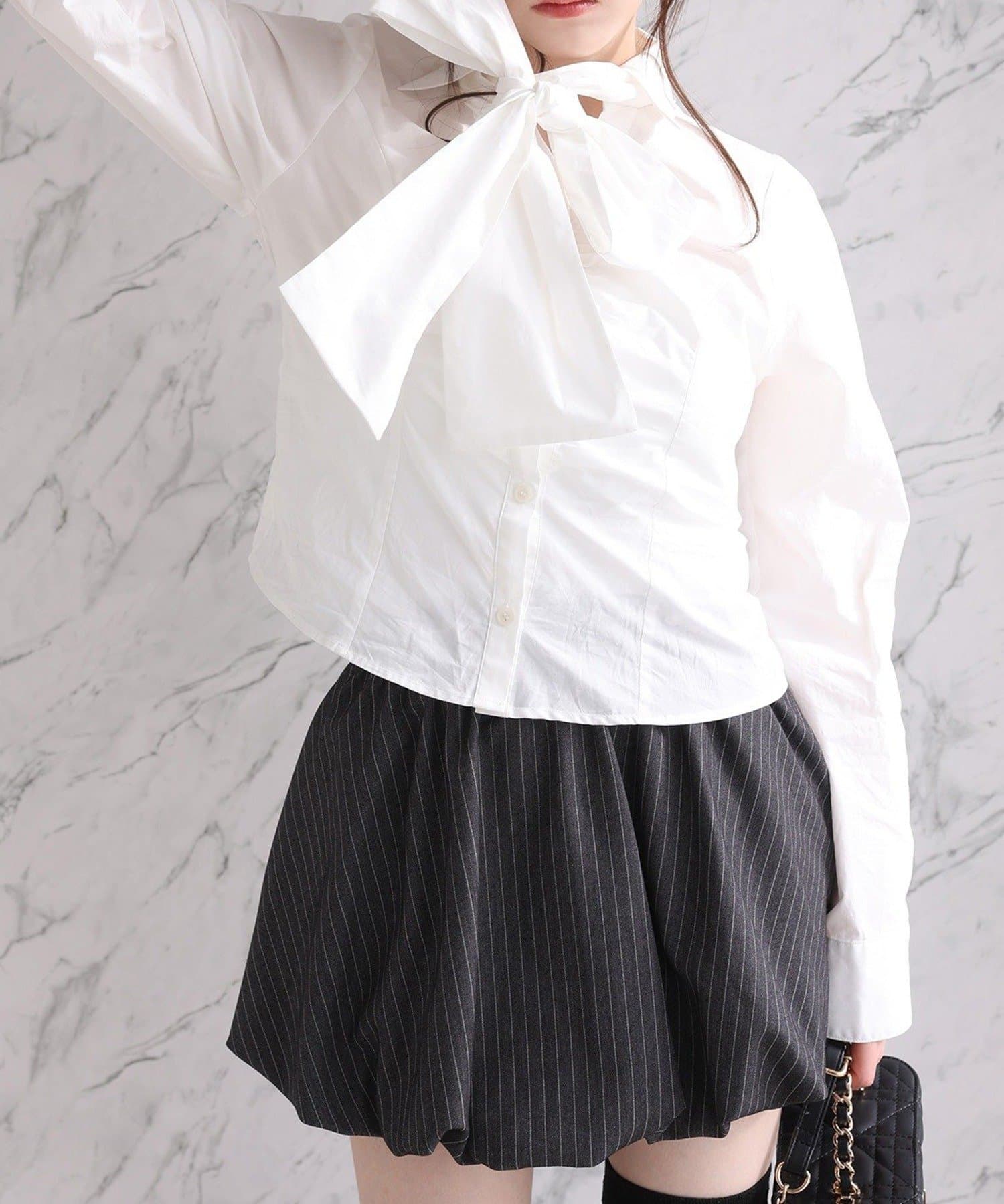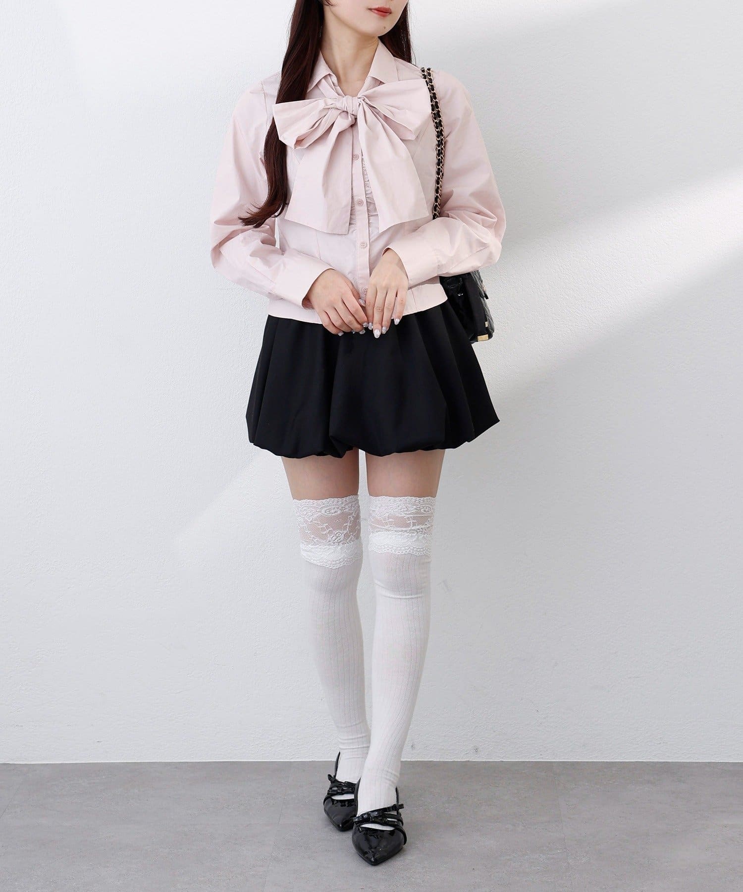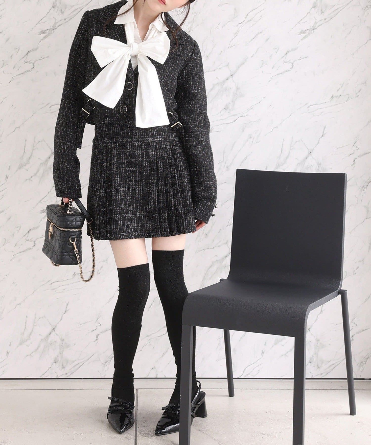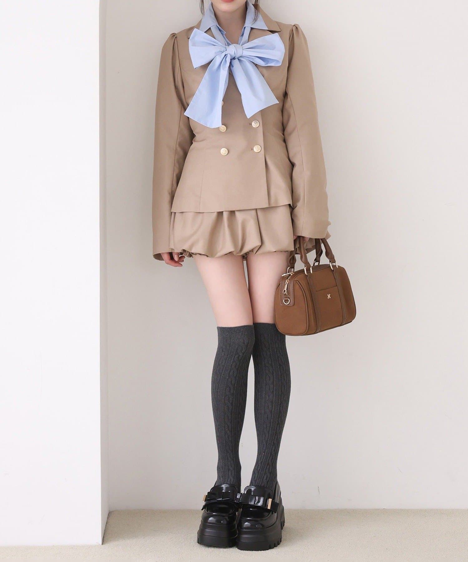 テーラードジャケットに合わせたり、ニットを合わせてリボンのみチラ見せしても可愛く着こなせます。