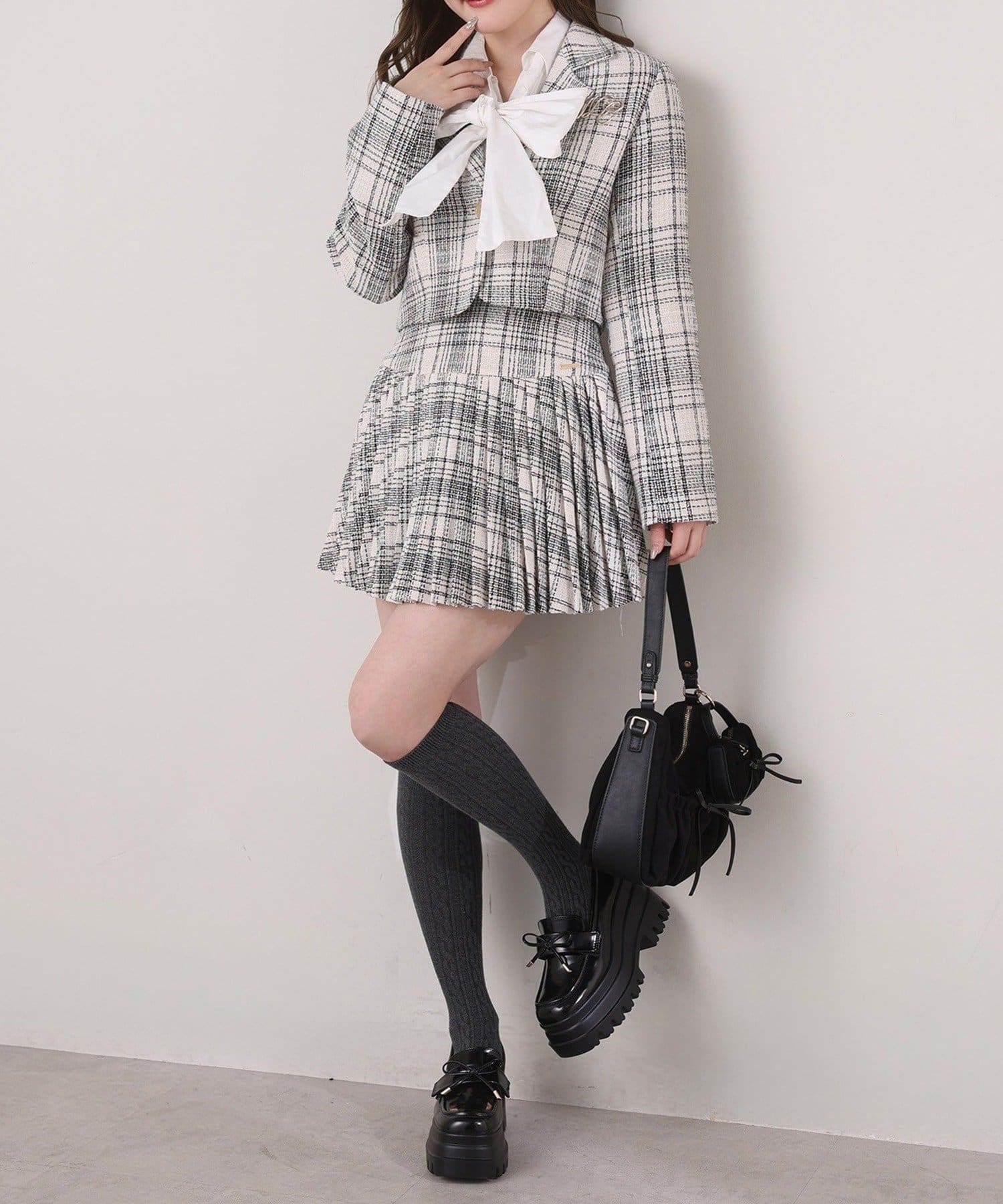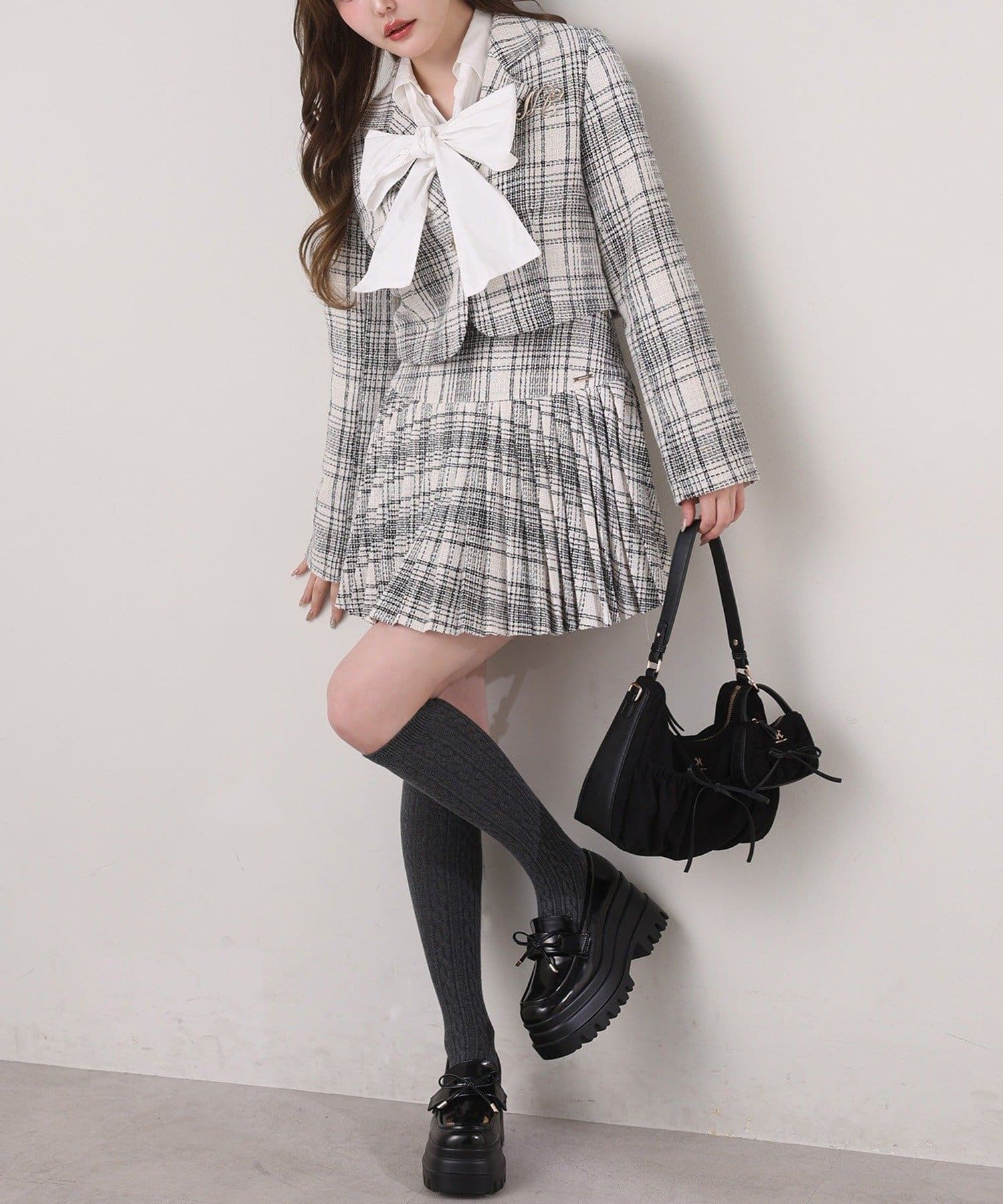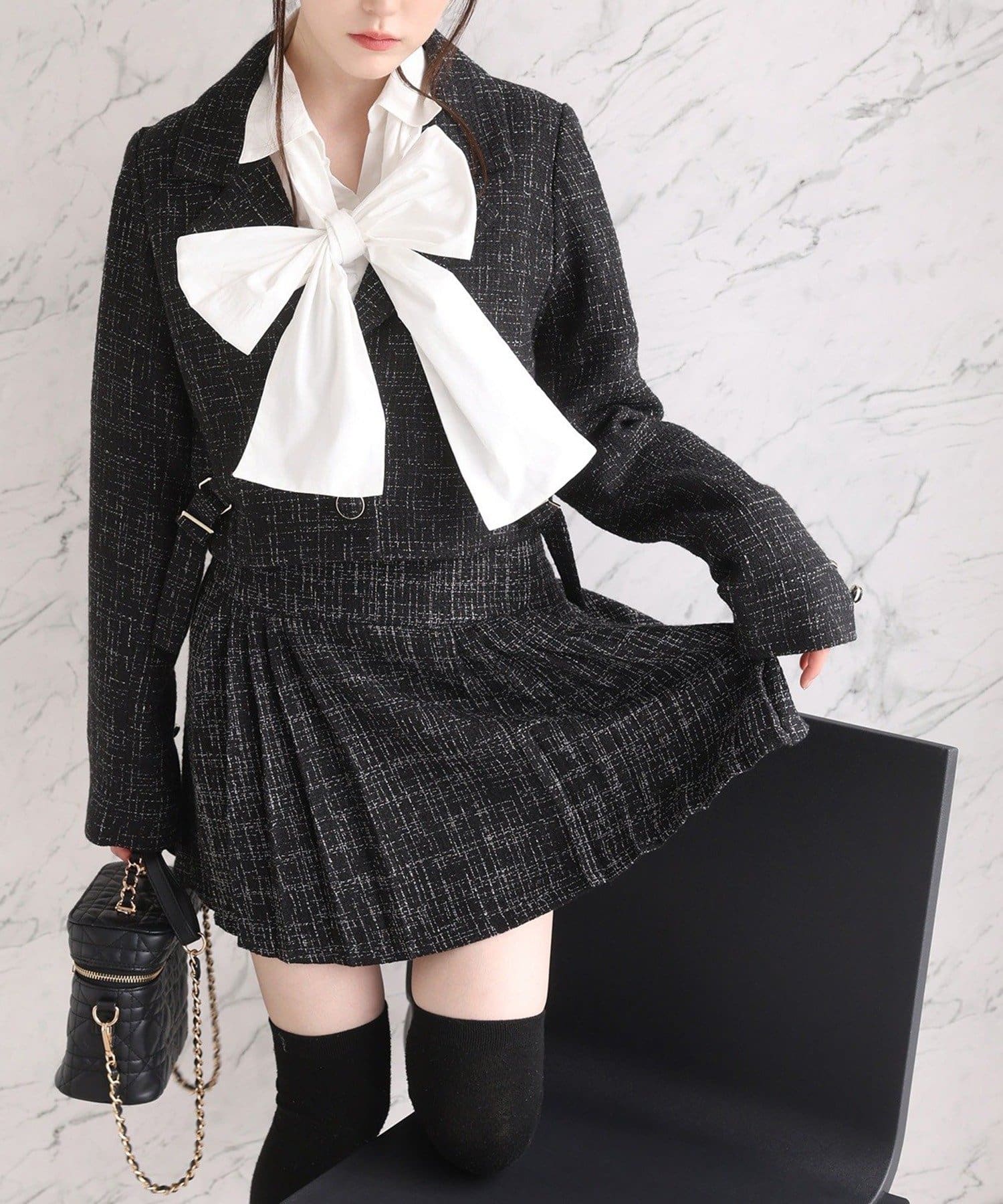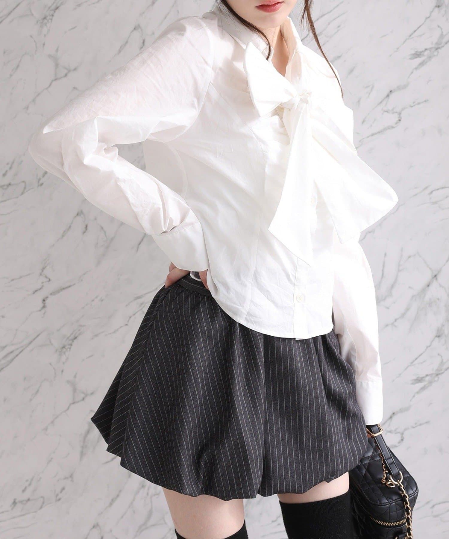 テーラードジャケットに合わせたり、ニットを合わせてリボンのみチラ見せしても可愛く着こなせます。