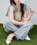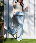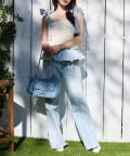デニムパンツと合わせて甘さを抑えた大人カジュアルもおすすめ