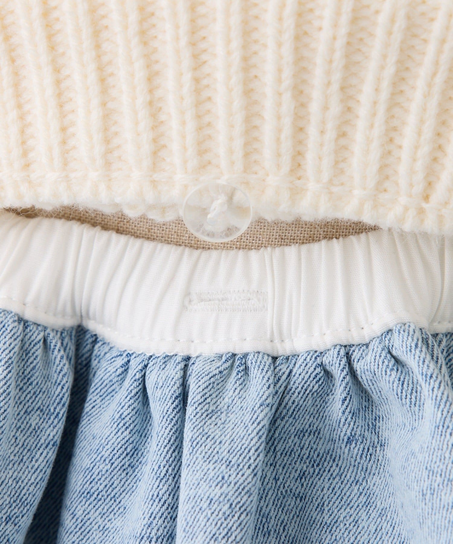 品番 0161040080e 素材 【アイボリー/ベージュ】デニム部分:コットン80% ポリエステル18% ポリウレタン2% ニット部分:アクリル100%