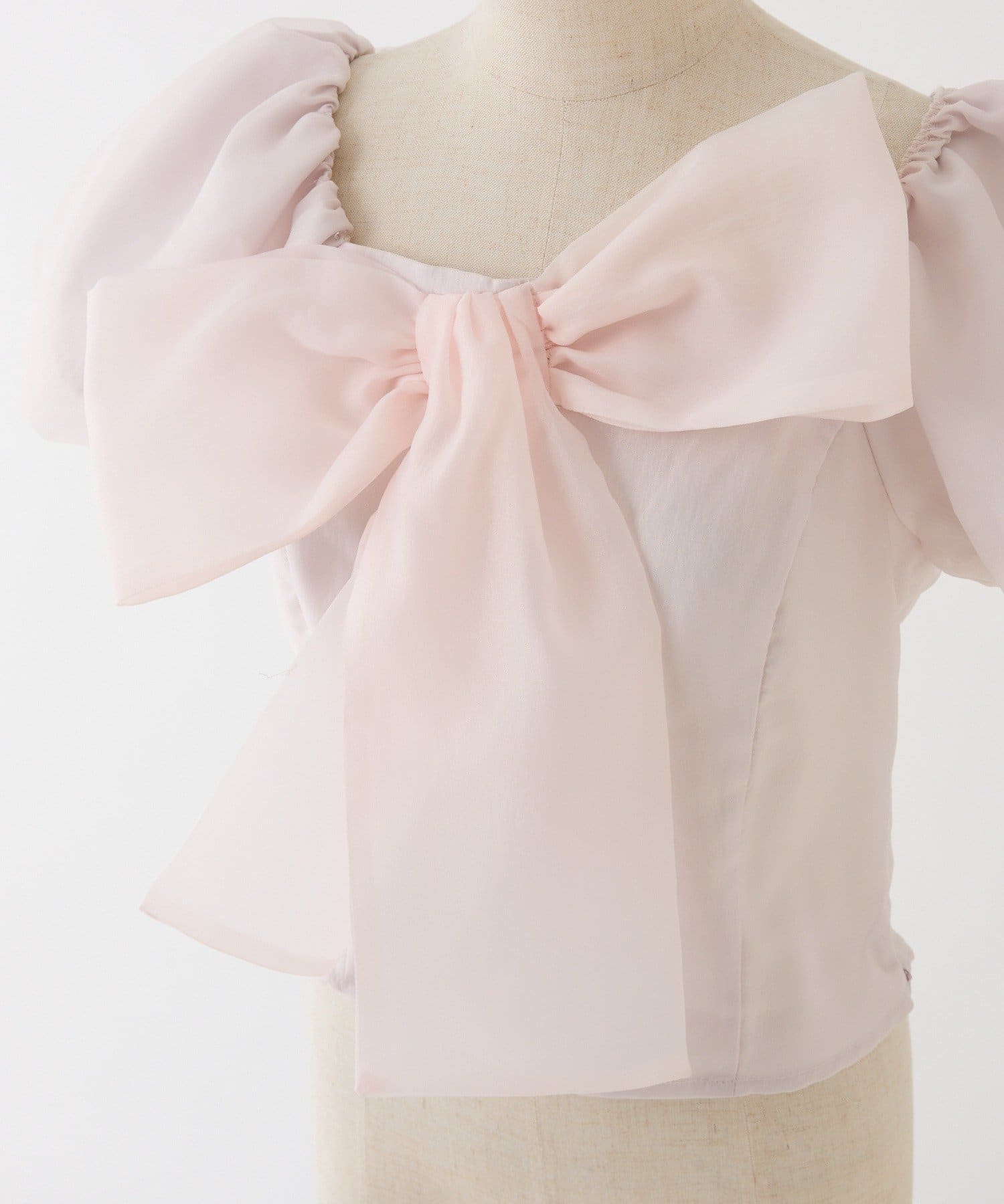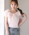 胸元にあしらったリボンデザインがコーデの主役になり、顔まわりをぱっと華やかに見せてくれる1枚です。