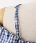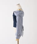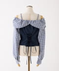 ギンガムチェックが目を惹くガーリーなオフショルトップス。