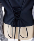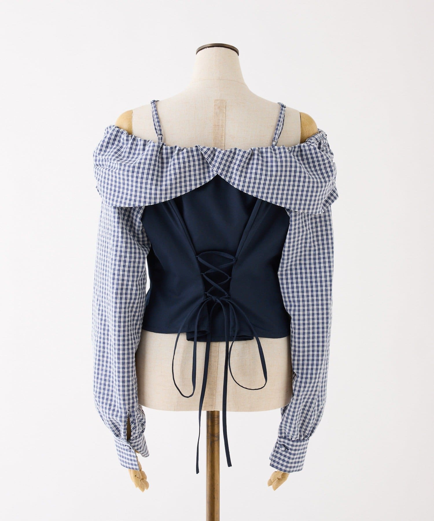 バックレースアップ配色オフショルブラウス