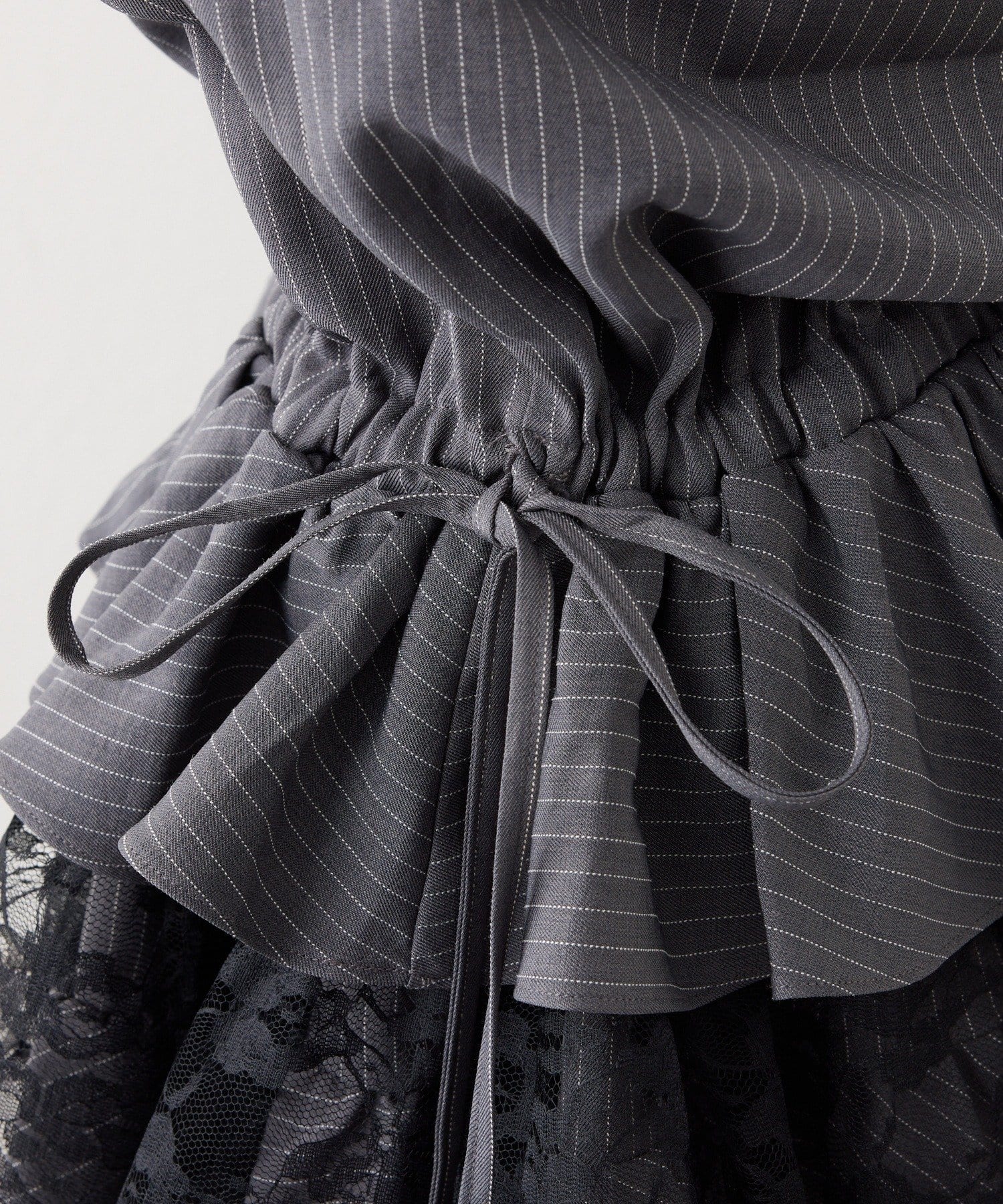 ウエストはサイドのリボンでキュッと絞れるので、メリハリのあるシルエットが叶い、すっきり細見えも◎