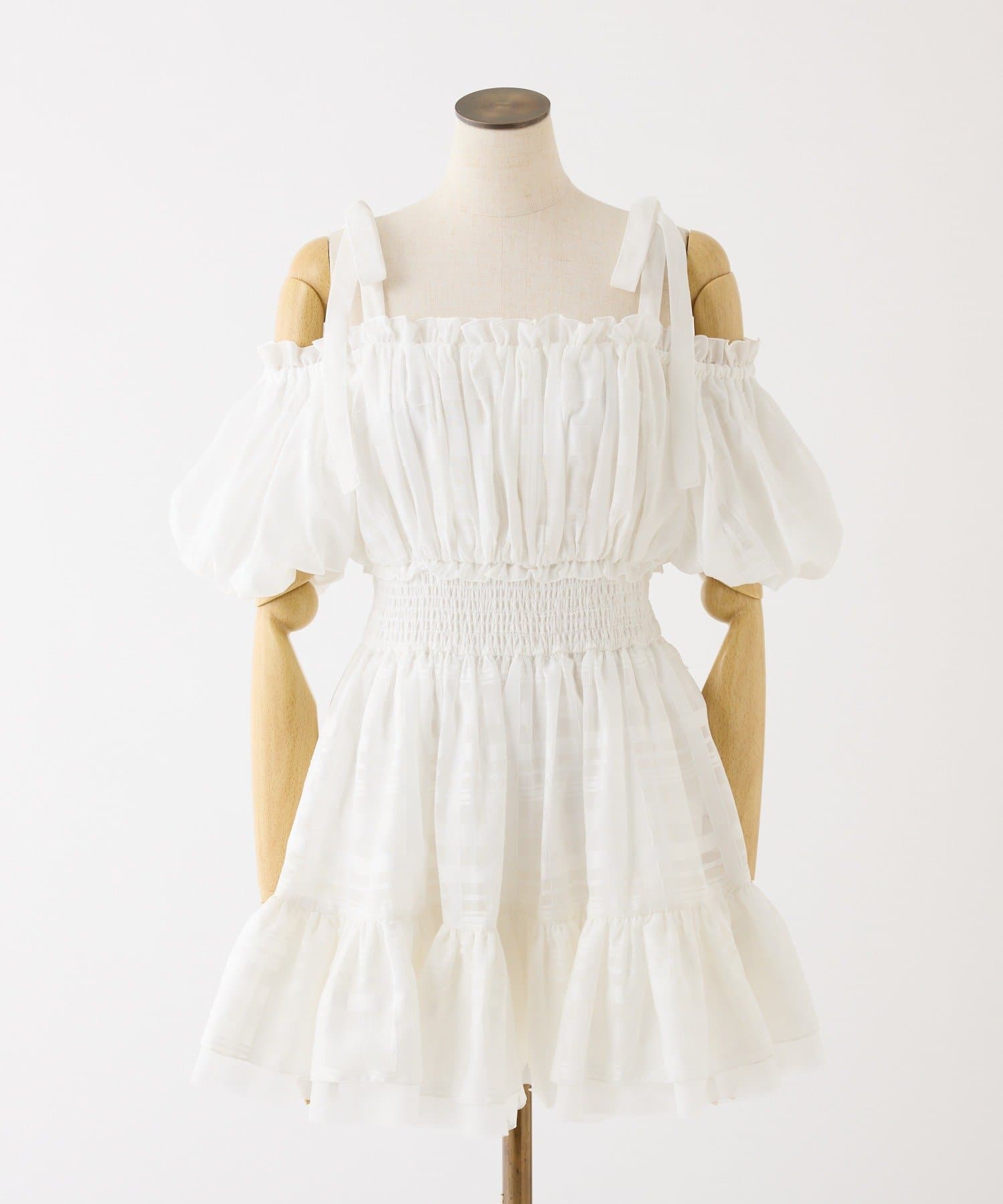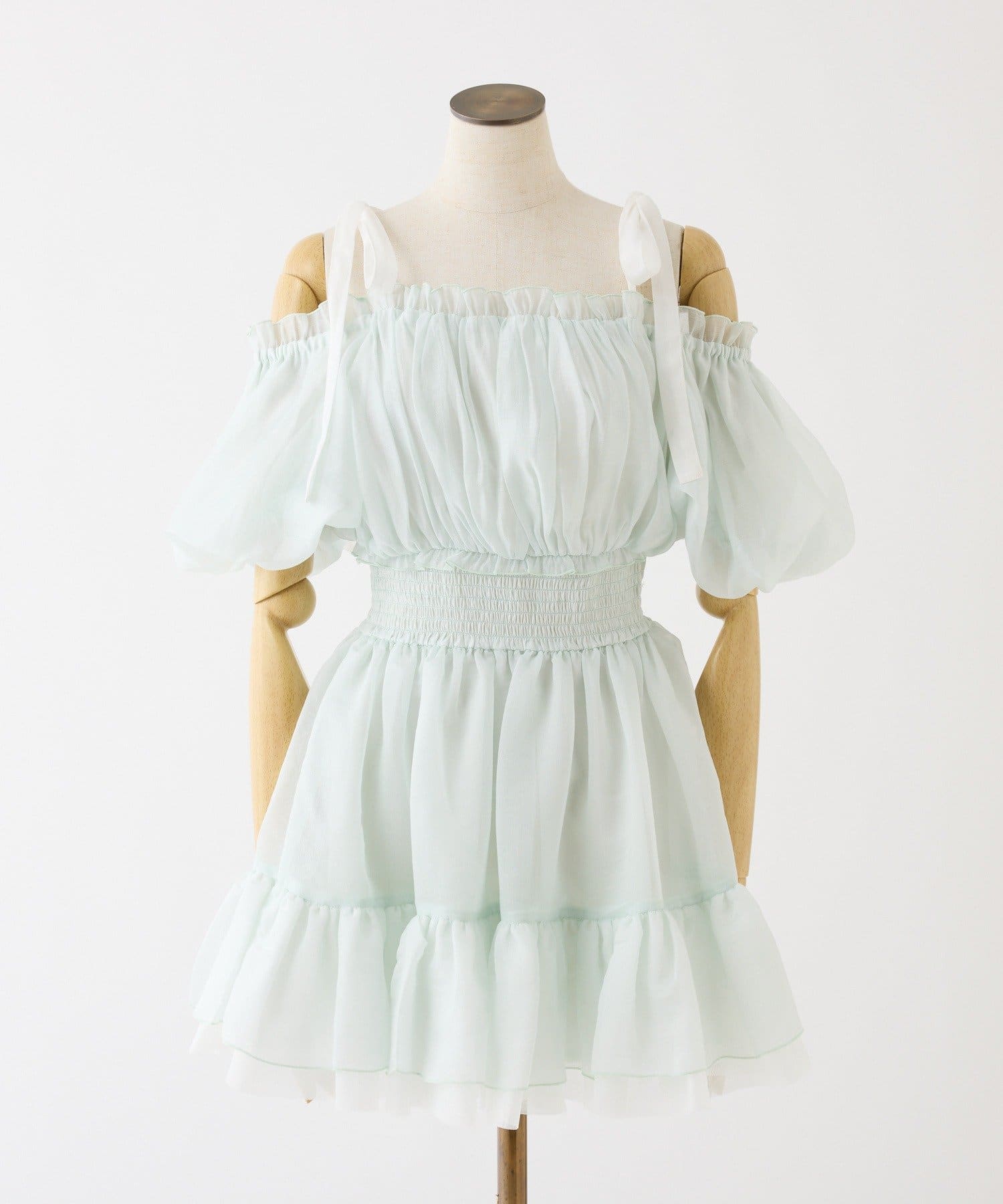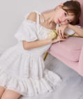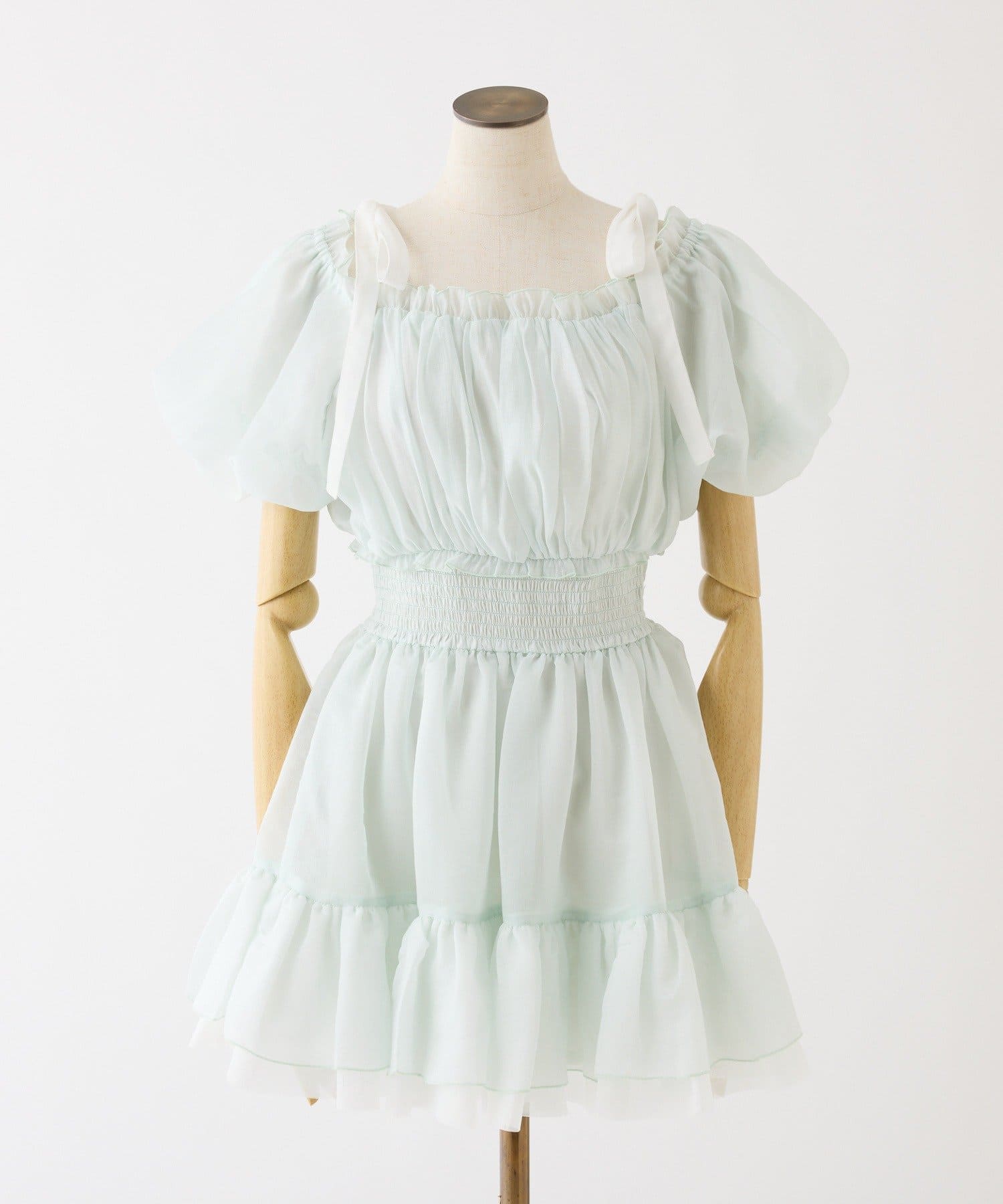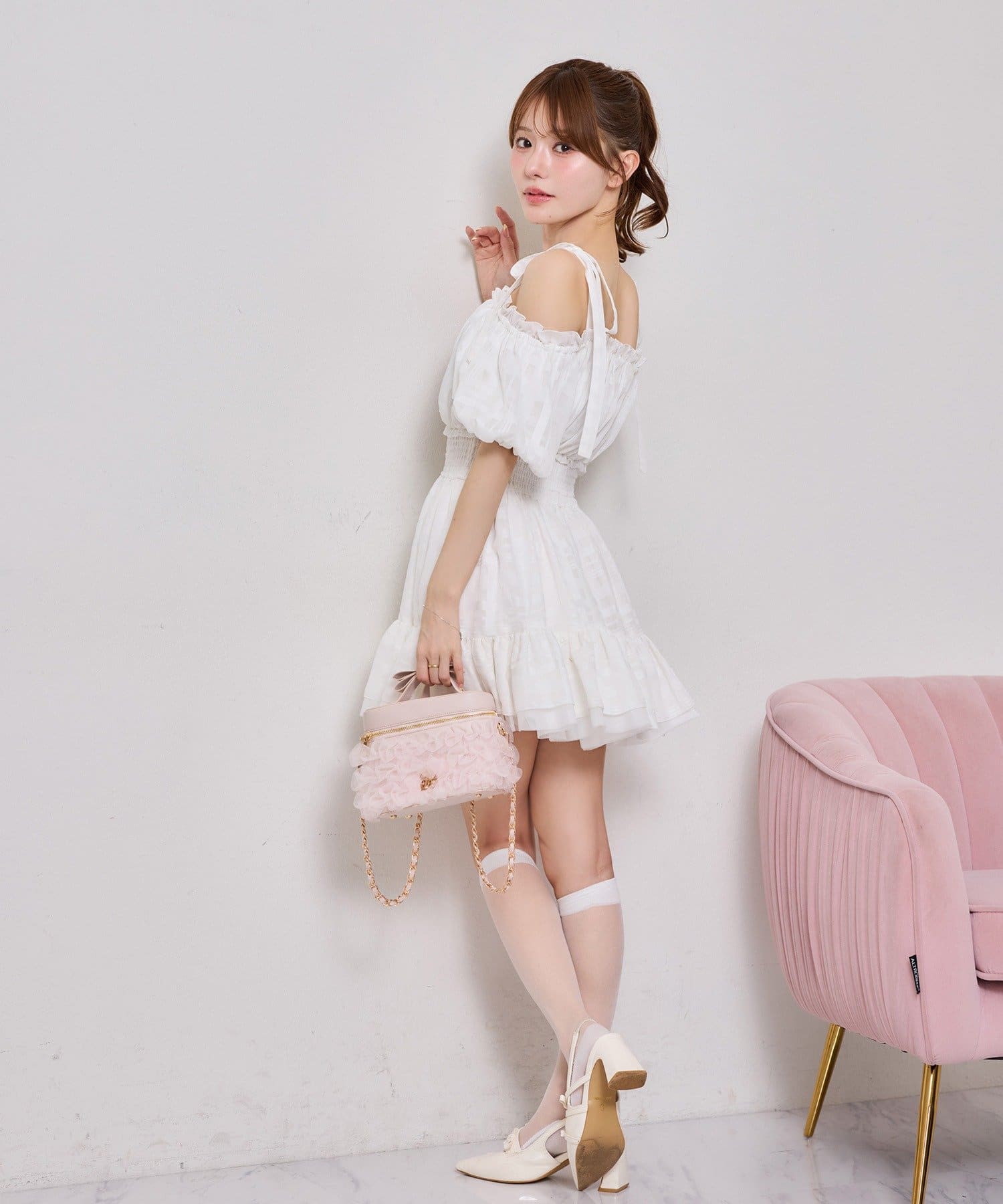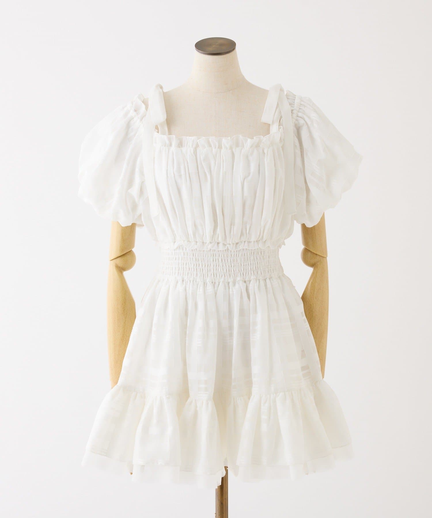 袖はふわっと広がったキャンディースリーブで華奢に見せてくれます。