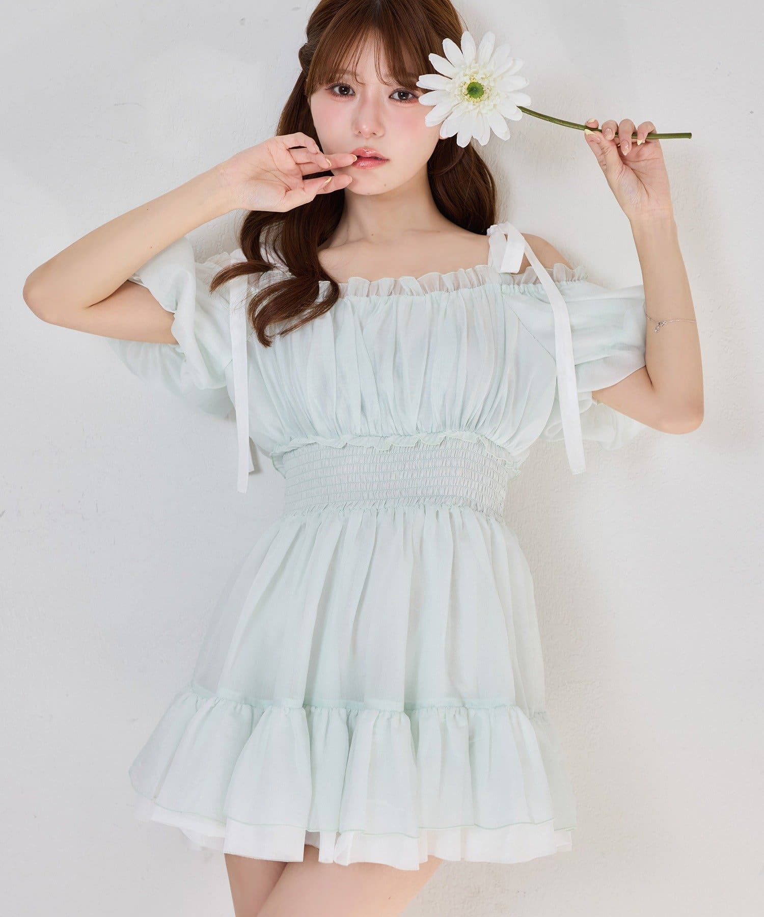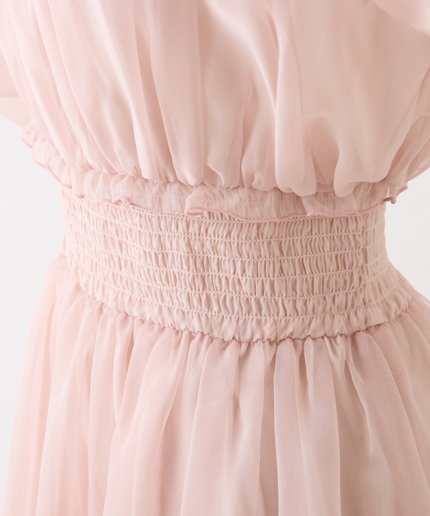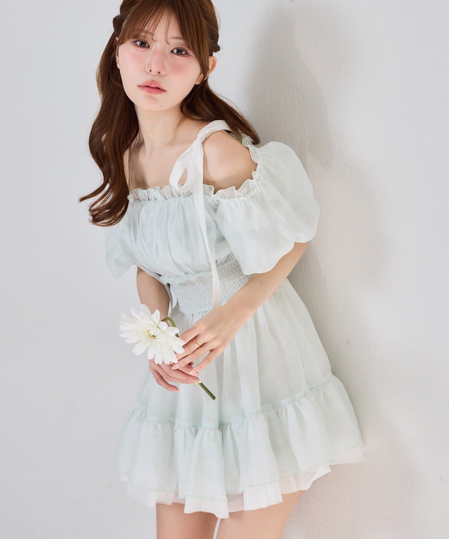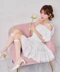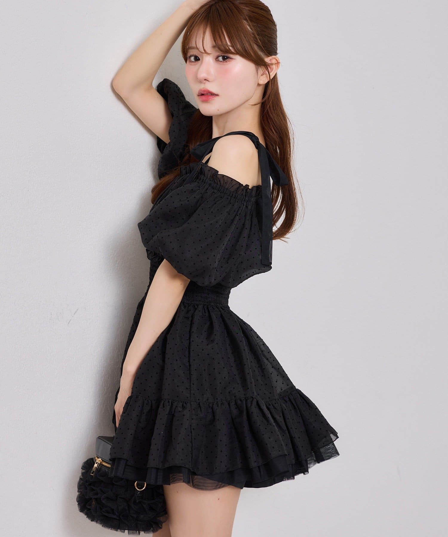 袖はふわっと広がったキャンディースリーブで華奢に見せてくれます。