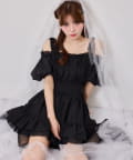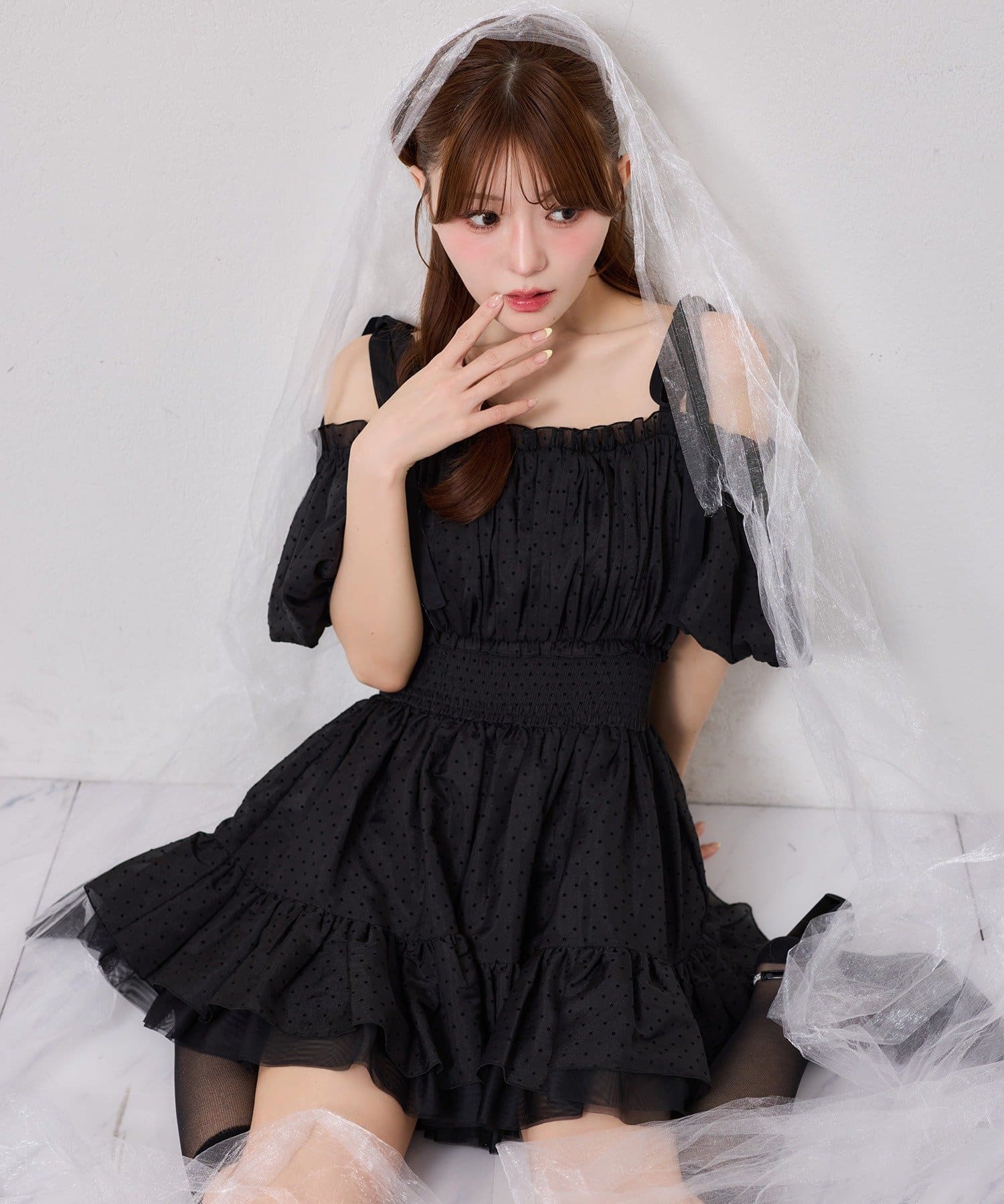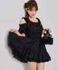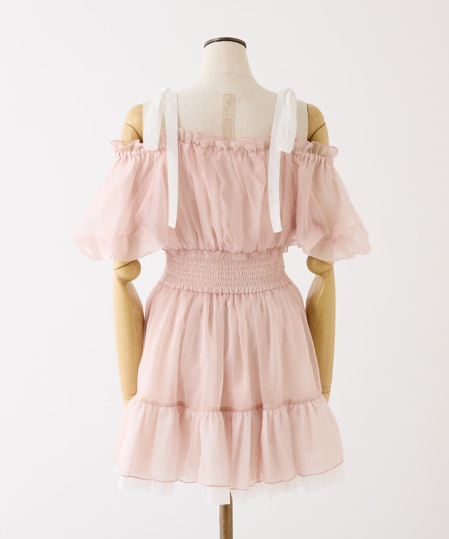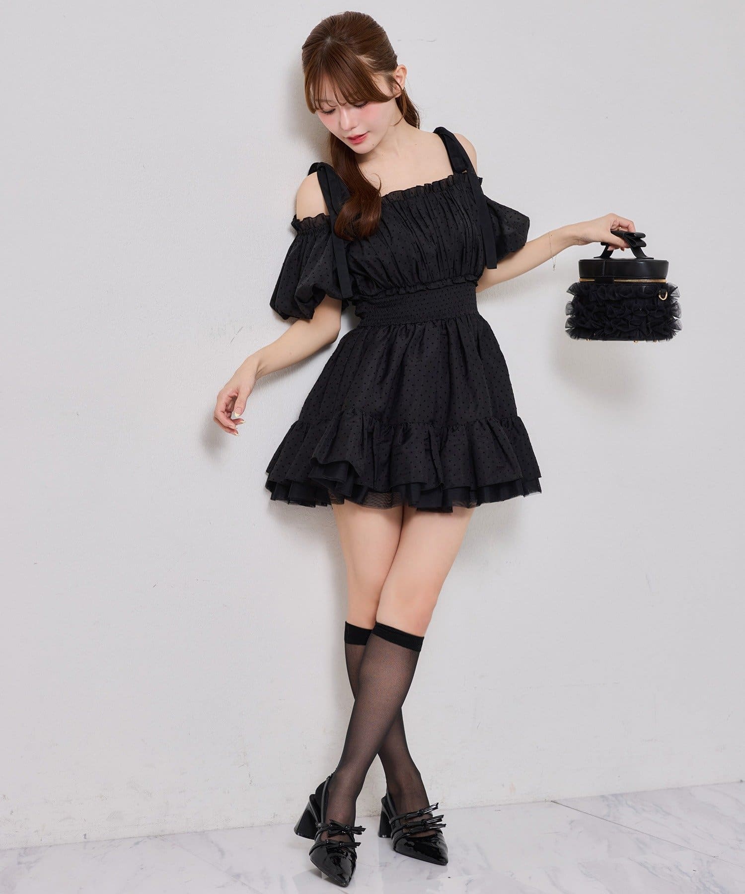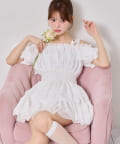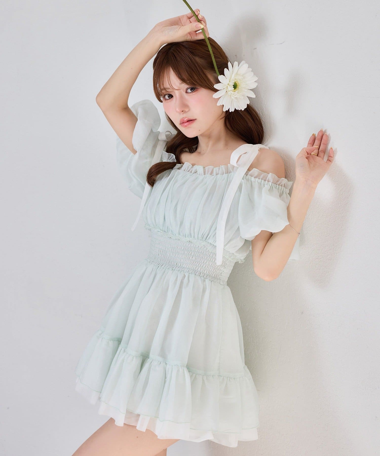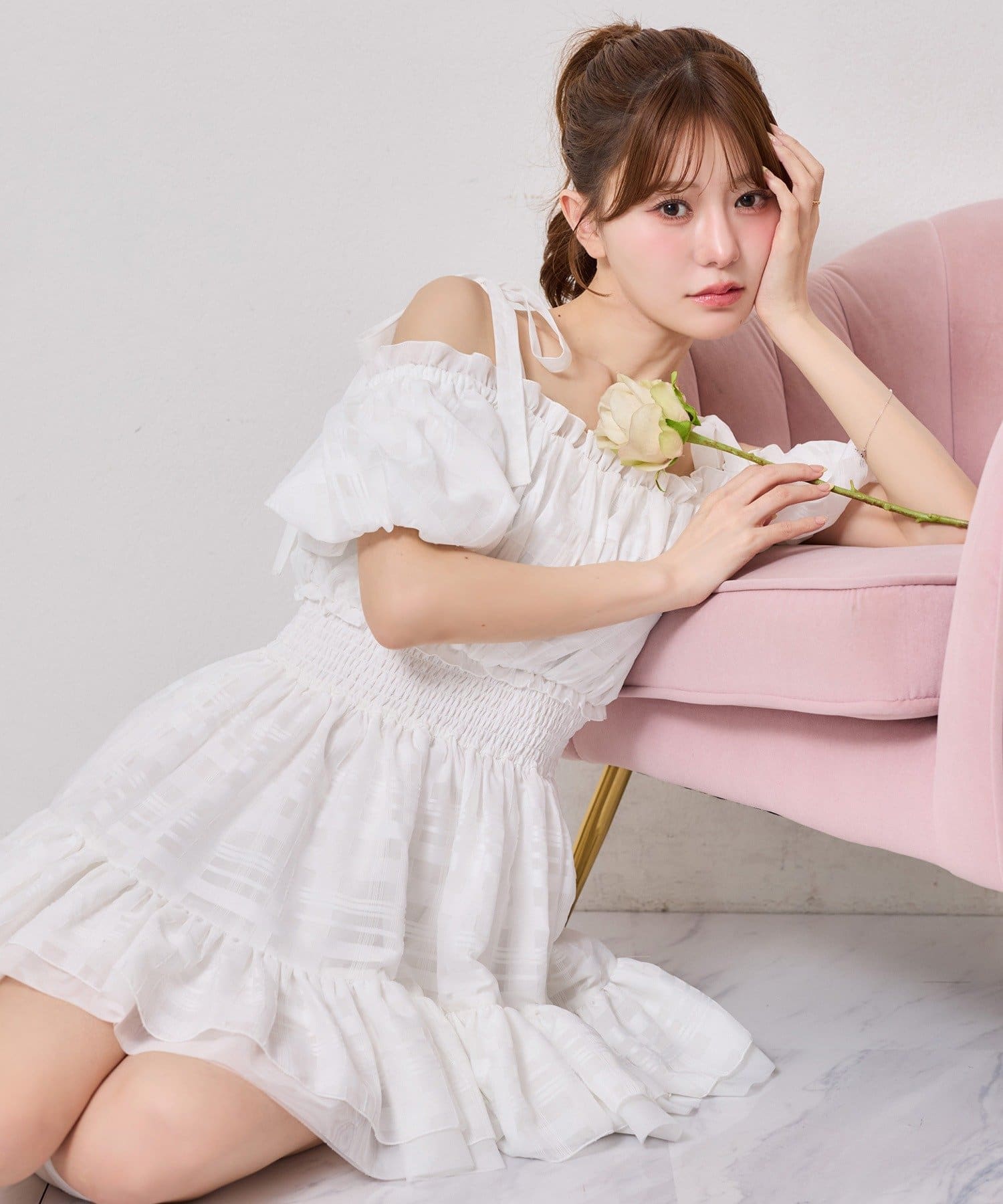 袖はふわっと広がったキャンディースリーブで華奢に見せてくれます。