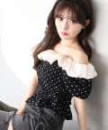 ふんわりとしたパフスリーブが華奢見えを叶え、フェミニンな印象に。