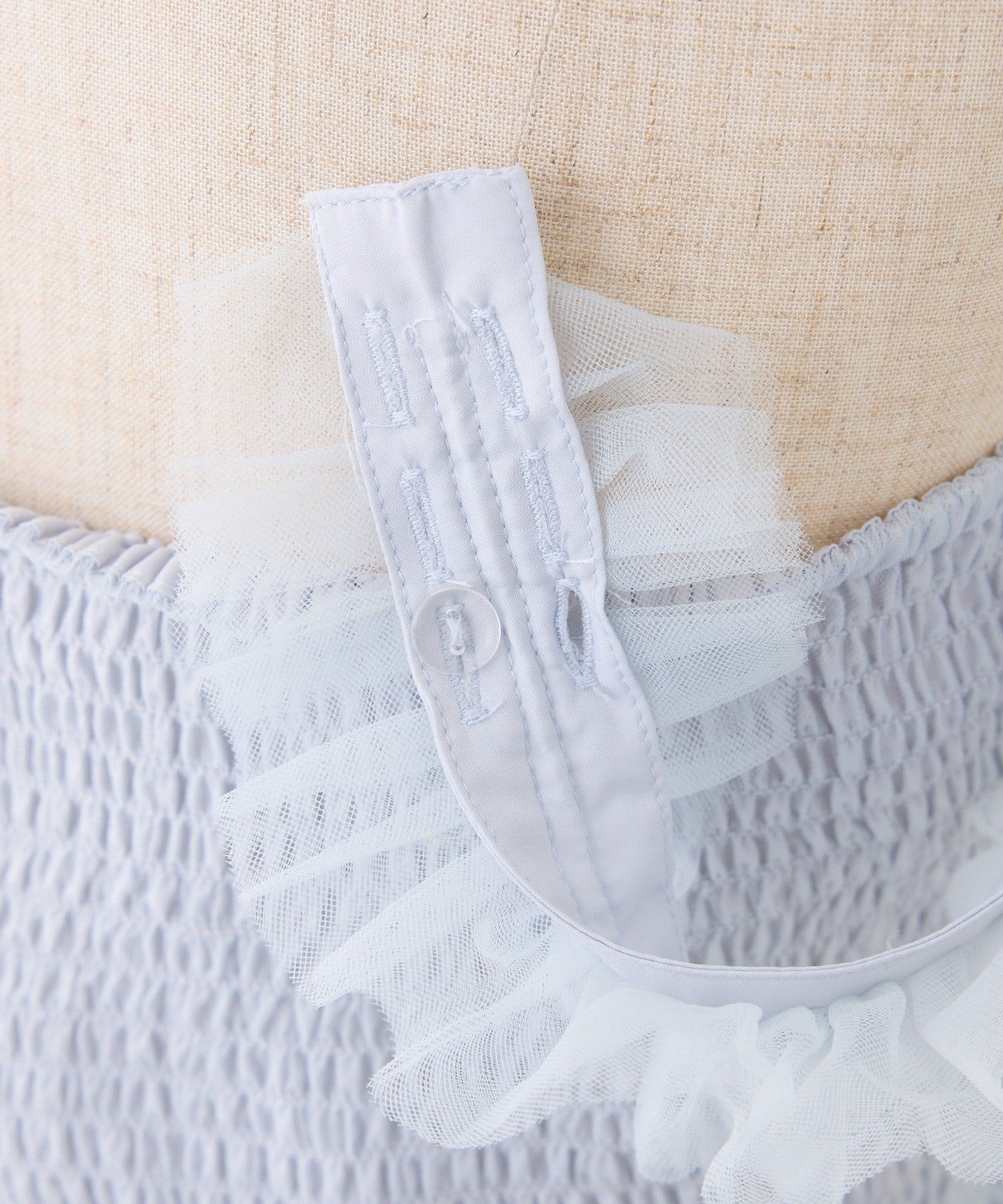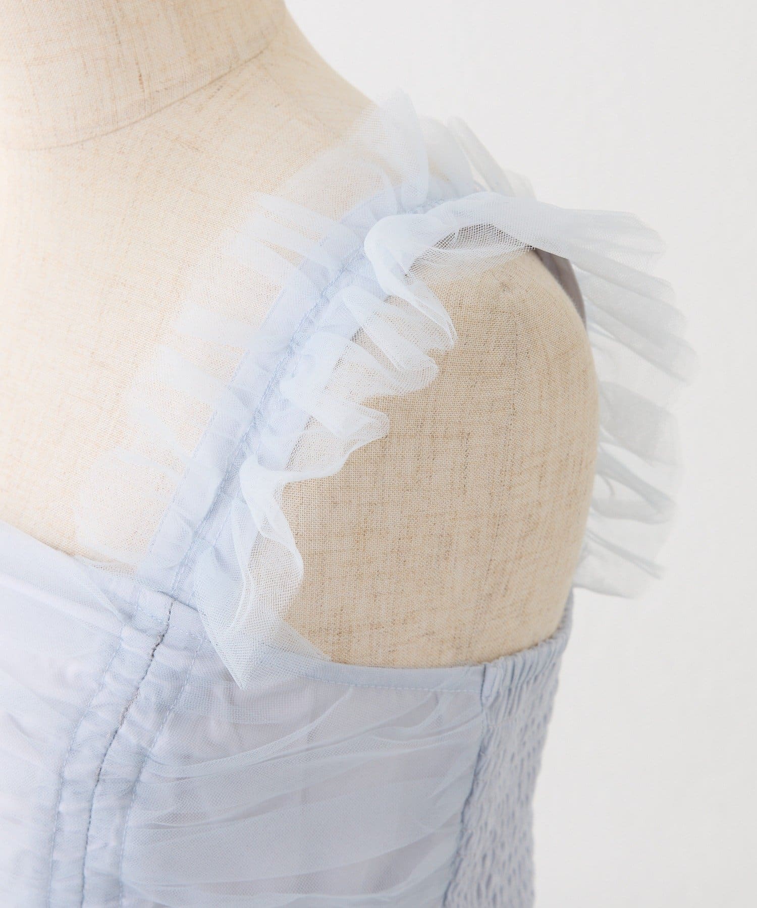 ふんわりとしたチュールにドロストデザインをプラスし、立体感のあるシルエットに仕上げました。