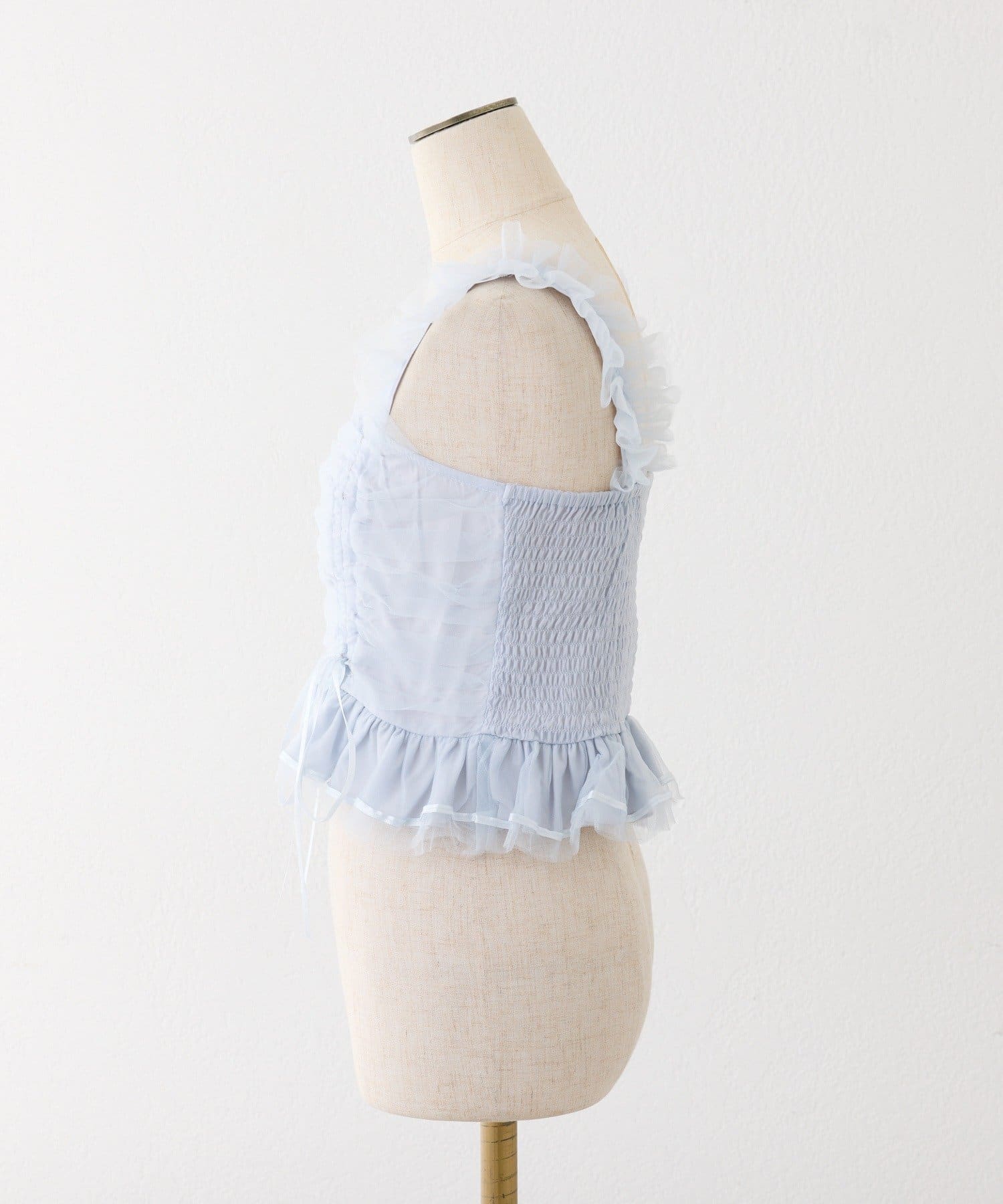 チュール素材が華やかなドロストビスチェ。