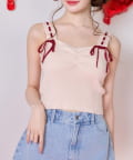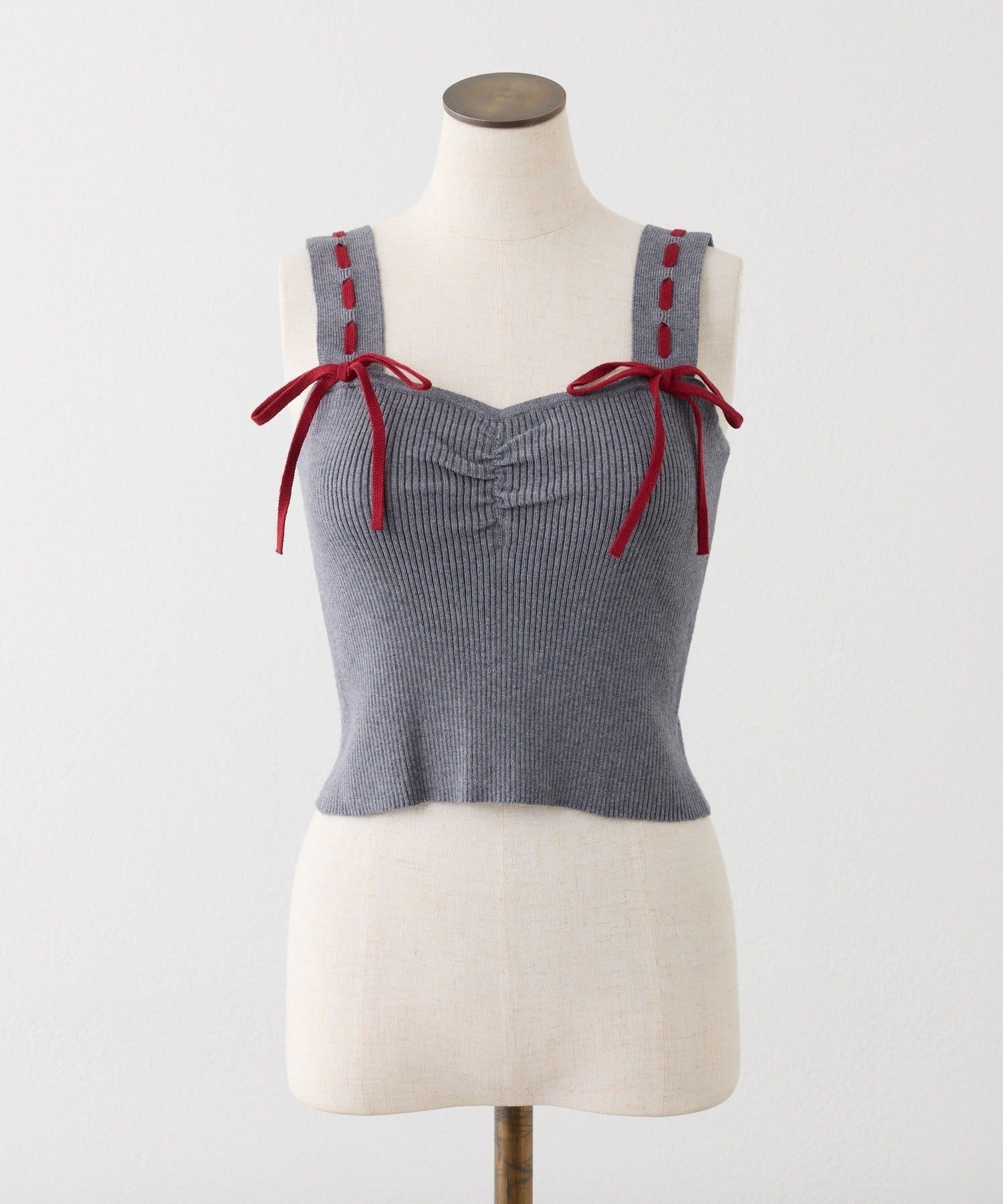 ビスチェは配色リボンがポイントで、シンプルながらもさりげなく女の子らしさをプラス。