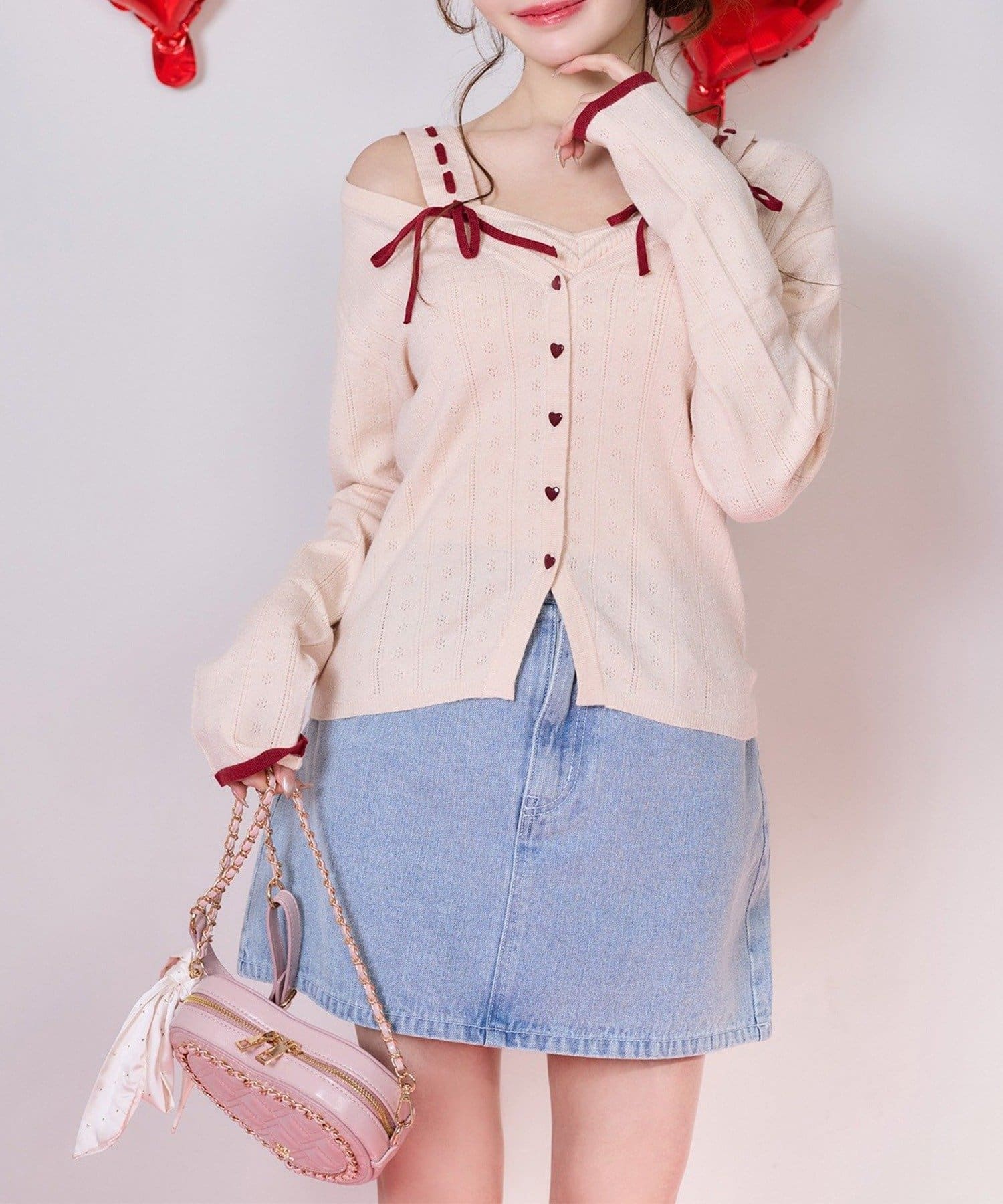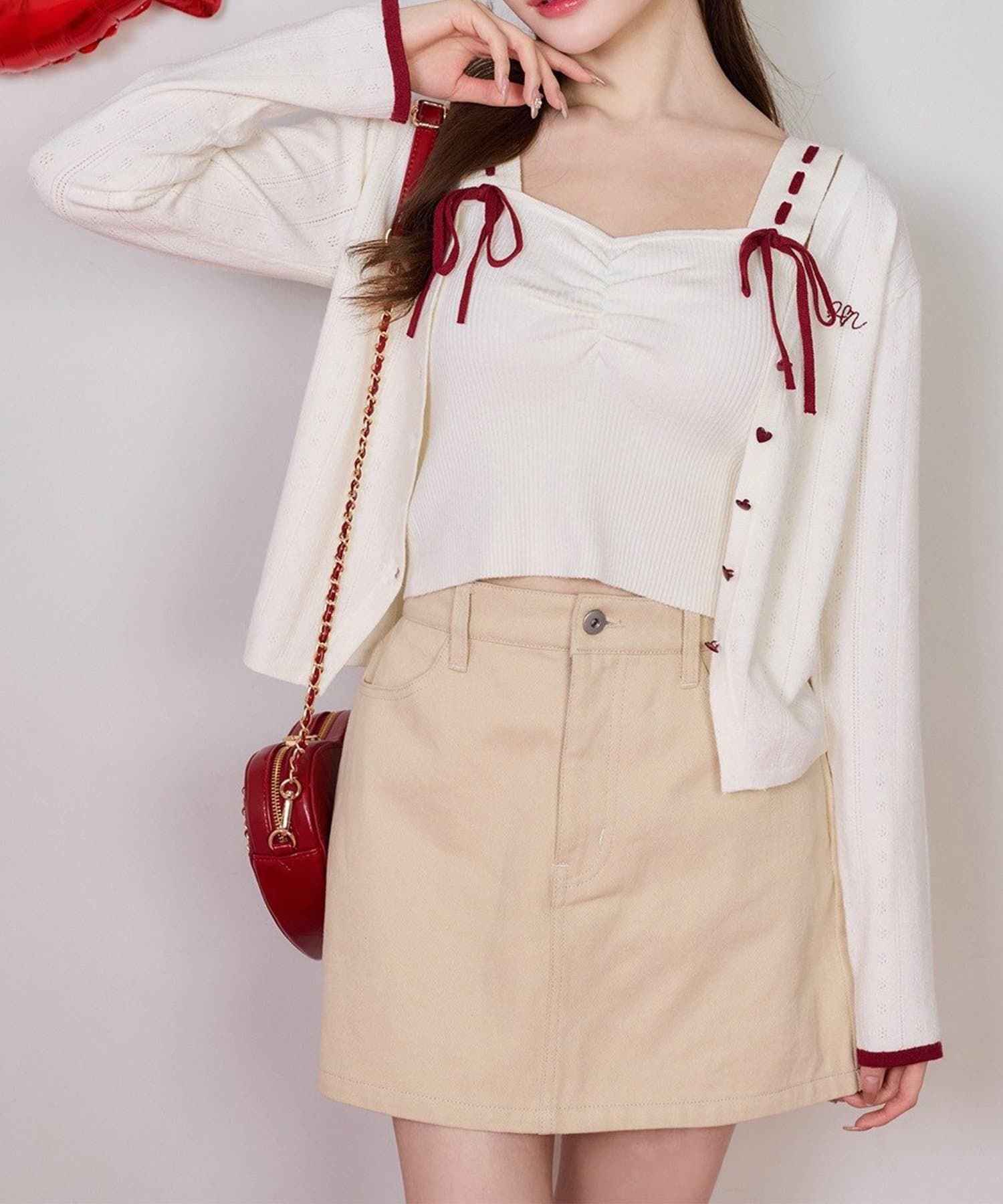 NICE CLAUP / OLIVE des OLIVE OUTLET(ナイスクラップ  / オリーブ デ オリーブ アウトレット) 【one after another】ハートボタンビスチェセットカーディガン