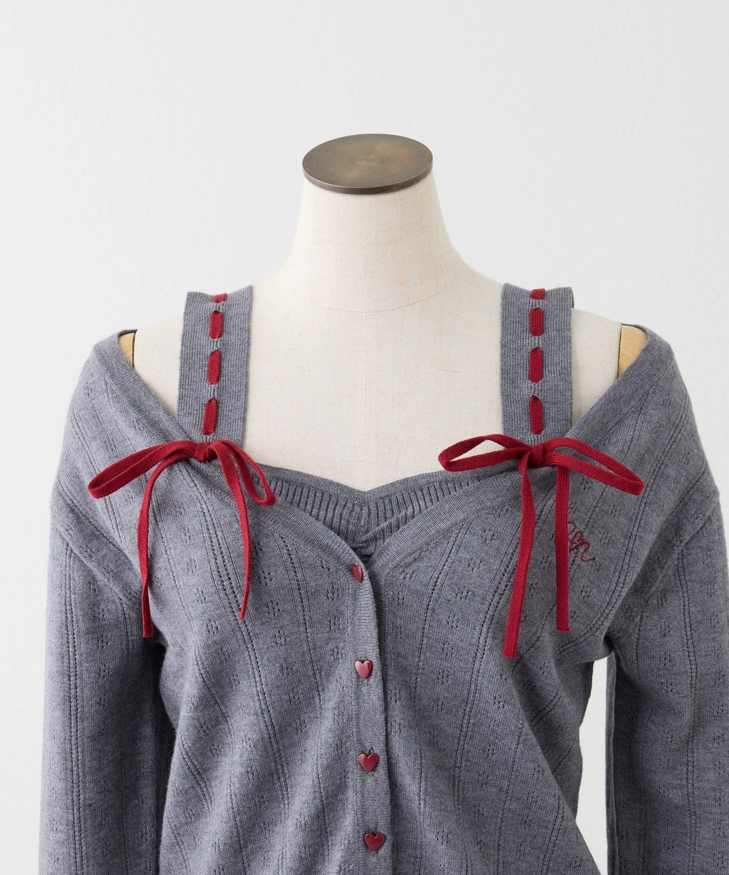 • NICE CLAUP / OLIVE des OLIVE OUTLET(ナイスクラップ  / オリーブ デ オリーブ アウトレット) 【one after another】ハートボタンビスチェセットカーディガン