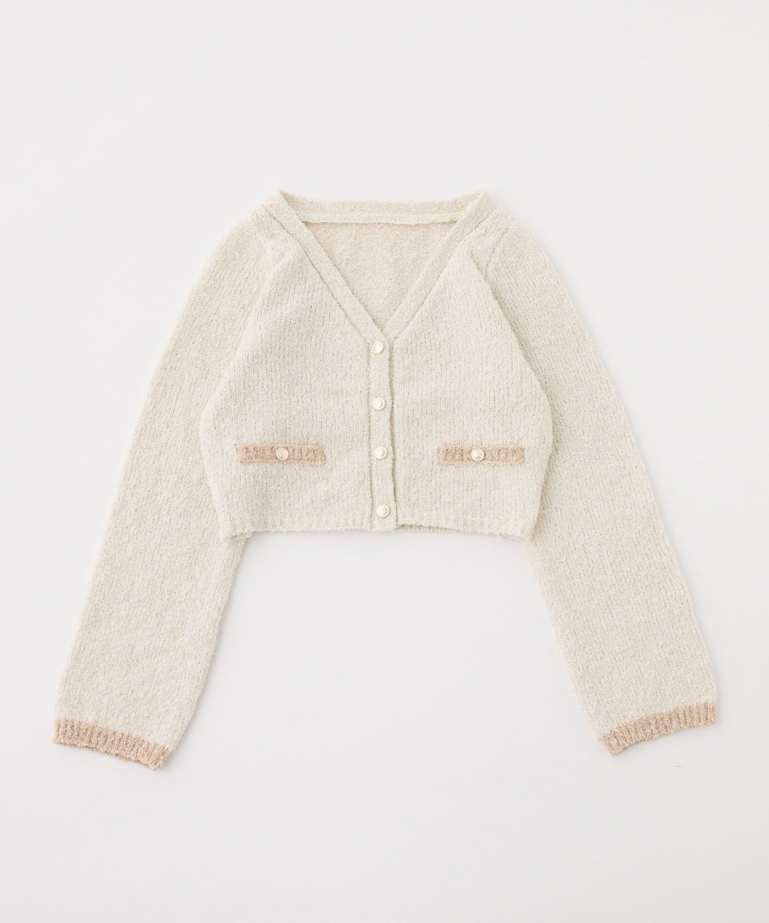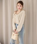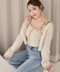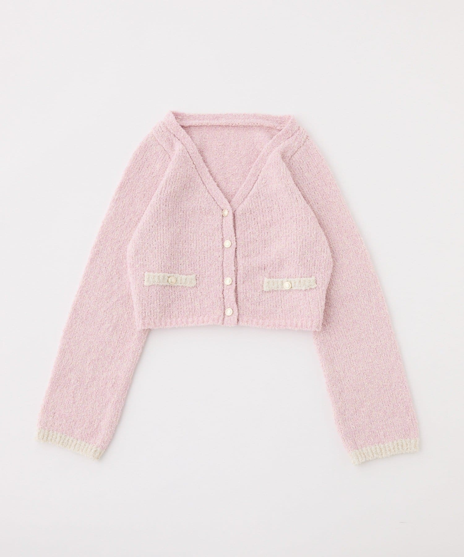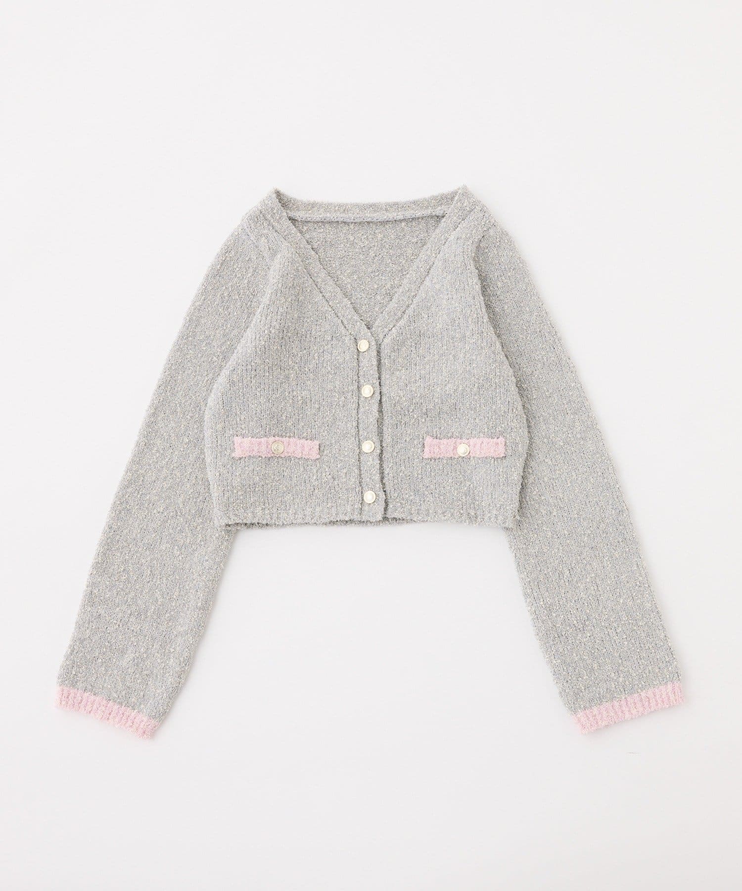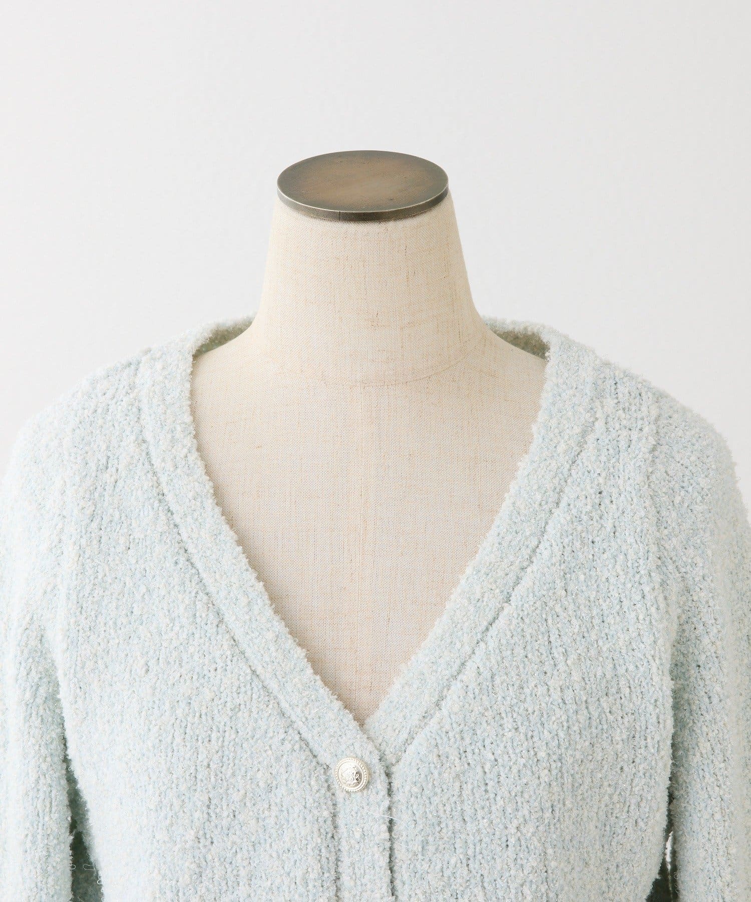 ラメ糸を使用しているため、キラキラとした華やかさが魅力のカーディガン。
