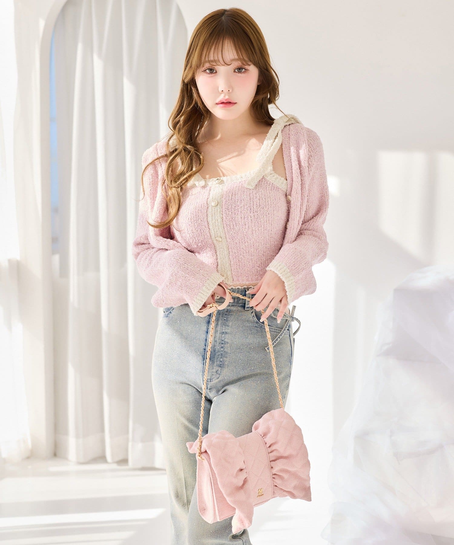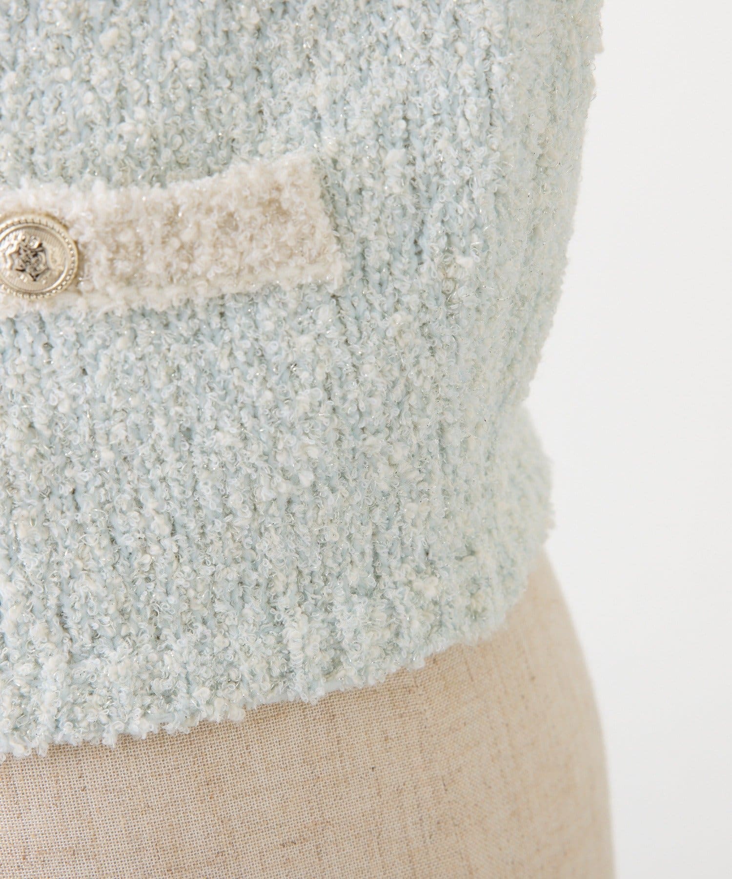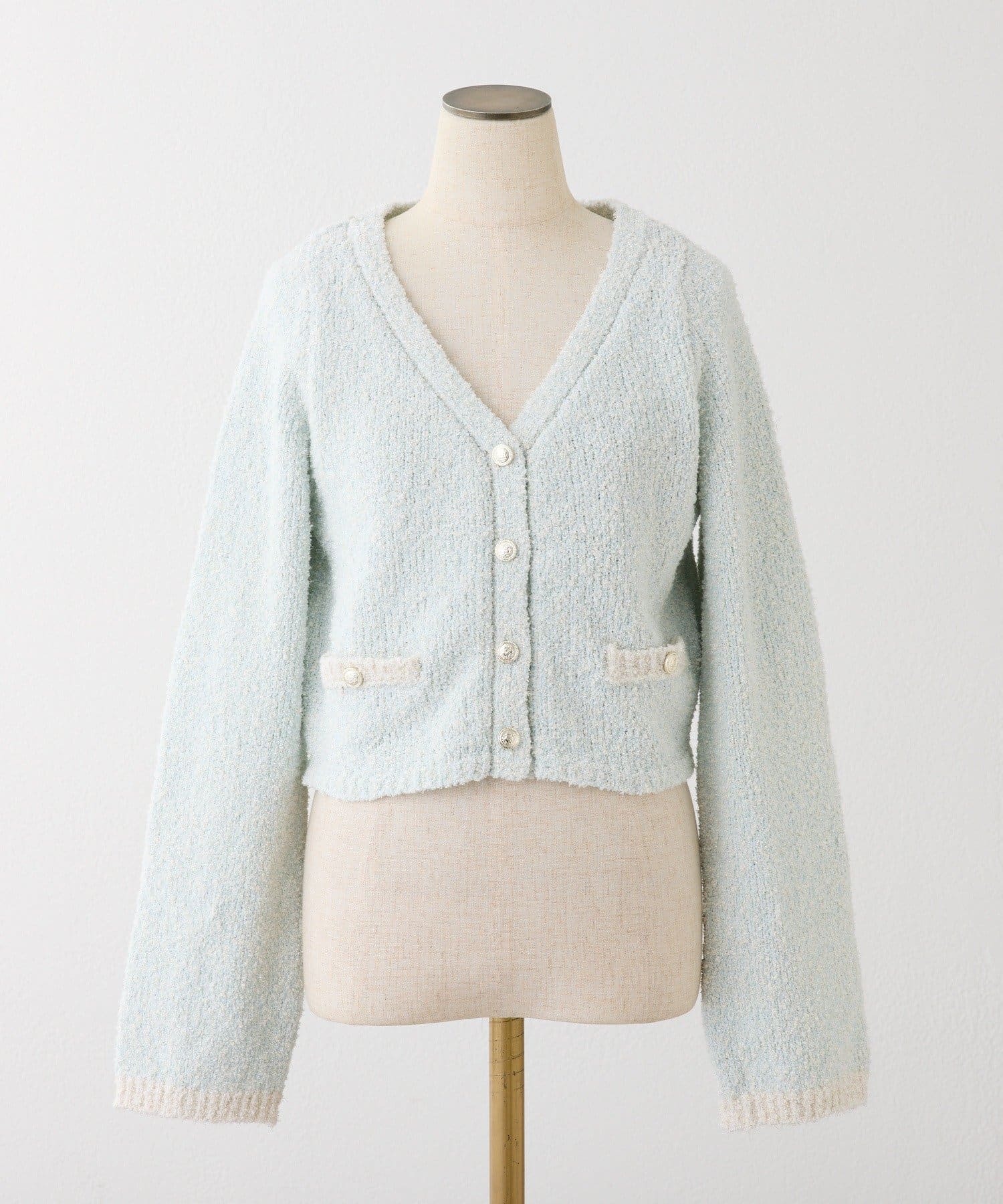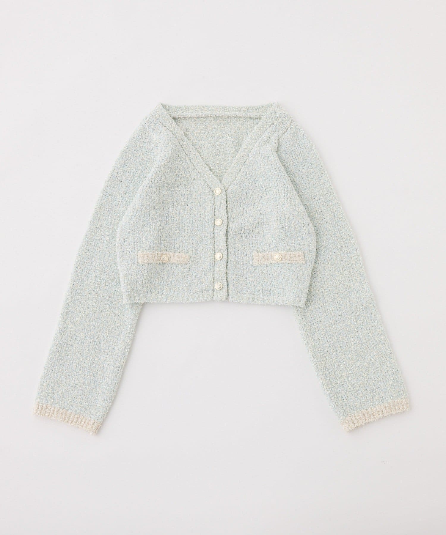 ラメ糸を使用しているため、キラキラとした華やかさが魅力のカーディガン。