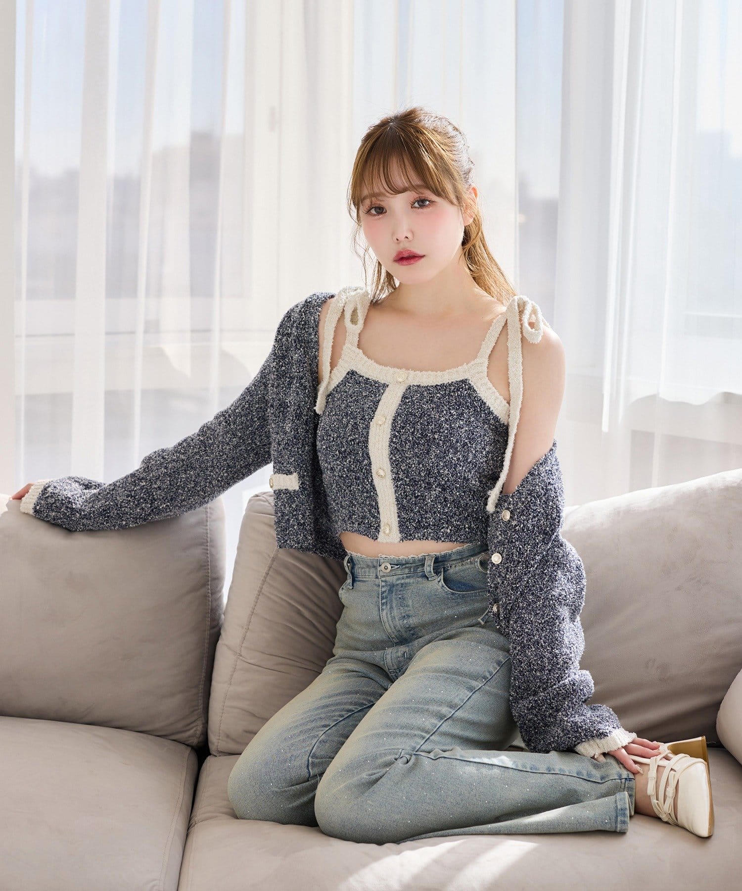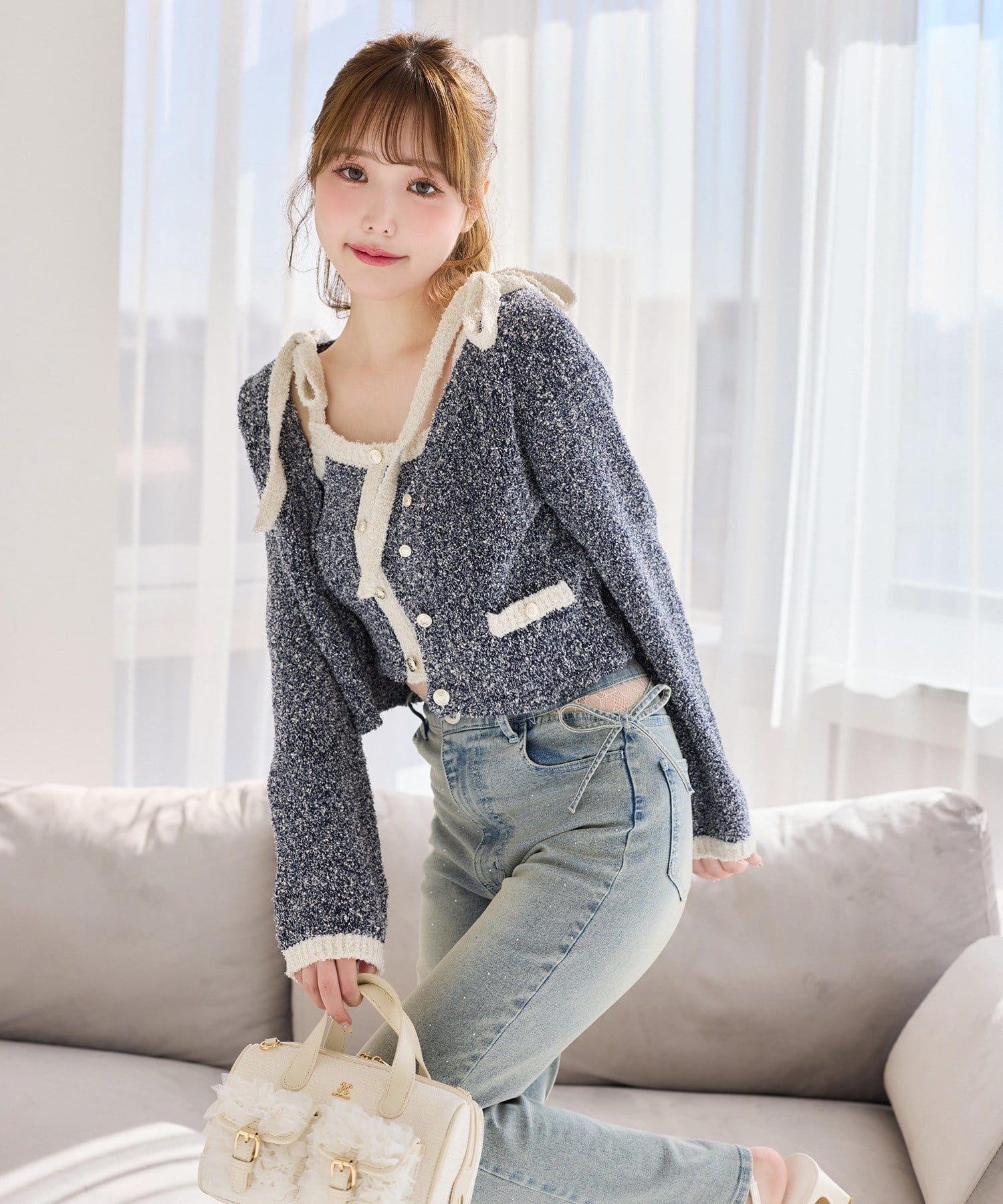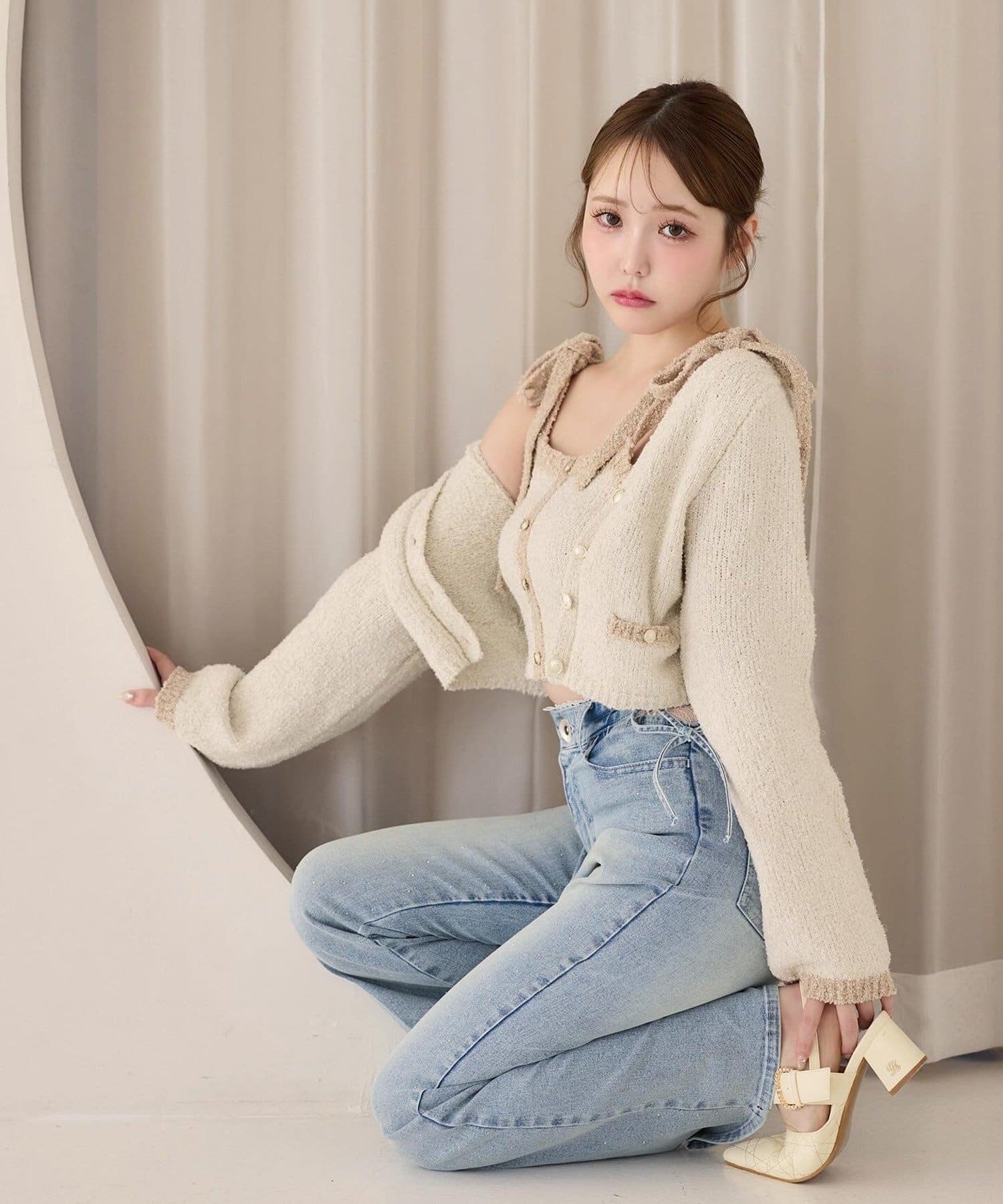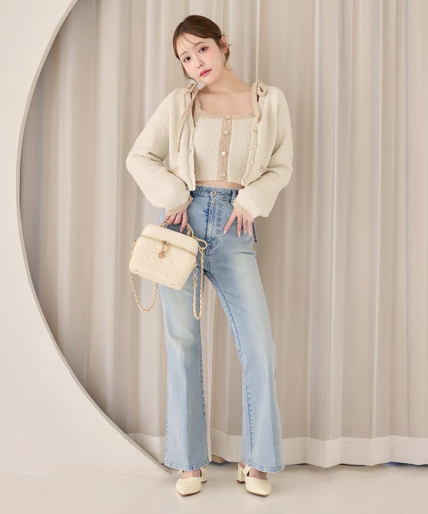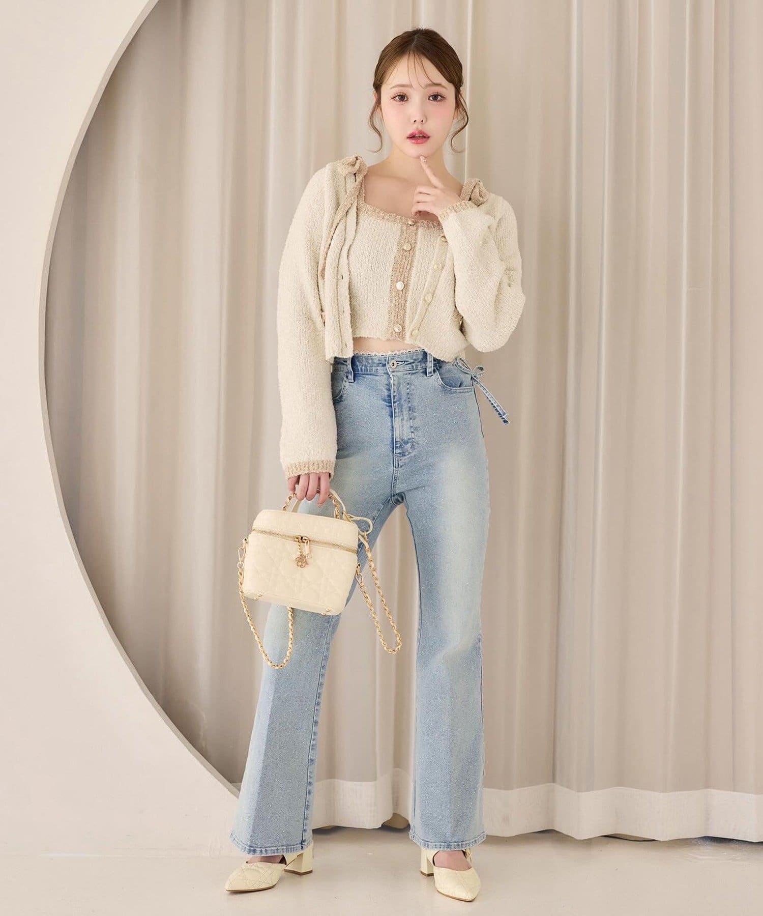 ハイウエストデニムと合わせて、韓国風の大人コーデに。
