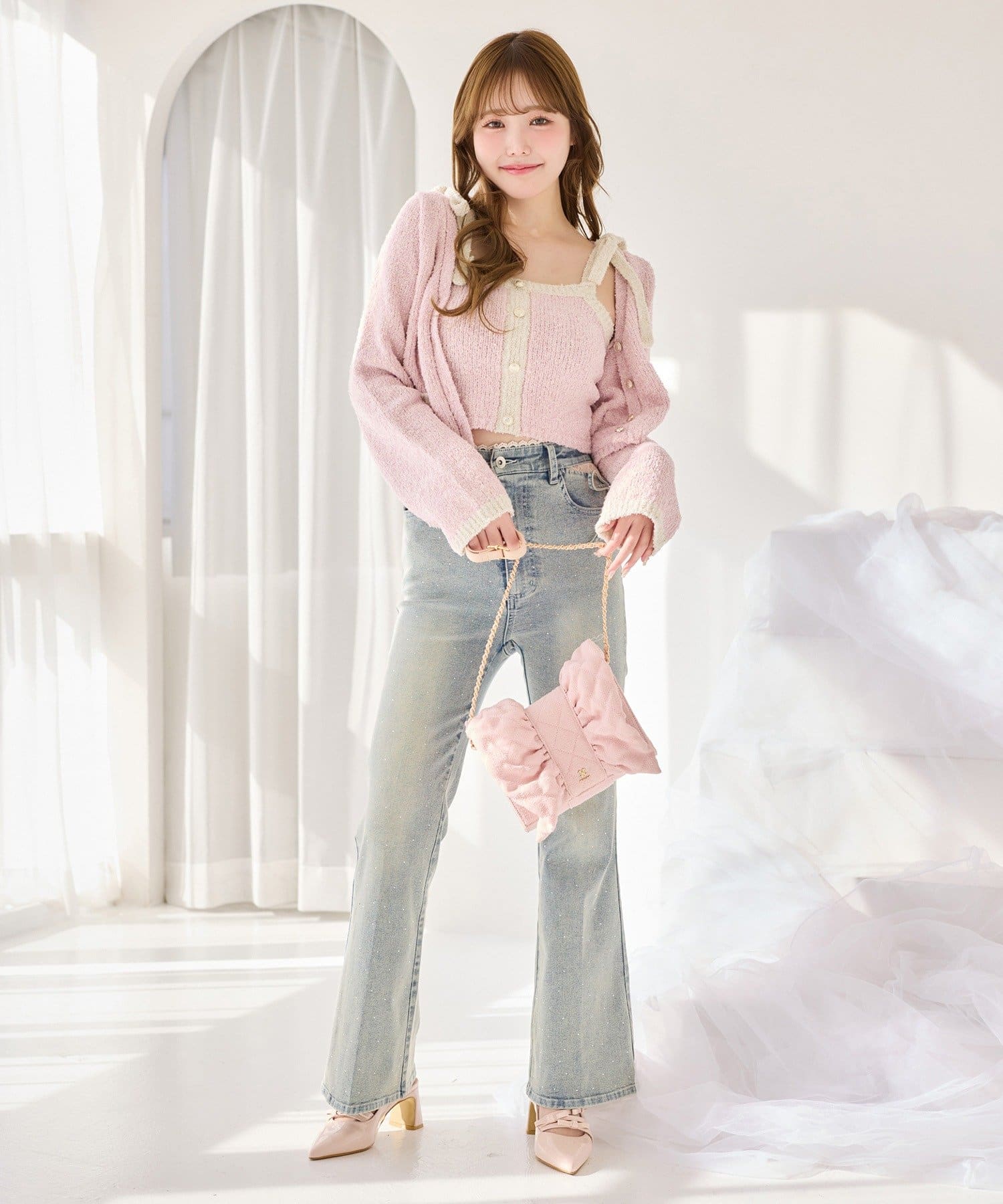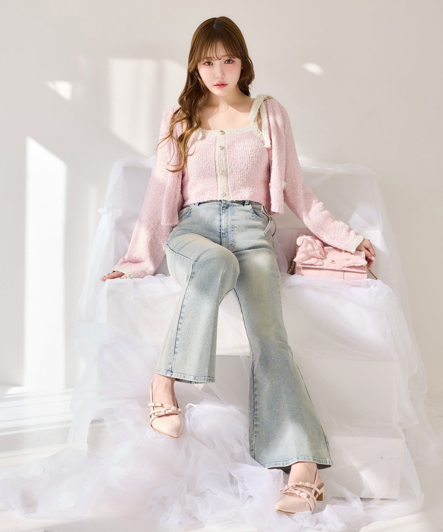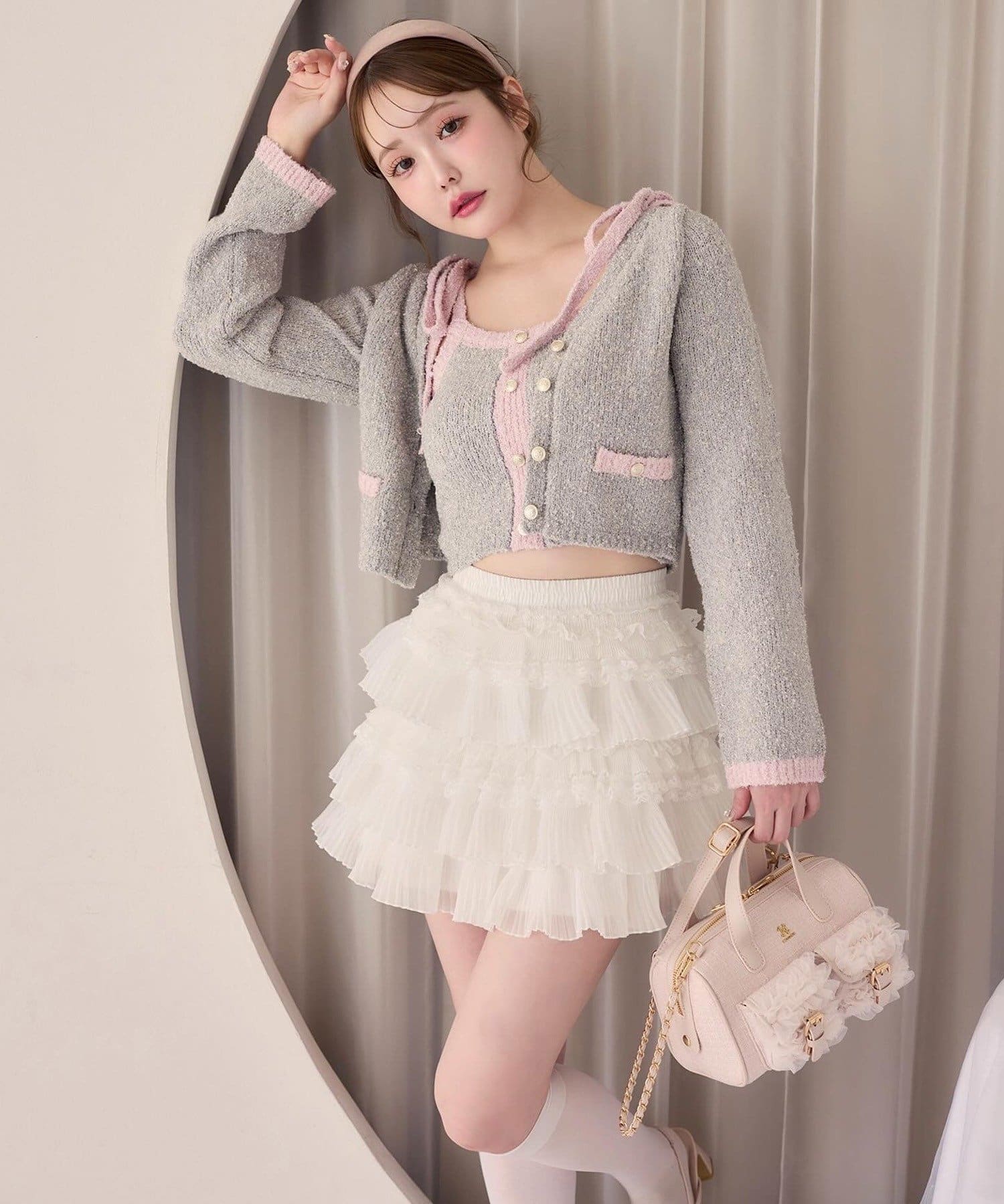 ミニスカートと合わせて、ガーリーな雰囲気に◎