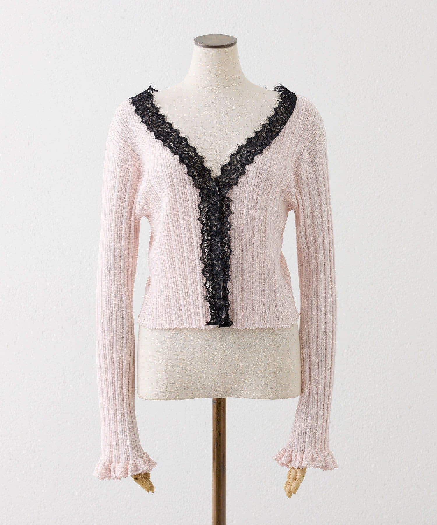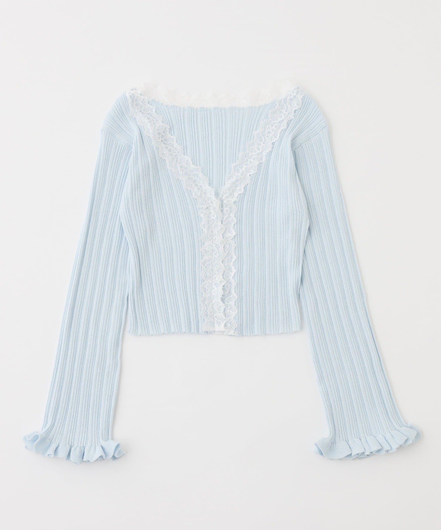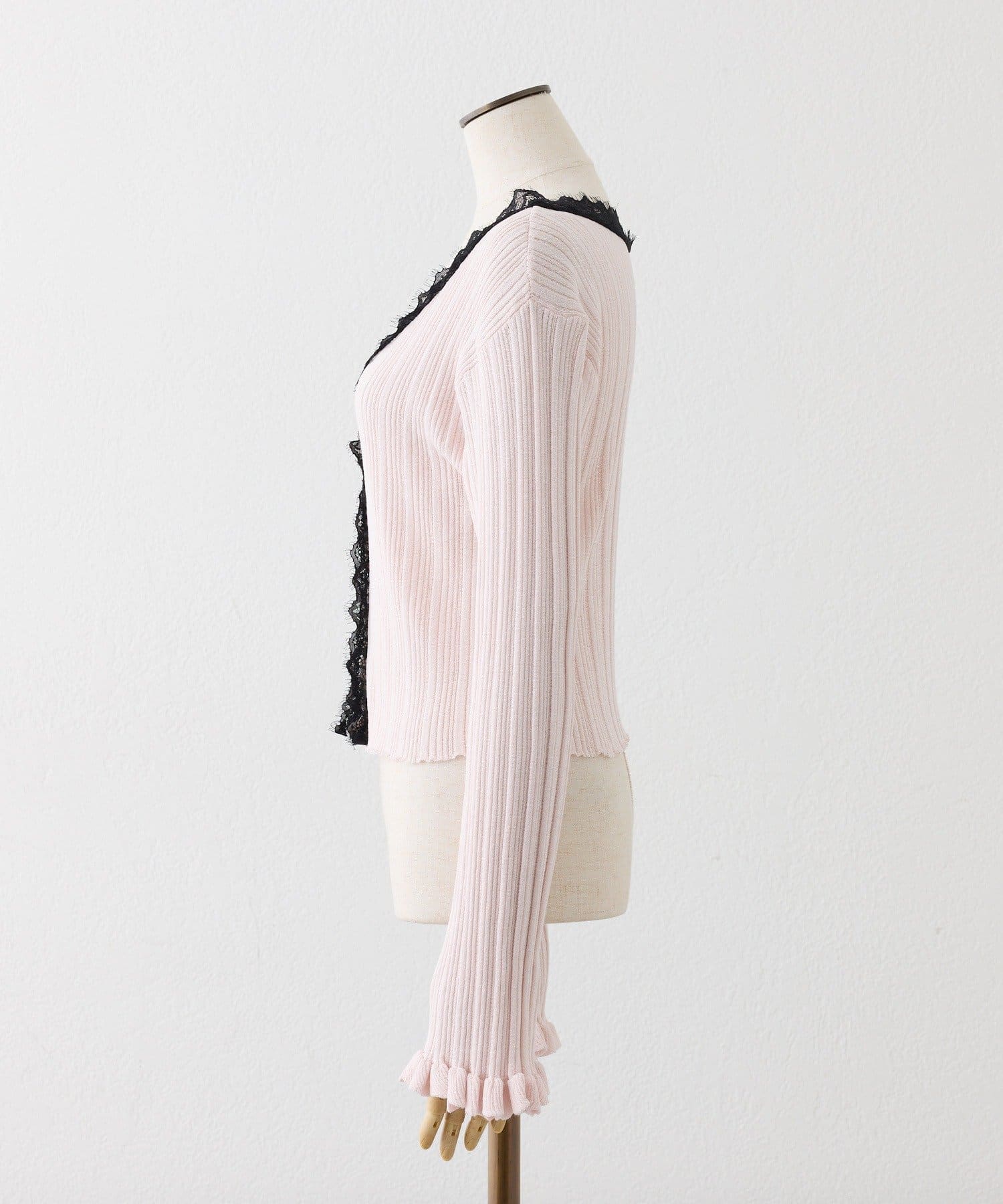 レース付きリブカーディガン