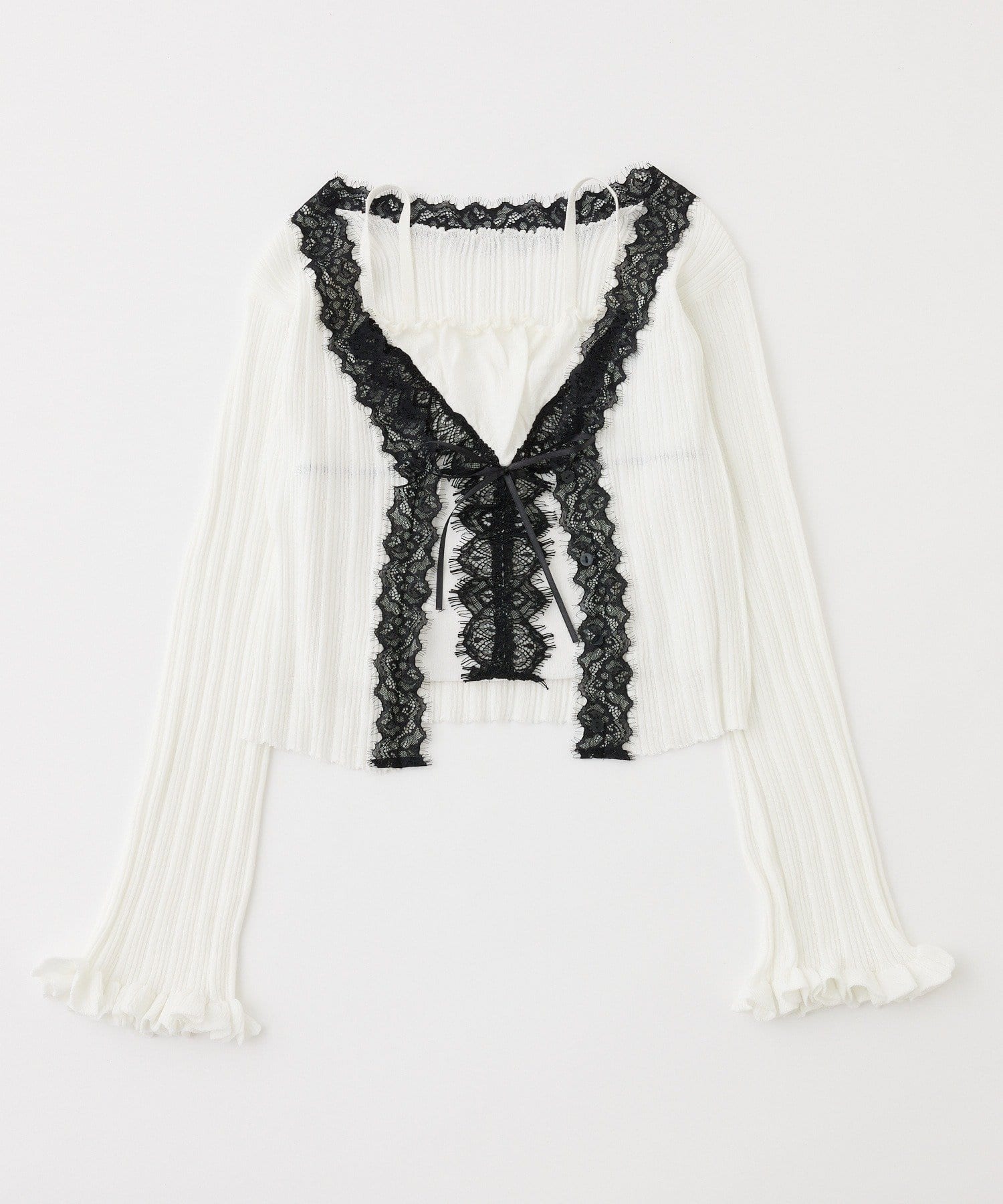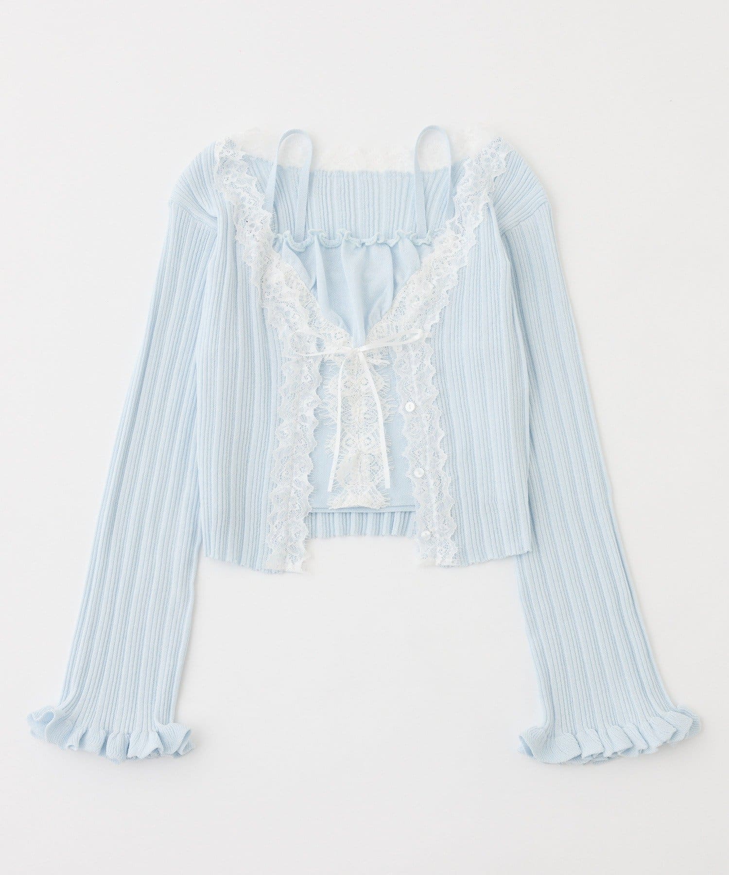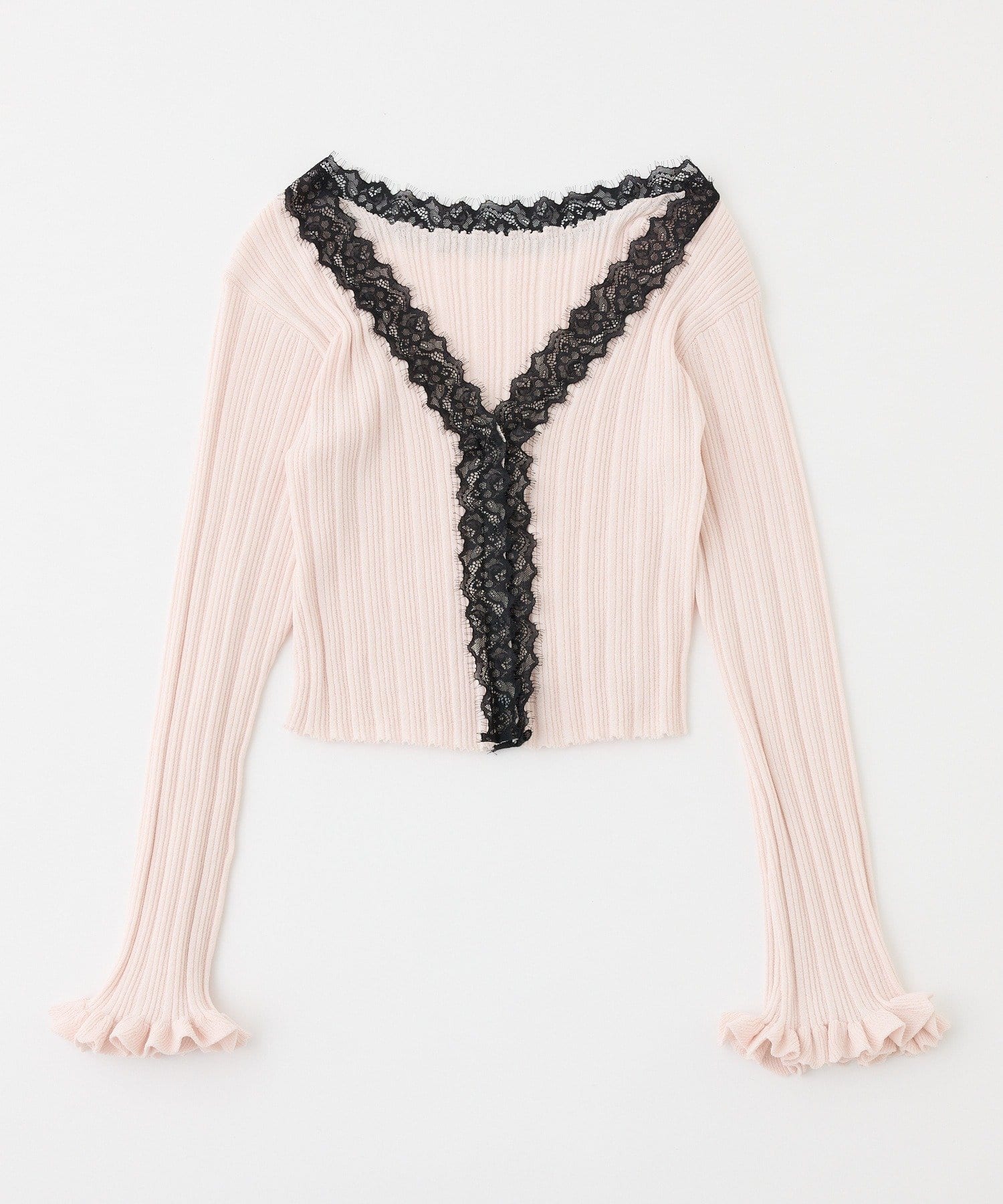 レース付きリブカーディガン
