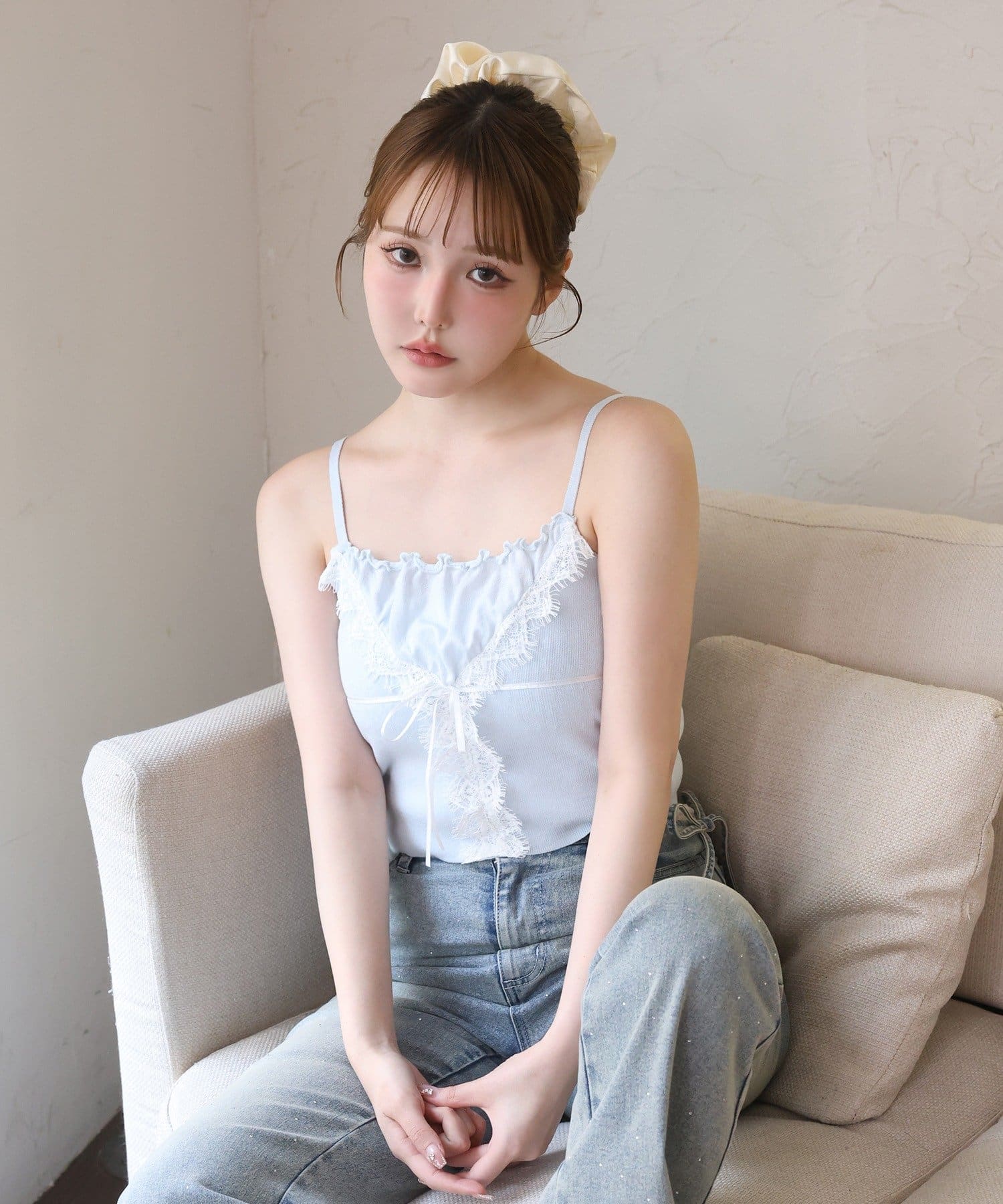 レース付きニットビスチェ