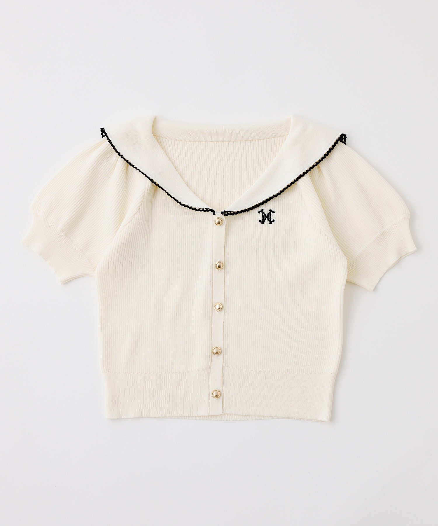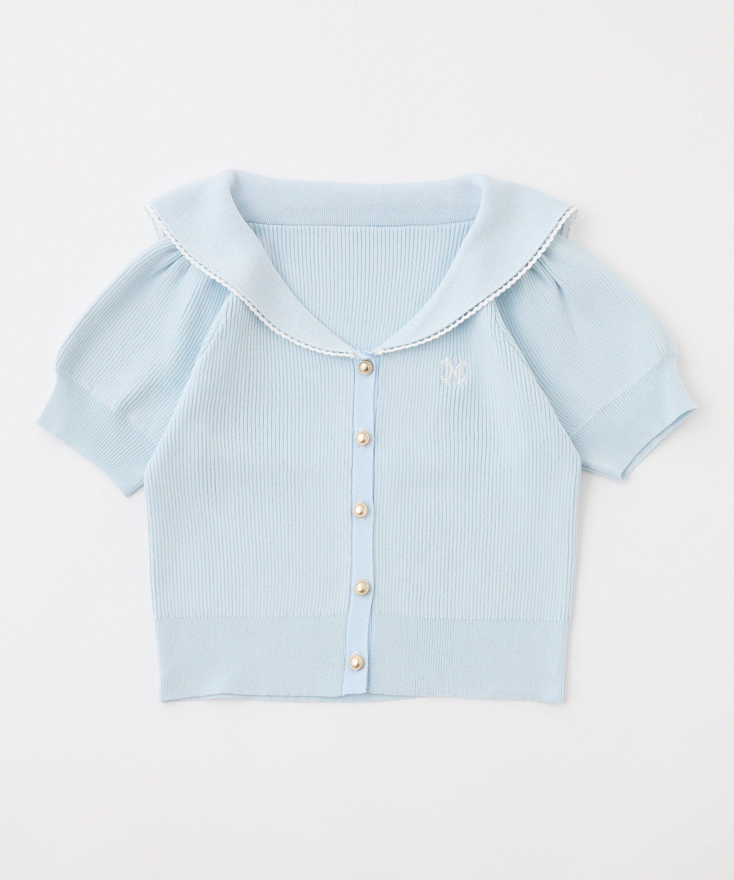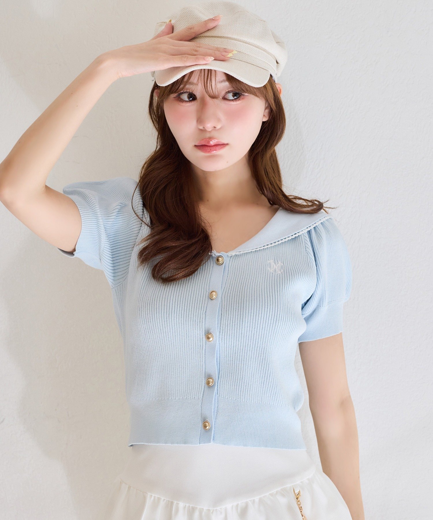 セーラーカラーが目を惹くニットカーディガンの半袖バージョンが登場♡