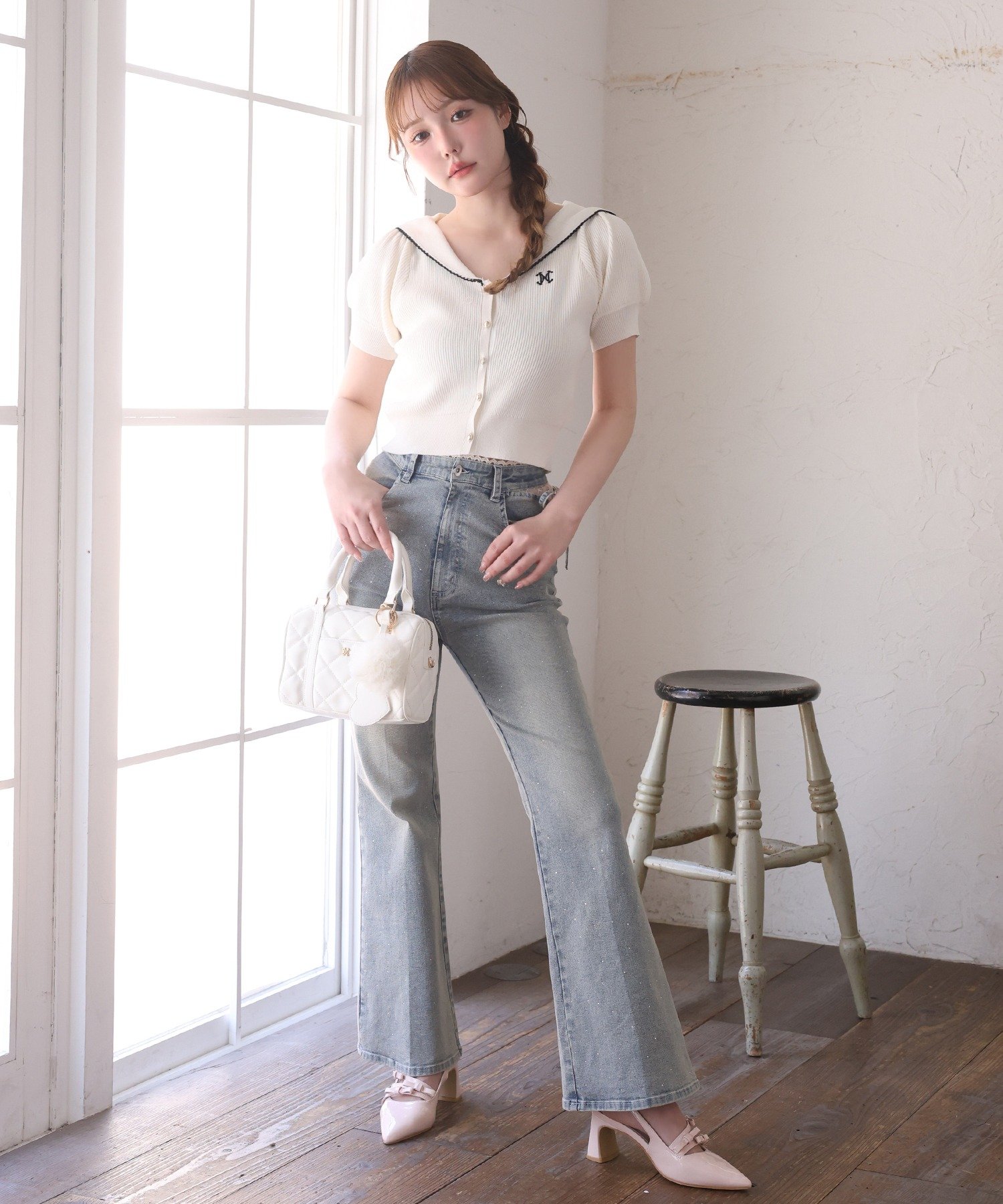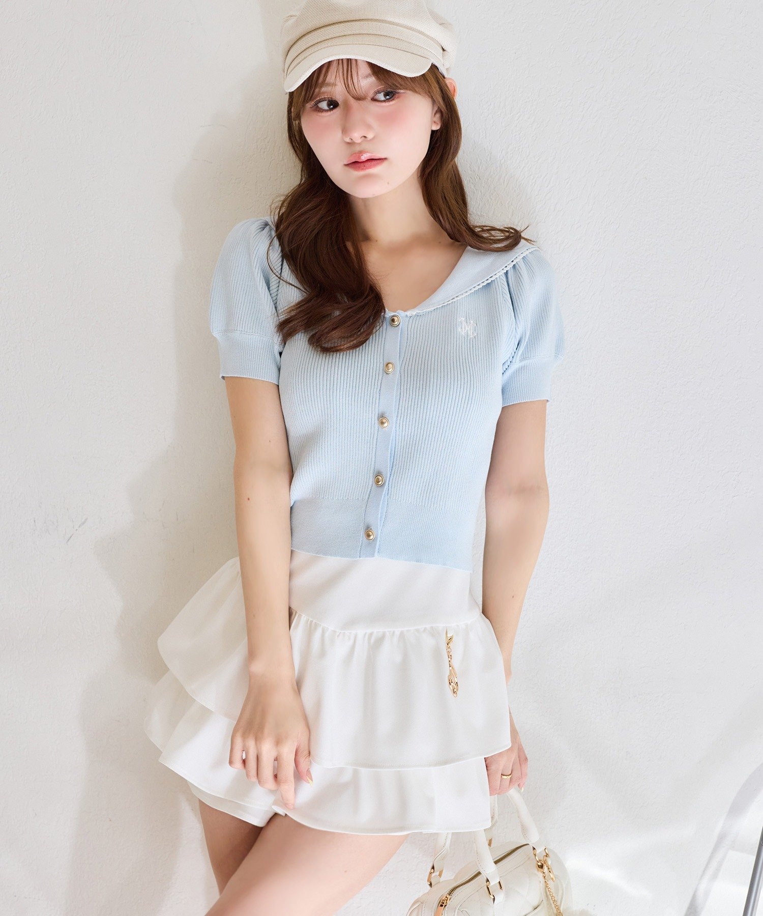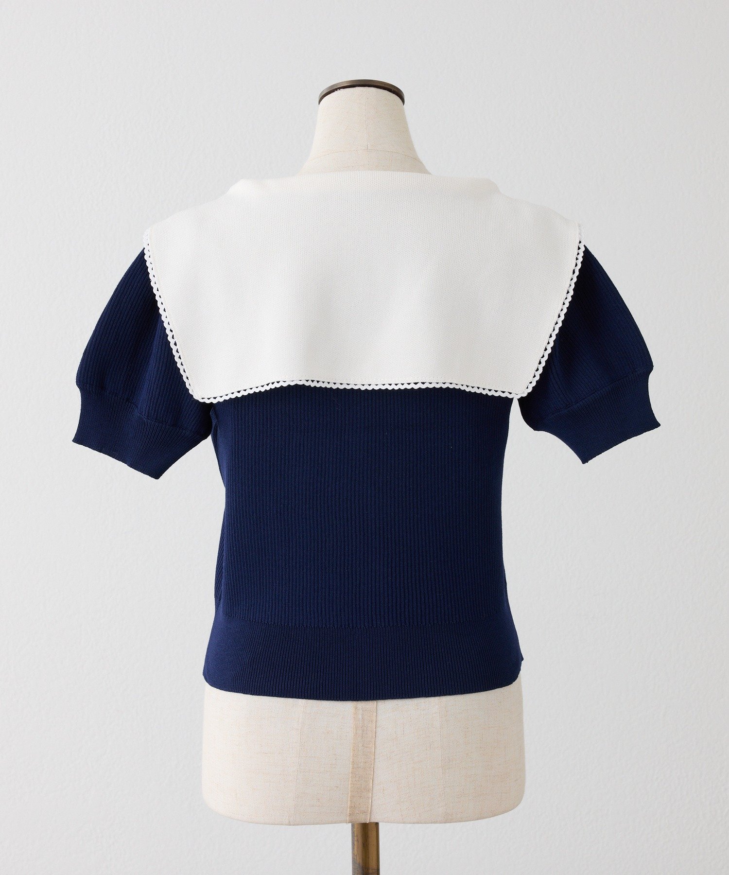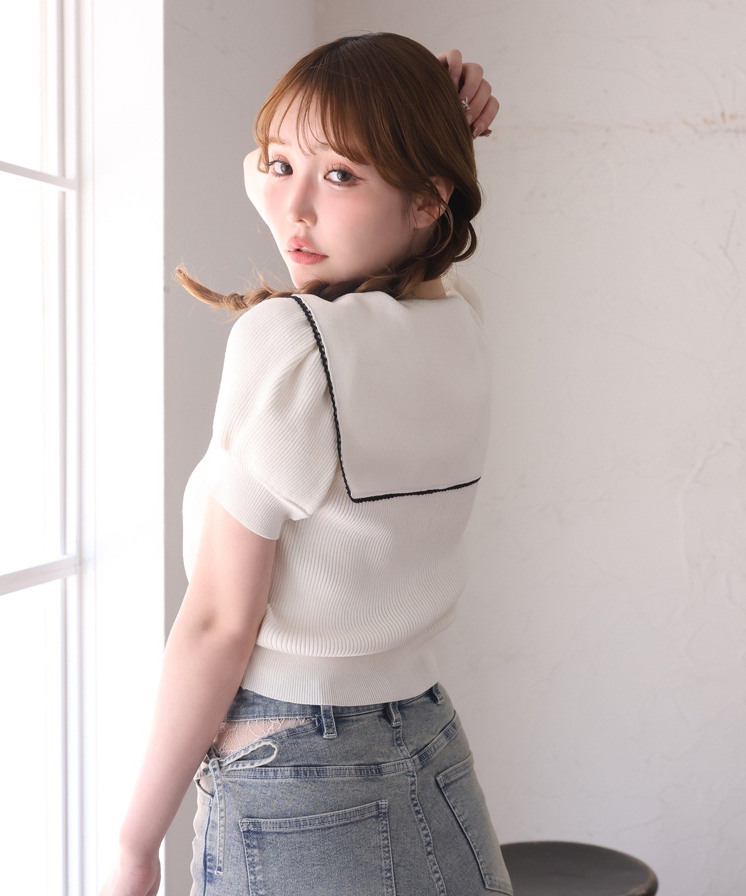 セーラーカラーが目を惹くニットカーディガンの半袖バージョンが登場♡