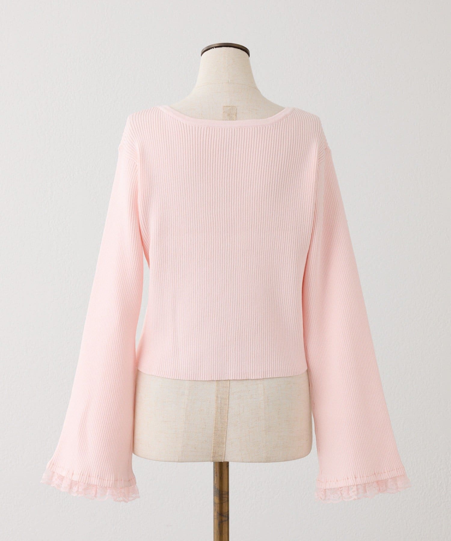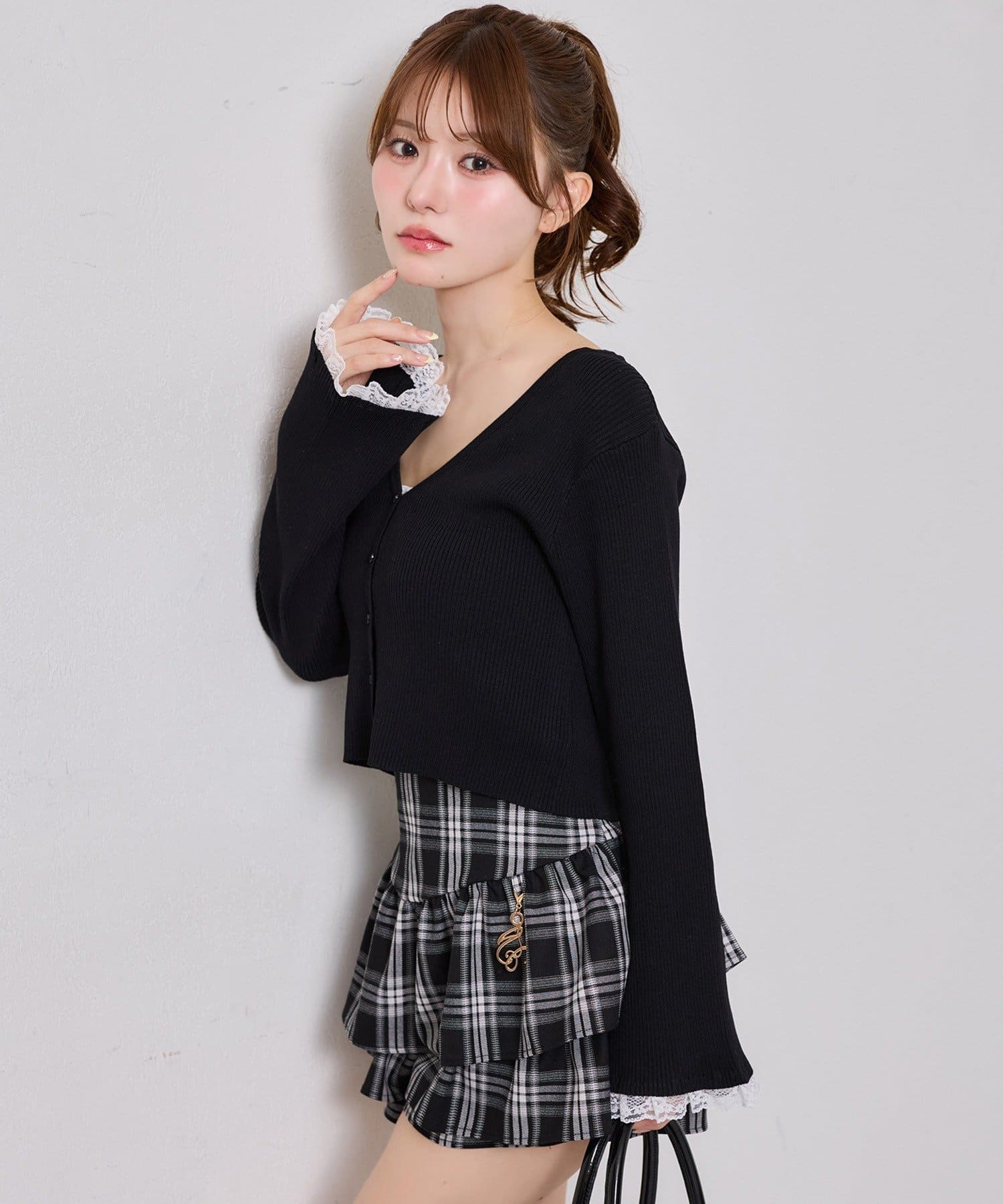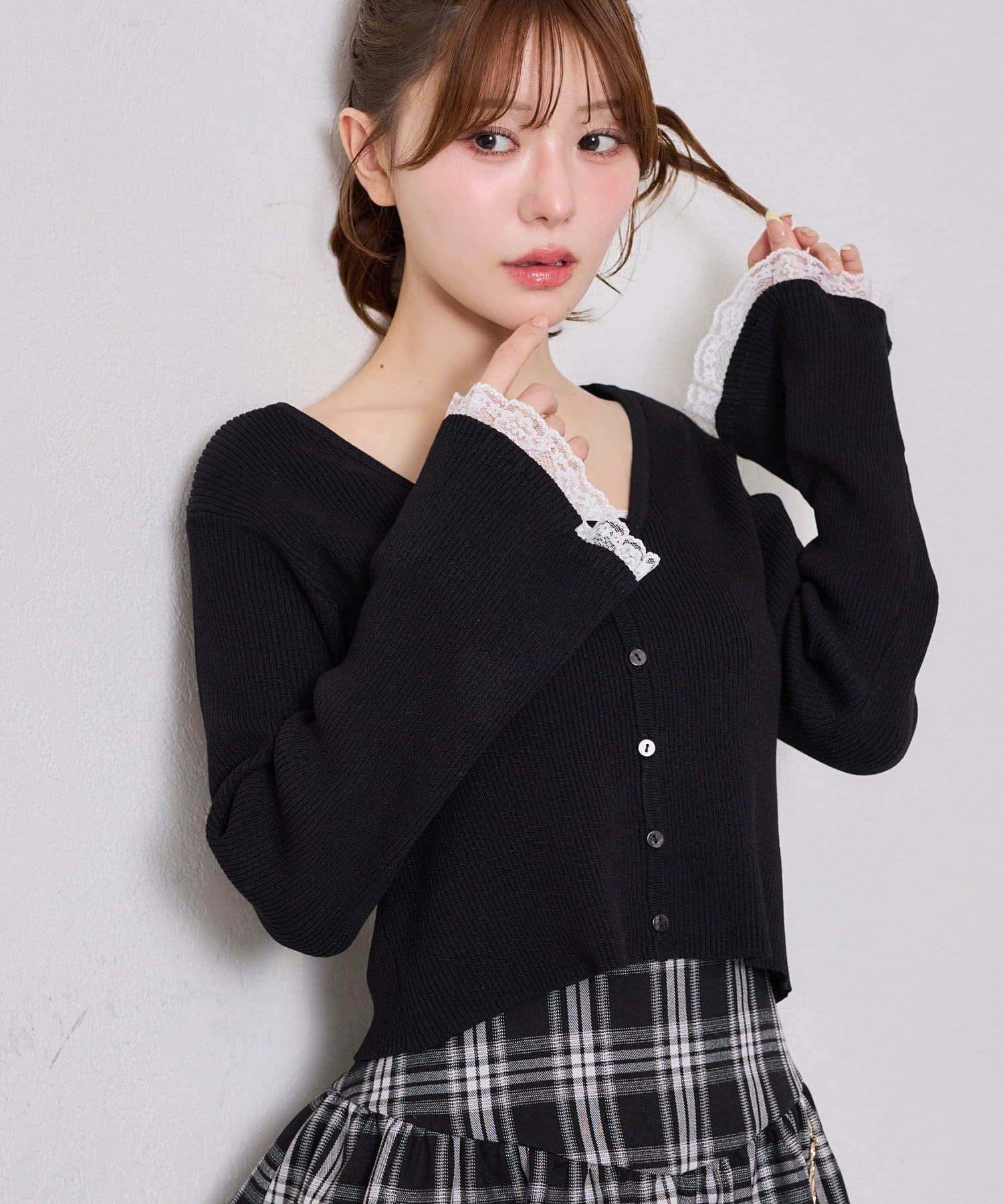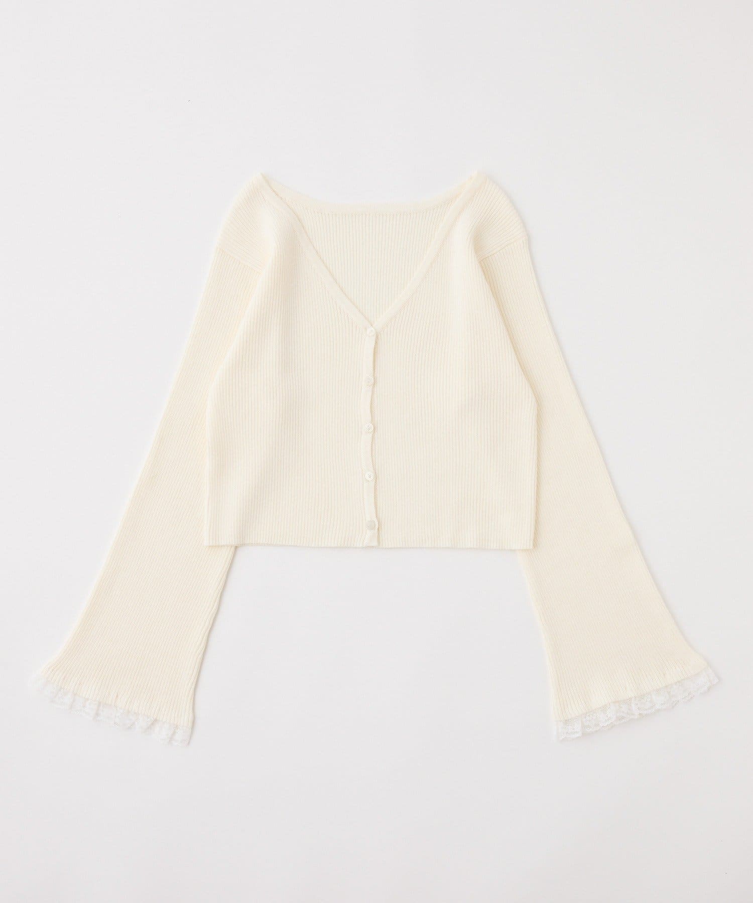 繊細な袖レースが目を惹くVネックカーディガン♡