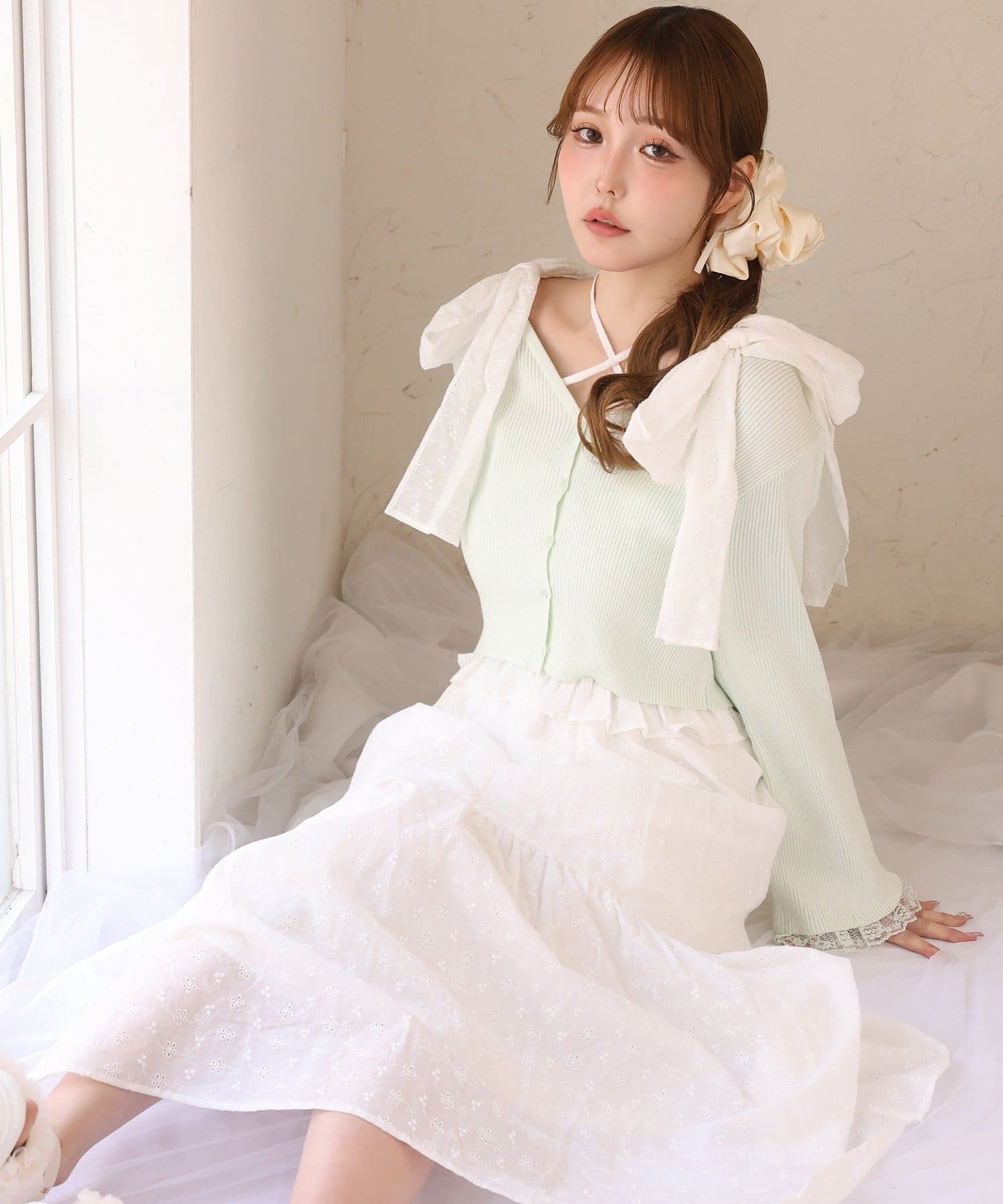 キャミワンピやブラウスの上から羽織ってレイヤードを楽しむのも◎ 春のお出かけにぴったりな万能カーディガンです。
