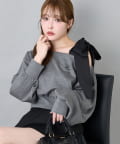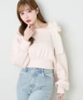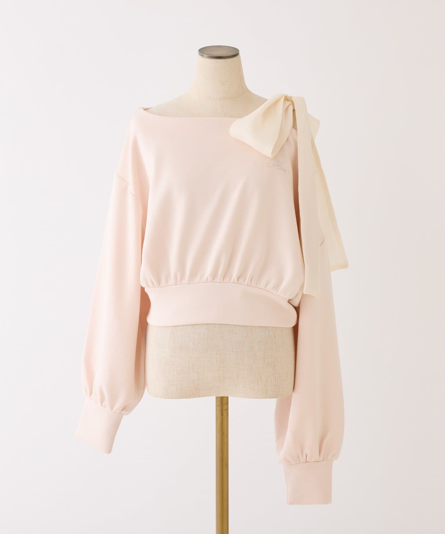 one after another NICE CLAUP(ワンアフターアナザー ナイスクラップ) 肩リボン刺繍入りラメトップス