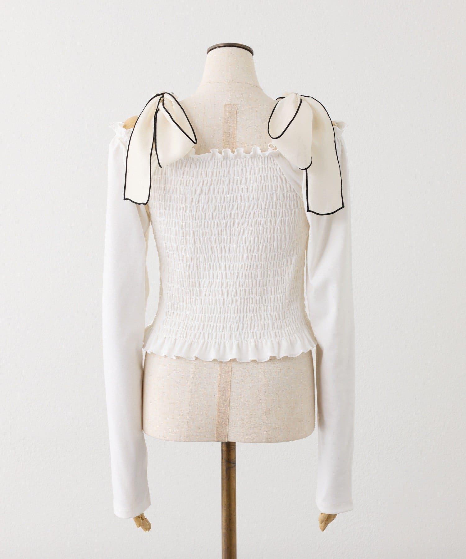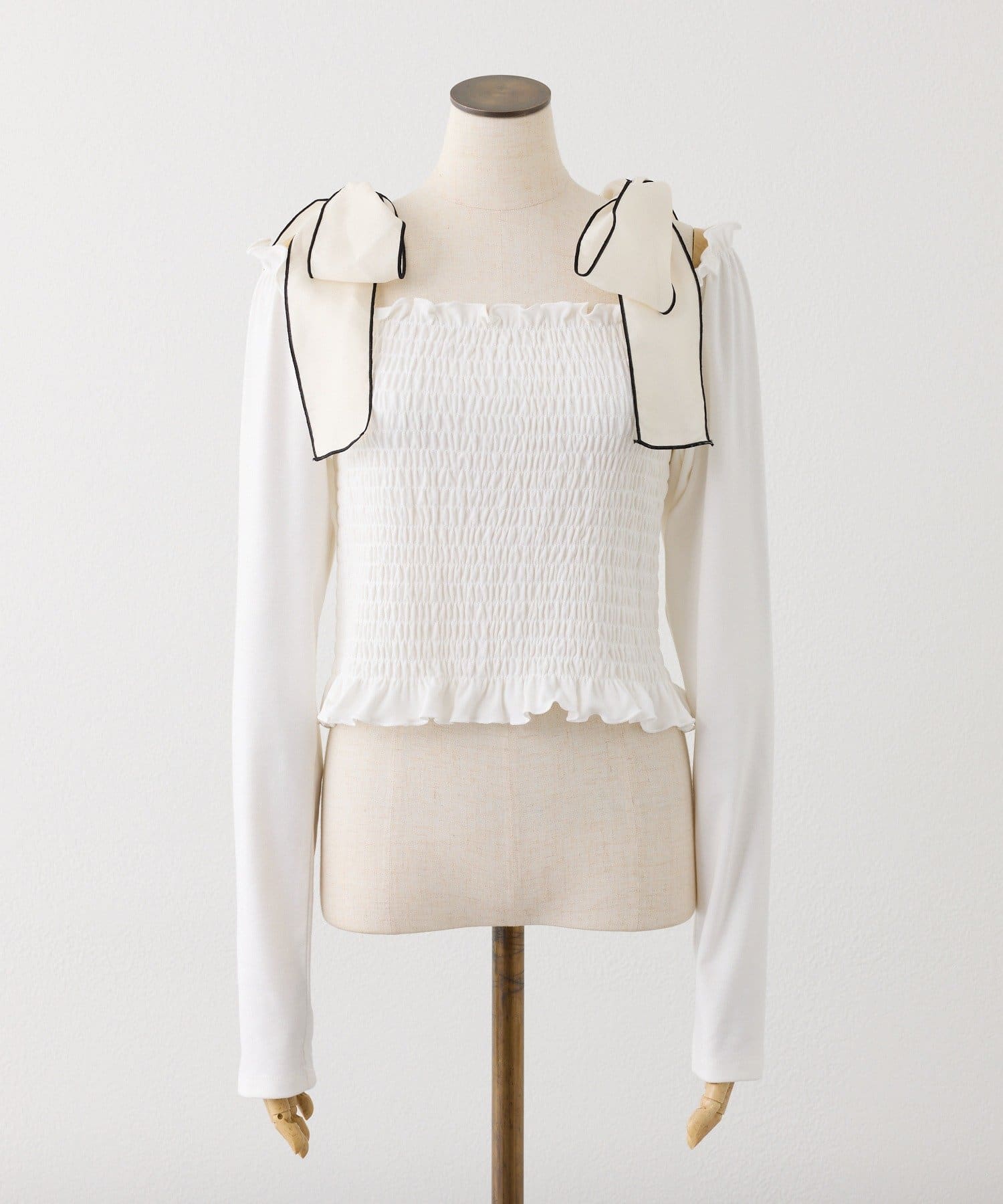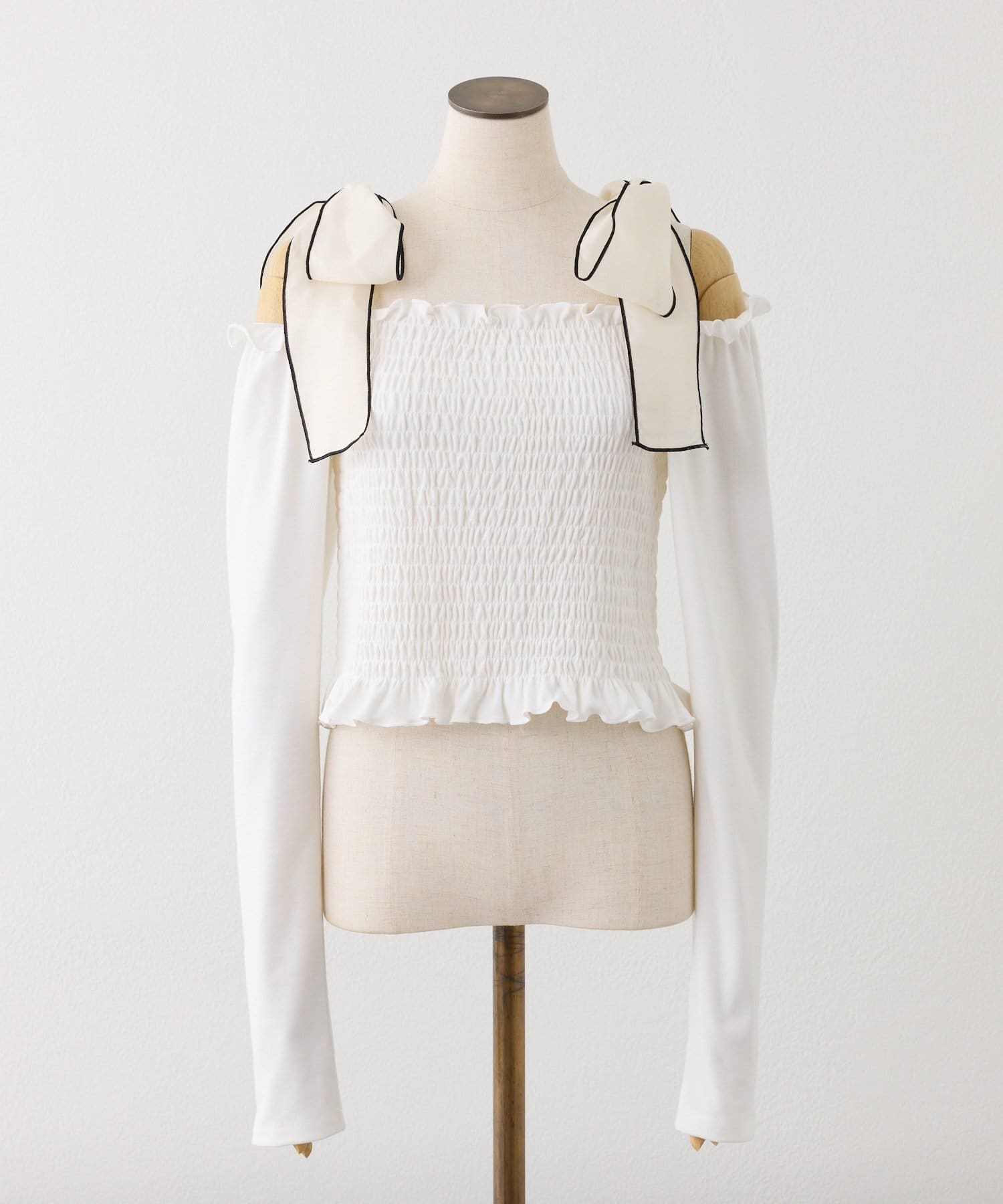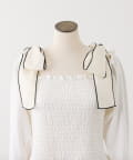 肩リボンシャーリングトップス